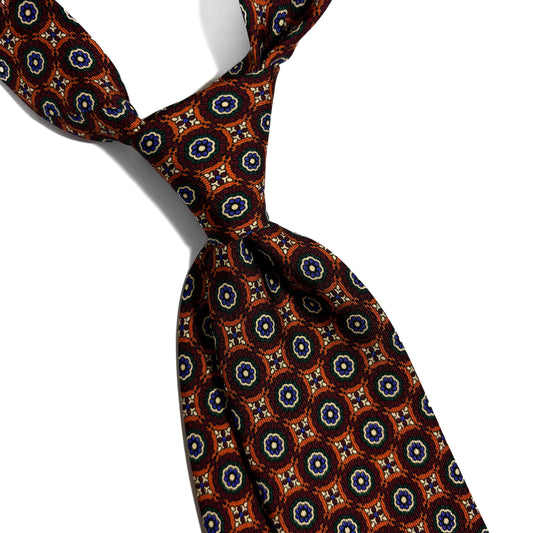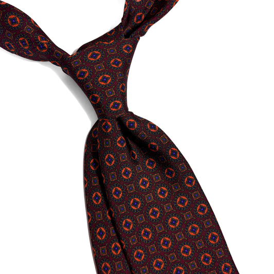 Hand-Printed Orange & Burgundy Geometric Ancient Madder Silk Tie