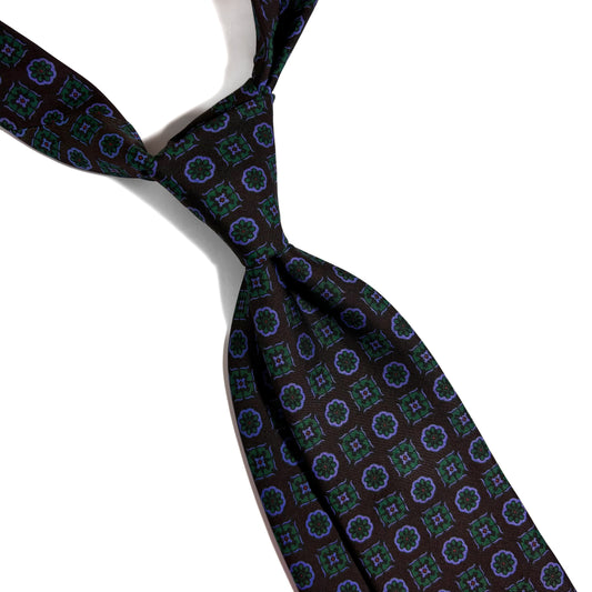 Hand-Printed Blue & Green Geometric Ancient Madder Silk Tie