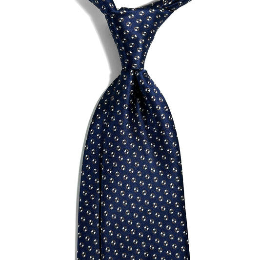 Navy Blue Small Floral Printed 36oz Silk Twill Tie