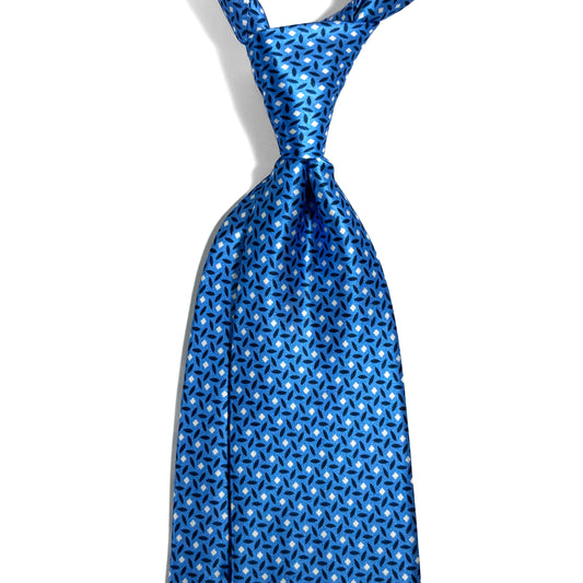 Aqua Blue Geometric Printed 36oz Silk Twill Tie