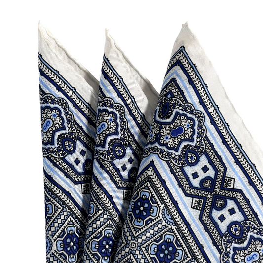 12.5" Royal Blue Geometric Medallion Silk Twill Pocket Square