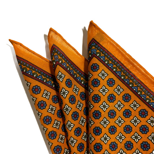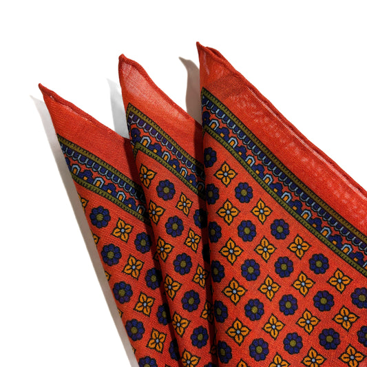 Orange - Floral - Wool/Silk Pocket Square