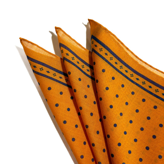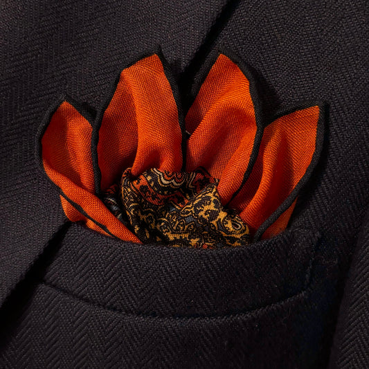 Dominus - Orange & Navy Blue - Wool/Silk Pocket Square