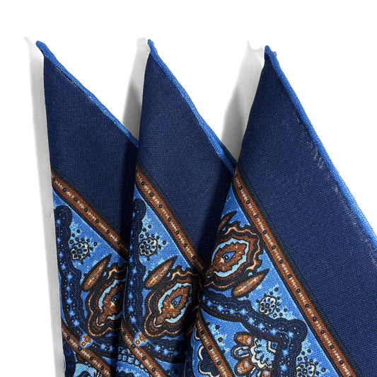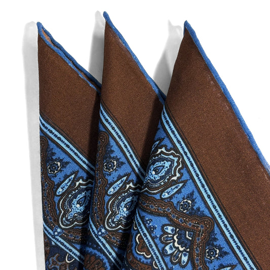 Dominus - Brown & Blue - Wool/Silk Pocket Square