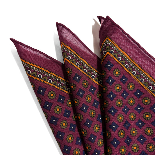 Burgundy - Floral - Wool/Silk Pocket Square