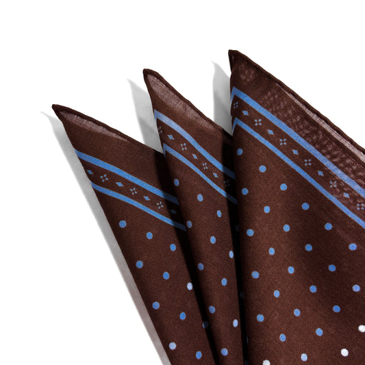 Brown - Polka Dot - Wool/Silk Pocket Square