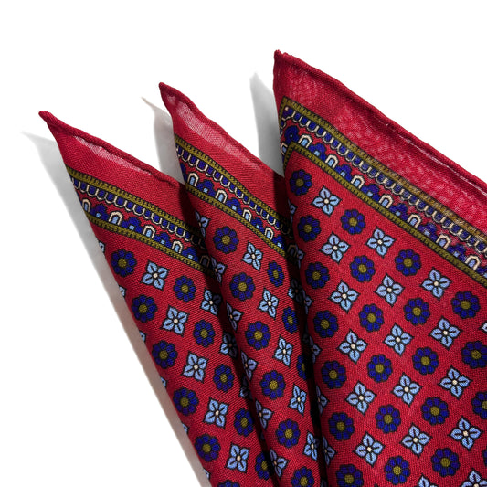 Red - Floral - Wool/Silk Pocket Square