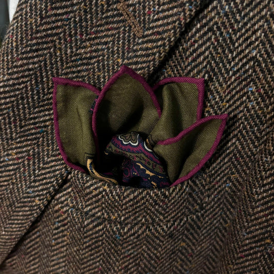 Dominus - Olive Green & Magenta - Wool/Silk Pocket Square