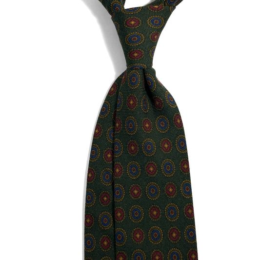 Forest Green Floral Medallion Wool/Silk Tie