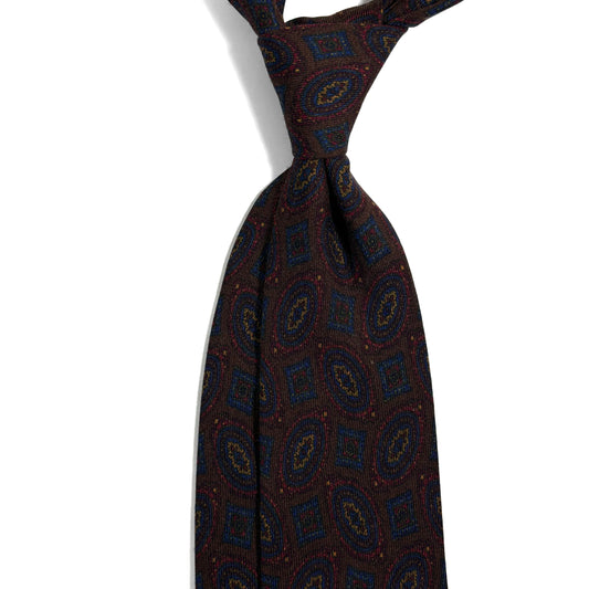Dark Brown Large Geometric Wool/Silk Tie