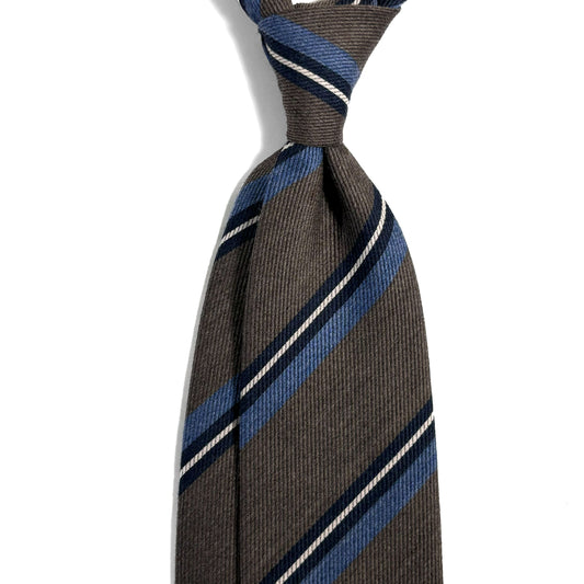 Navy Blue & Brown Striped Wool/Silk Grenadine Tie (Garza Fina)