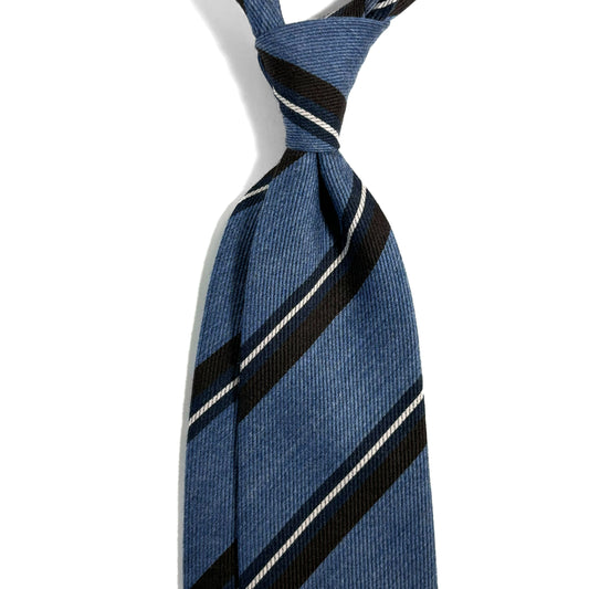 Navy Blue & Brown Striped Wool/Silk Grenadine Tie