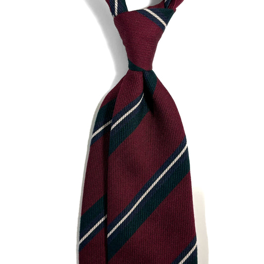 Burgundy & Olive Green Striped Wool/Silk Grenadine Tie