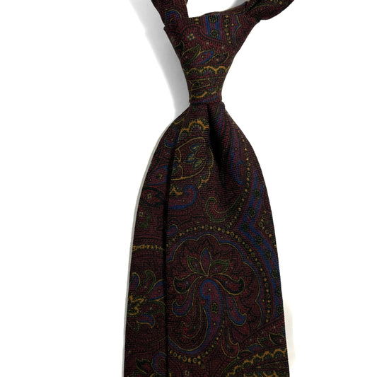 Burgundy & Gold Paisley Wool Challis Tie
