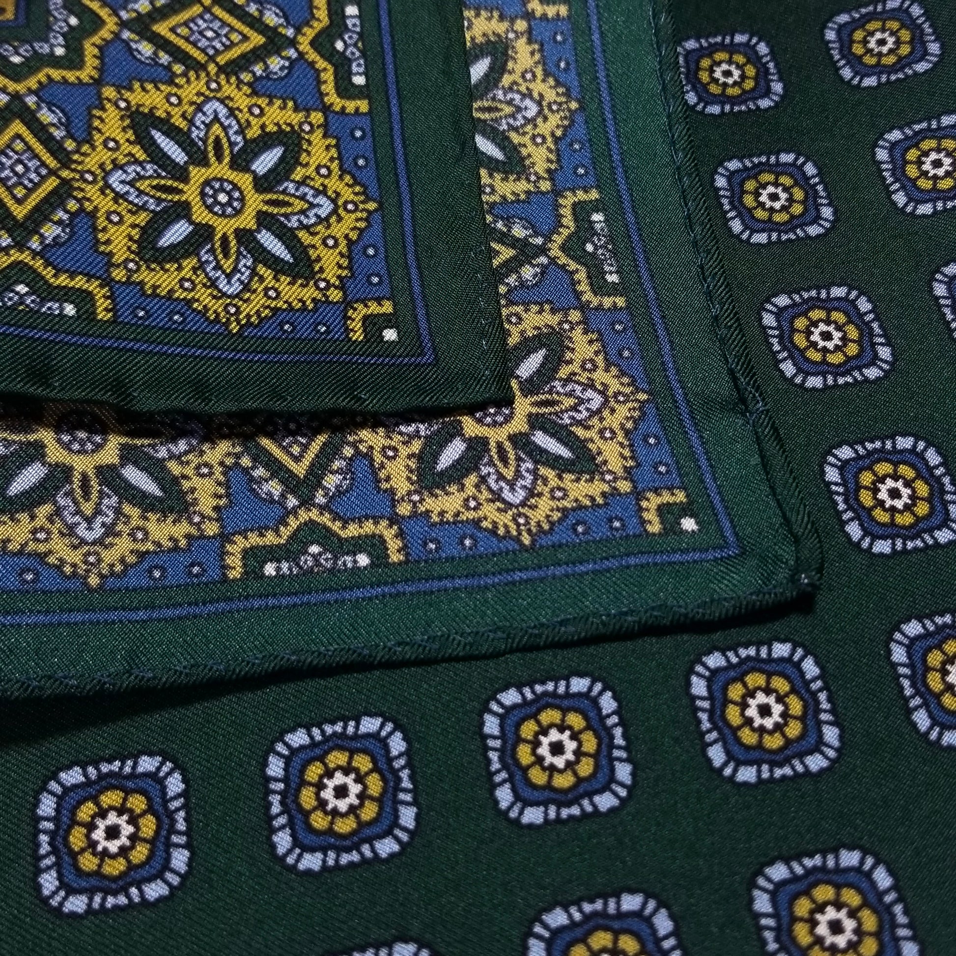 17" Forest Green Geometric Silk Twill Pocket Square