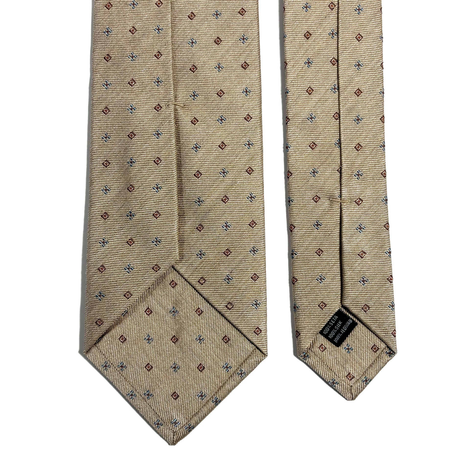 The 2 layer interlining allows a uniquely structured yet flexible knot that is unachievable with standard single-layer interlinings. It requires far more skill to sew since even a slight mistake causes misalignment in the interlining, making it a true work of art when perfected.