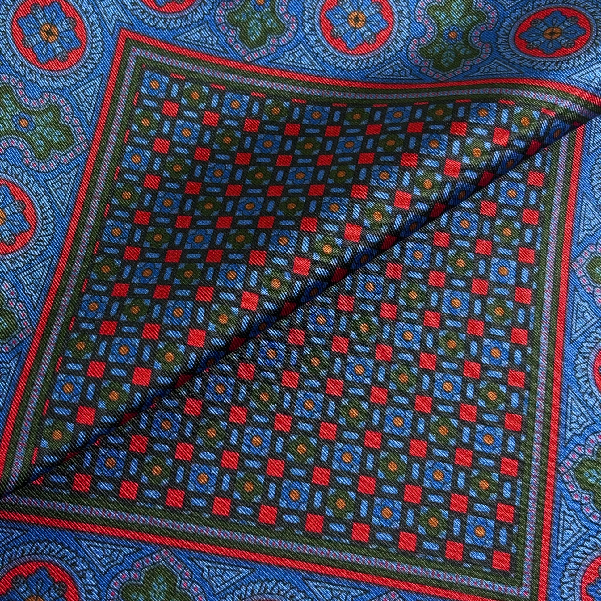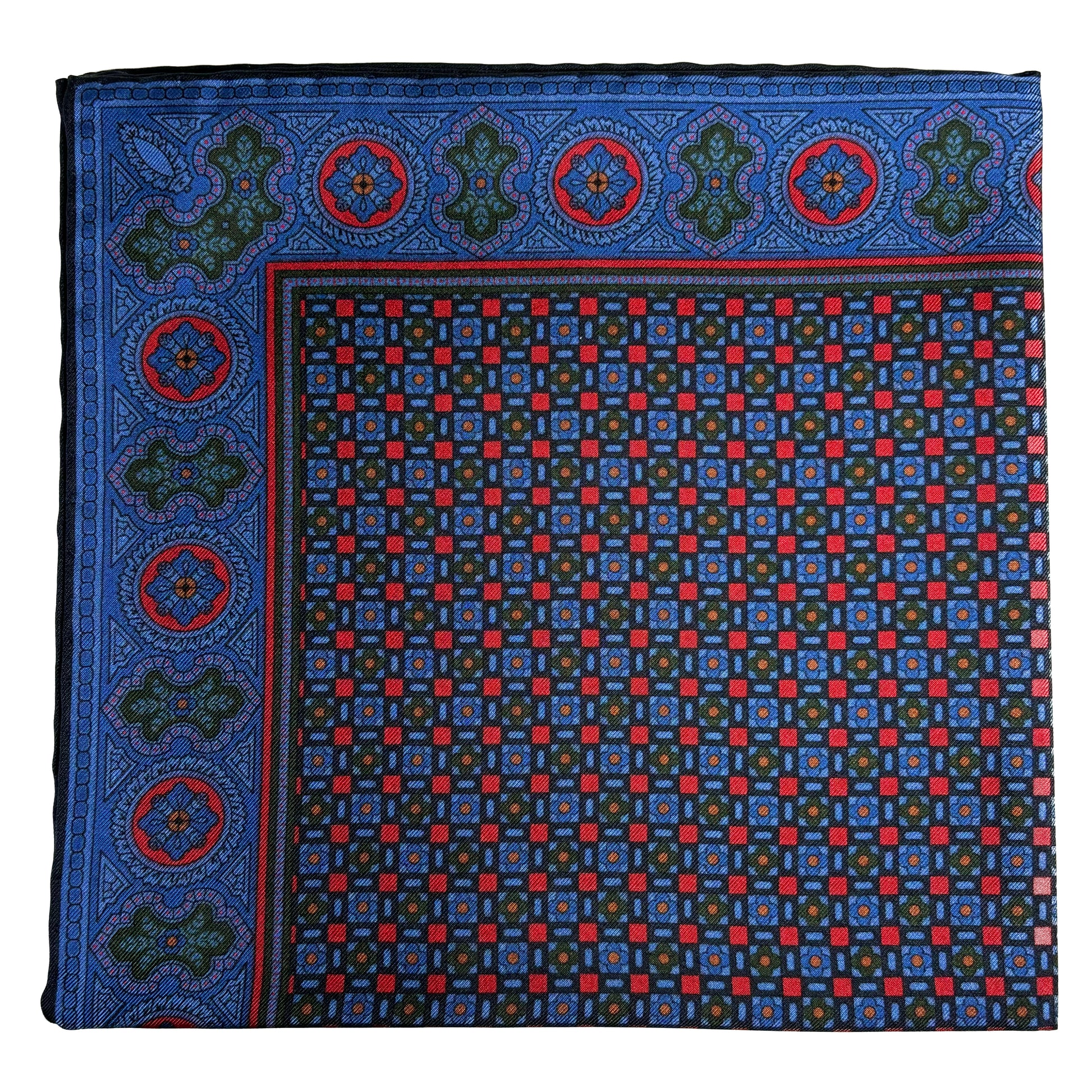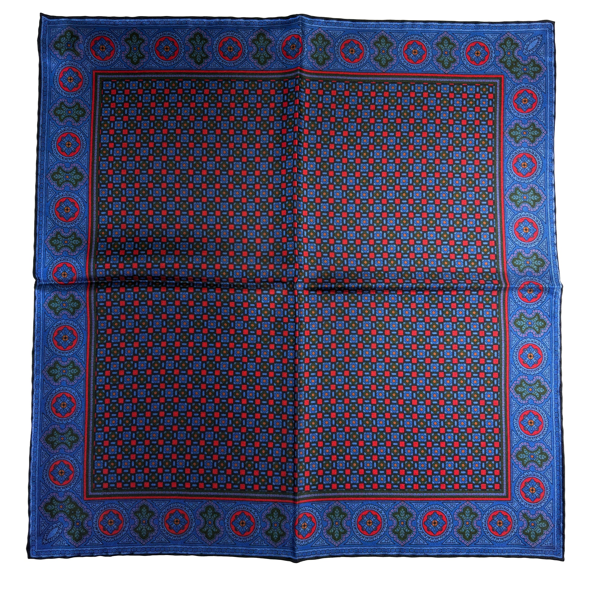 Blue & Red Small Geometric Ancient Madder Silk Pocket Square