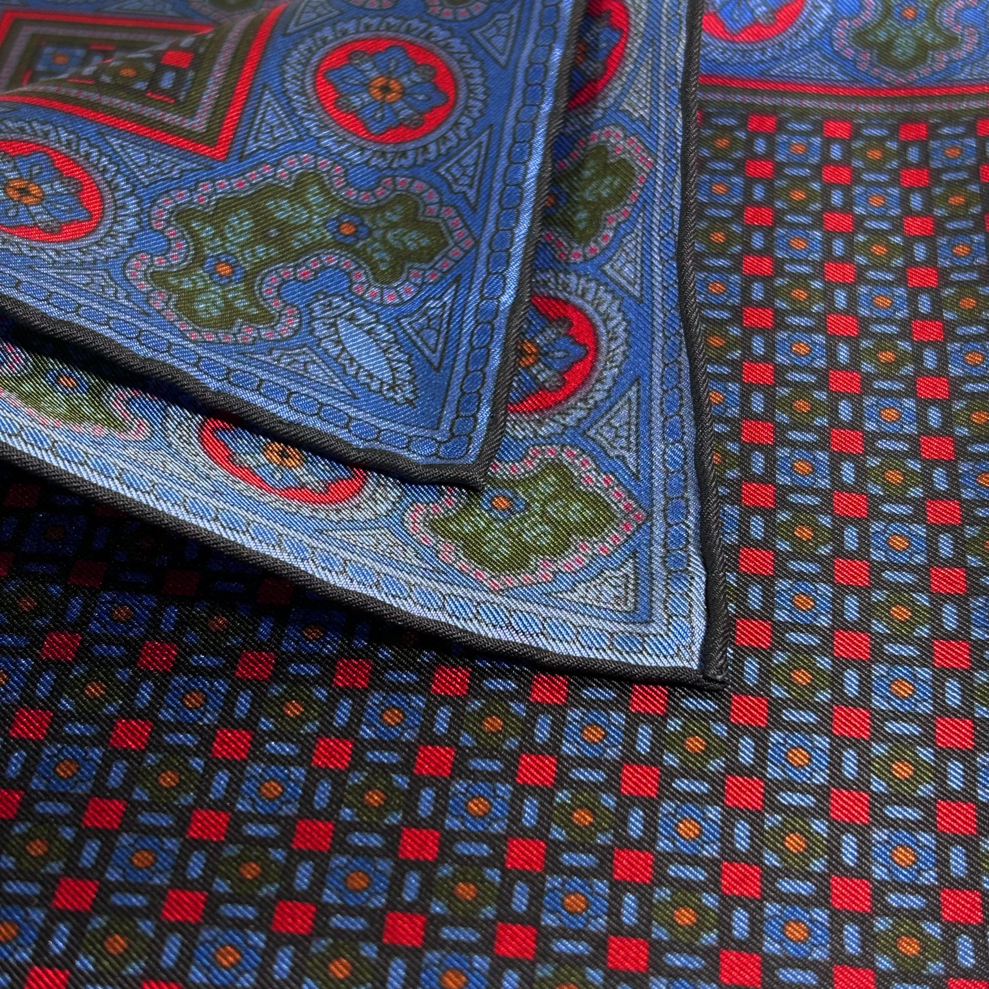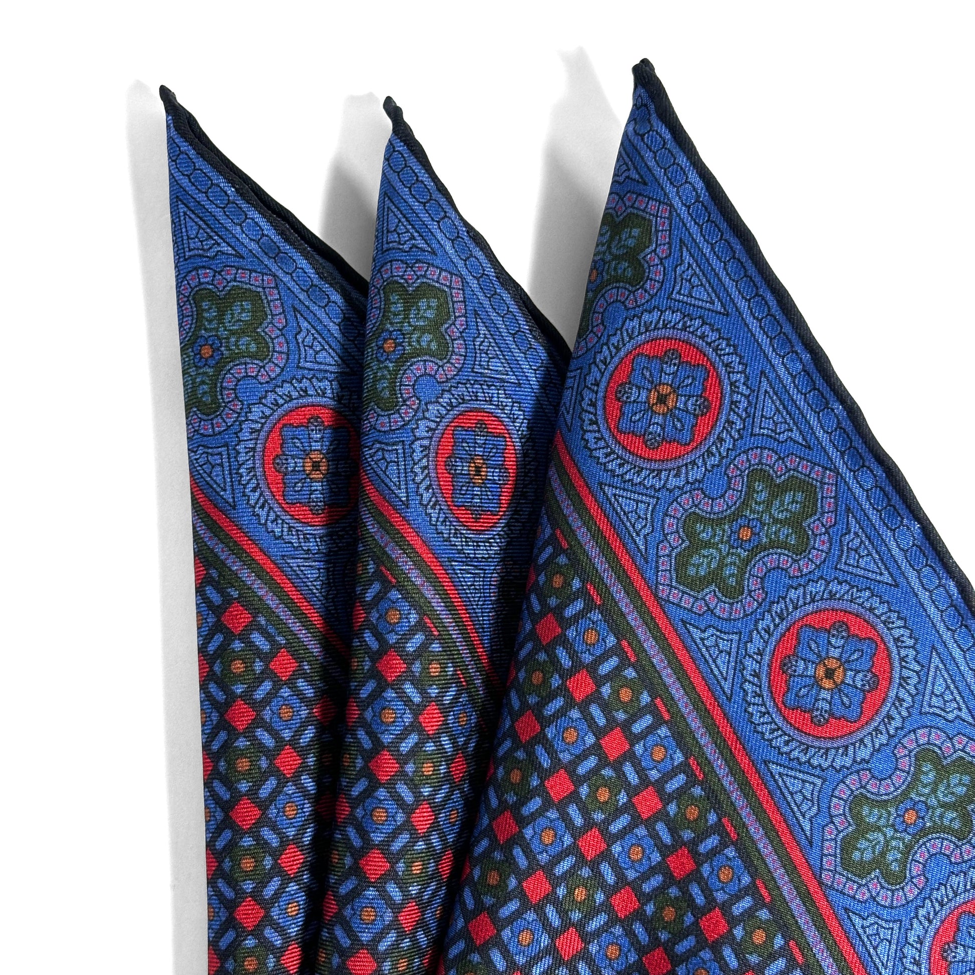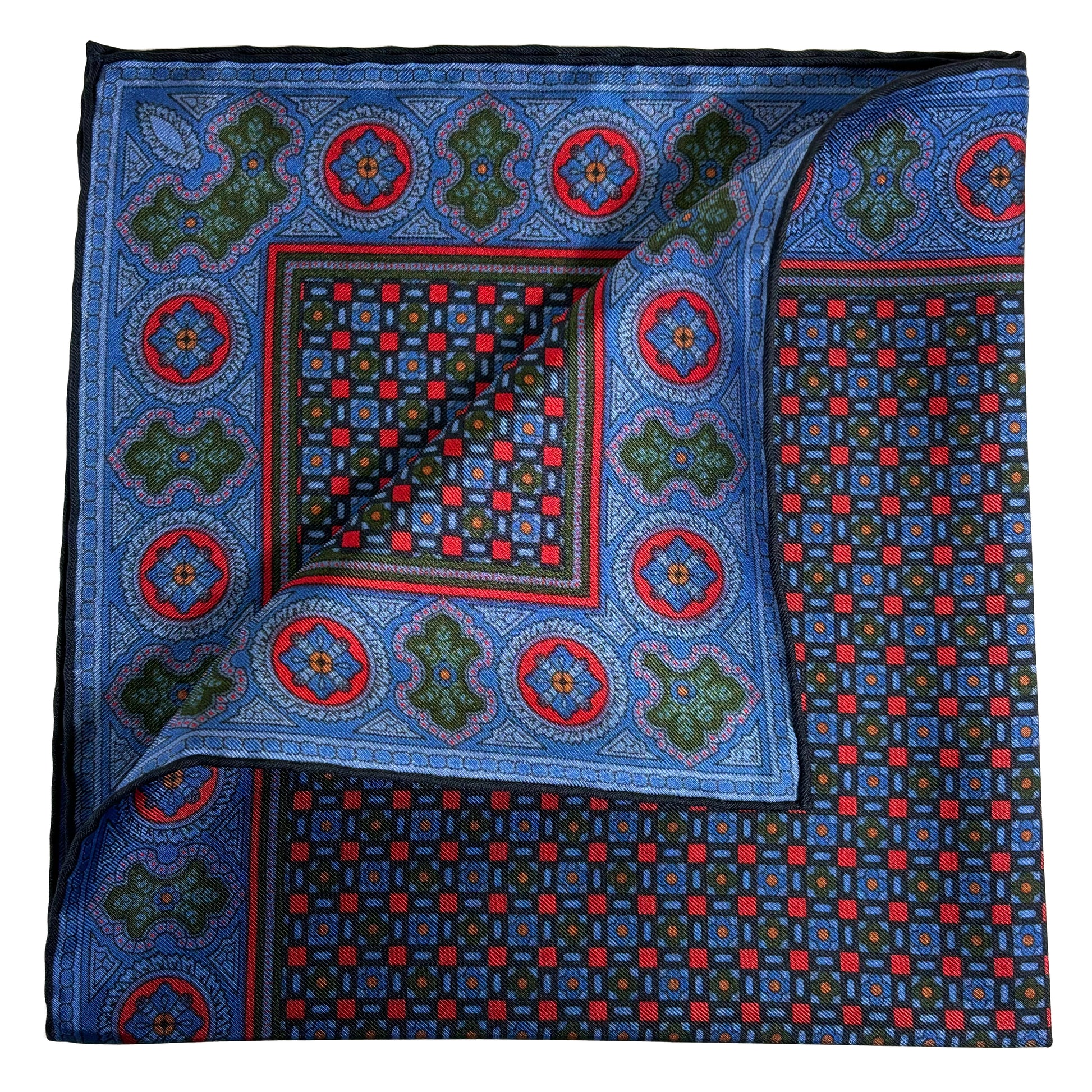 Blue & Red Small Geometric Ancient Madder Silk Pocket Square
