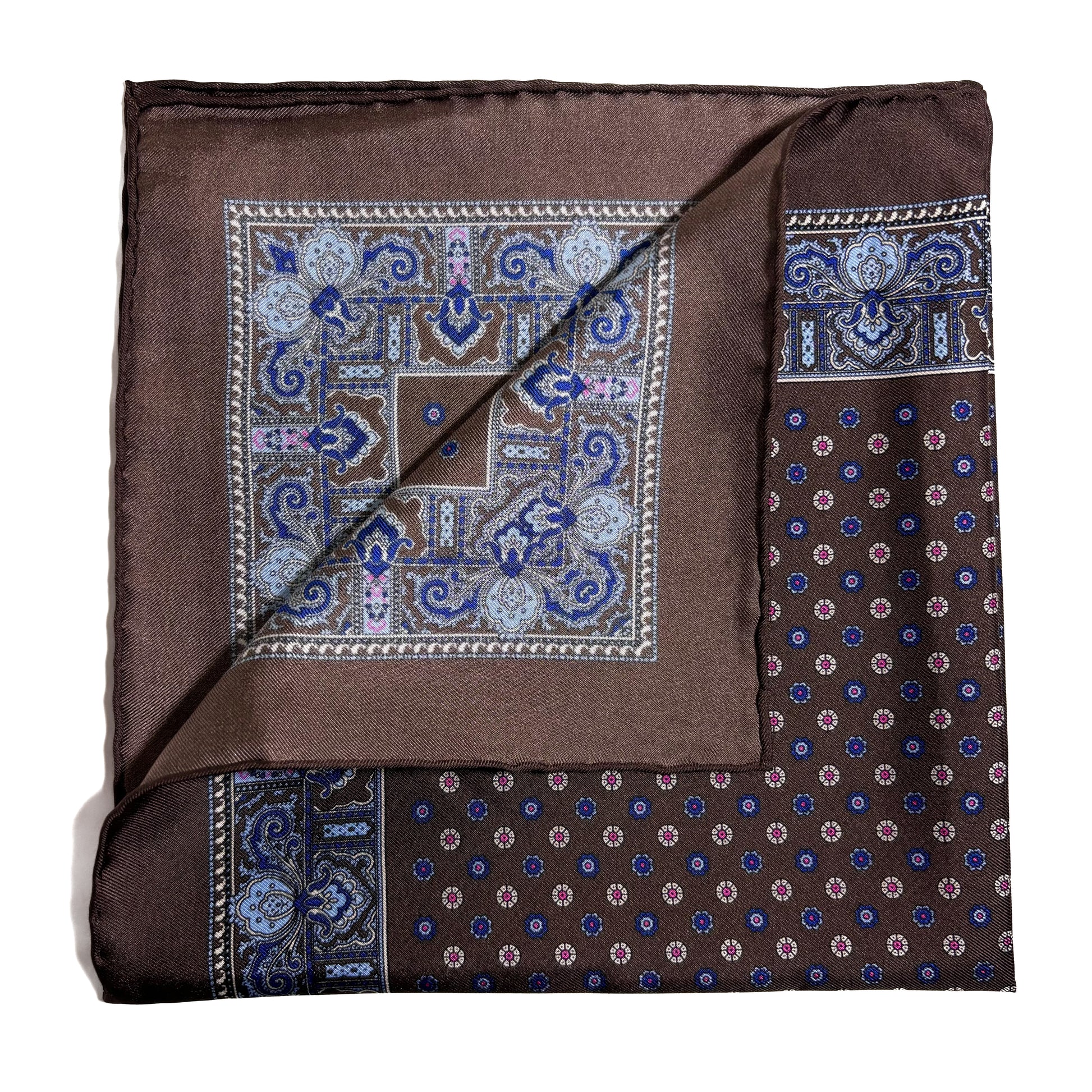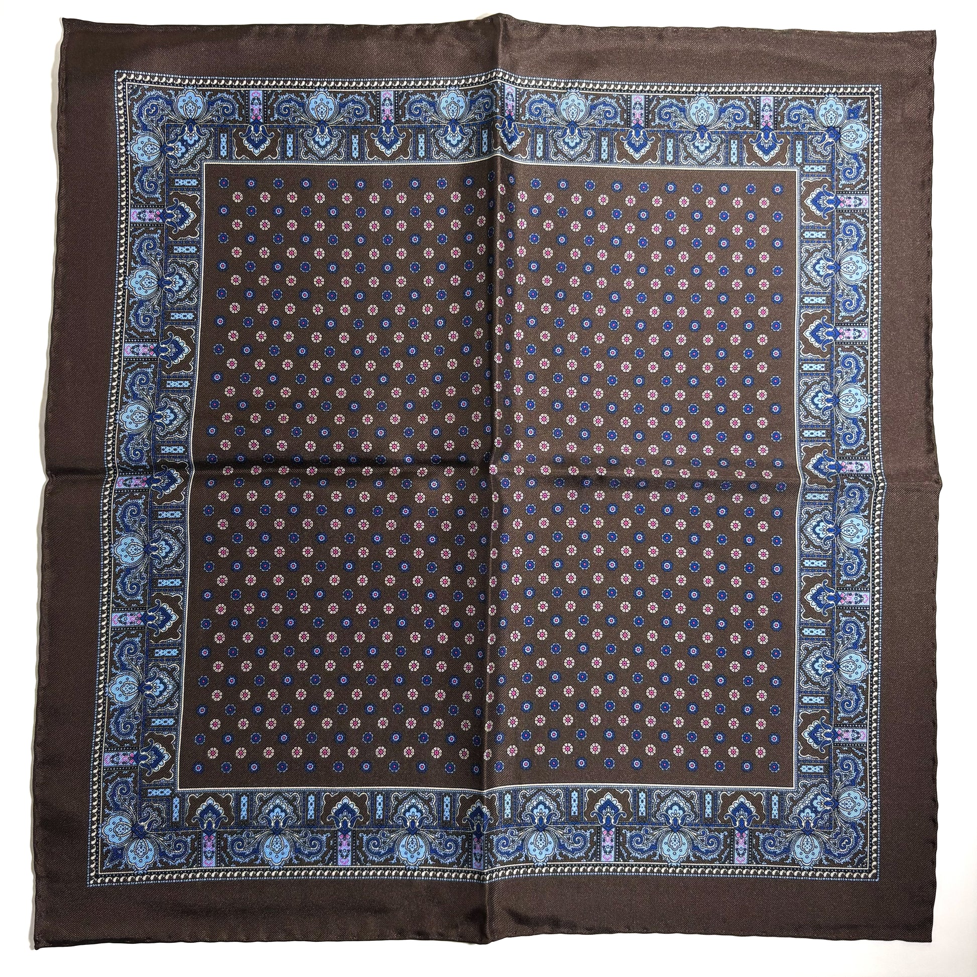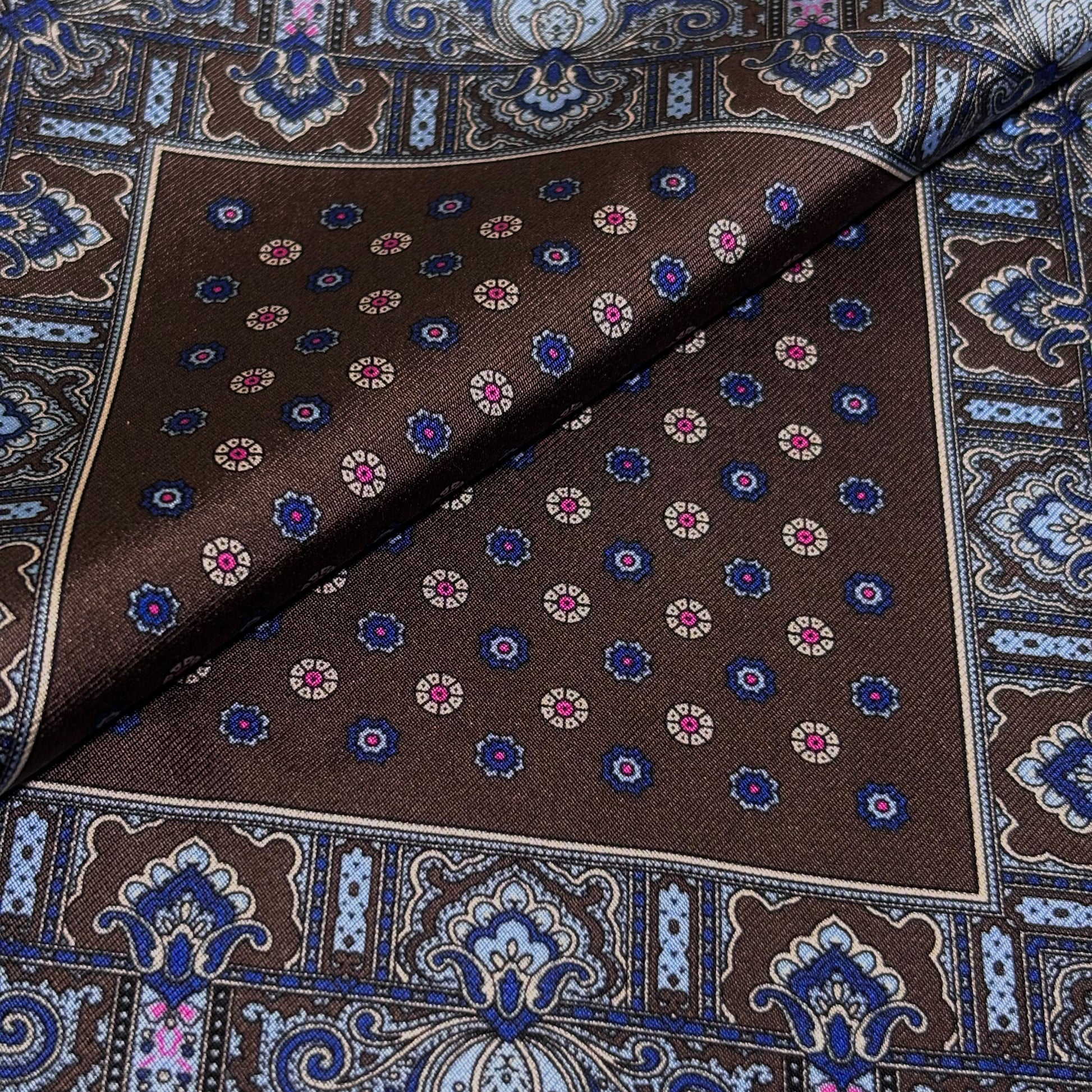 Brown Floral Silk Pocket Square