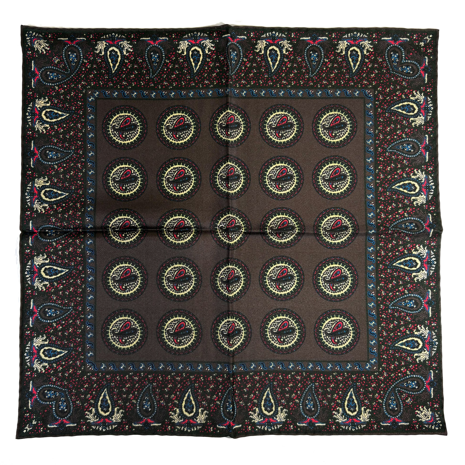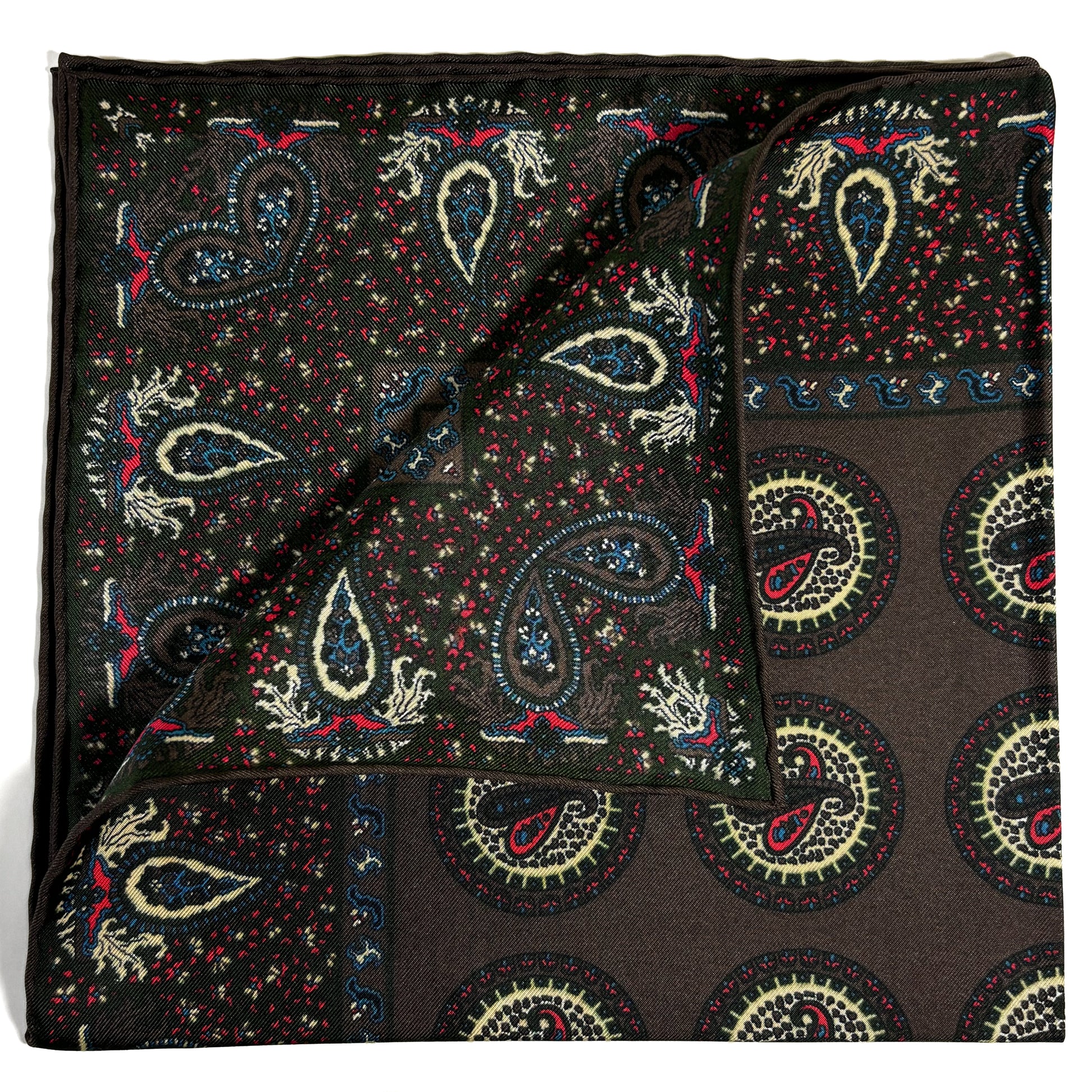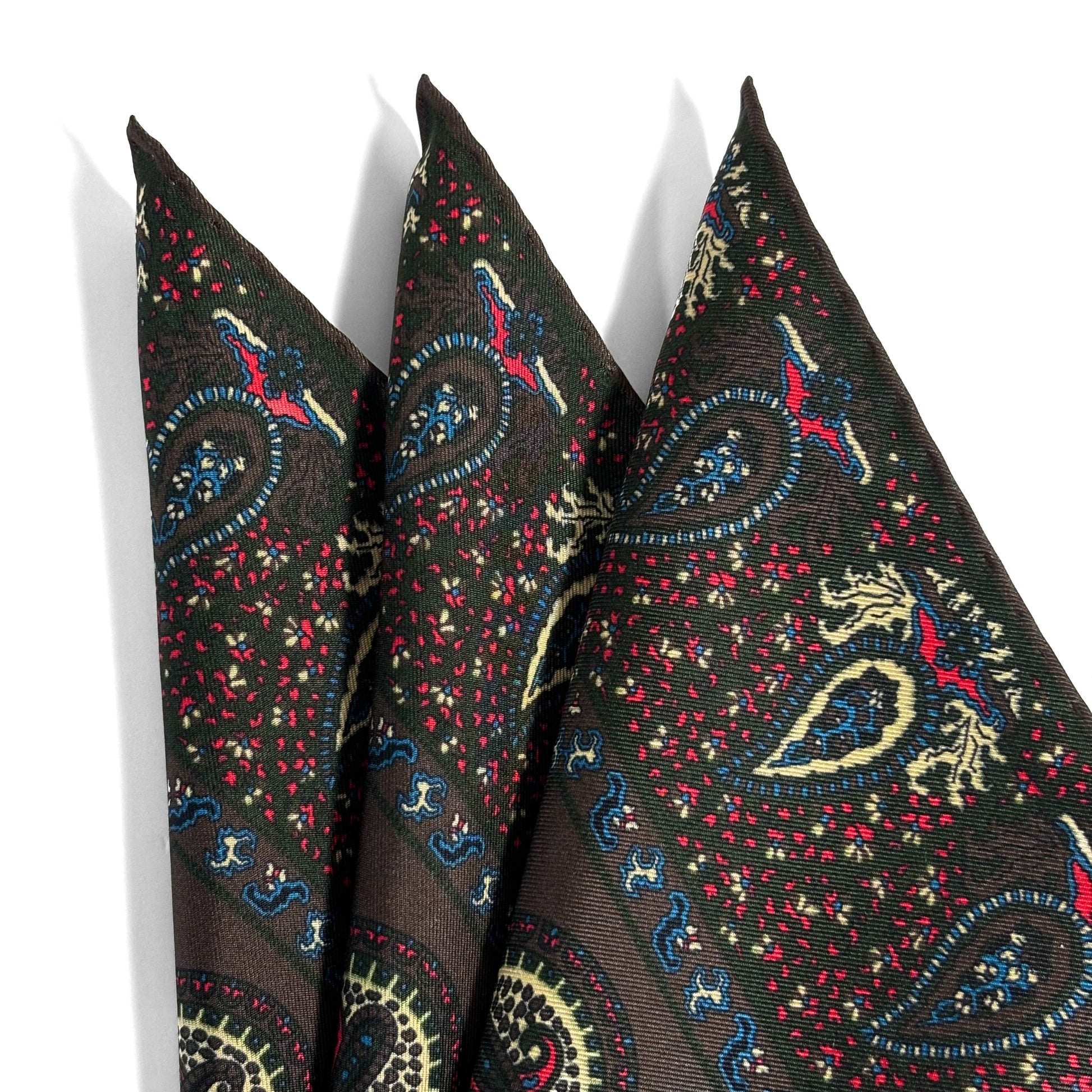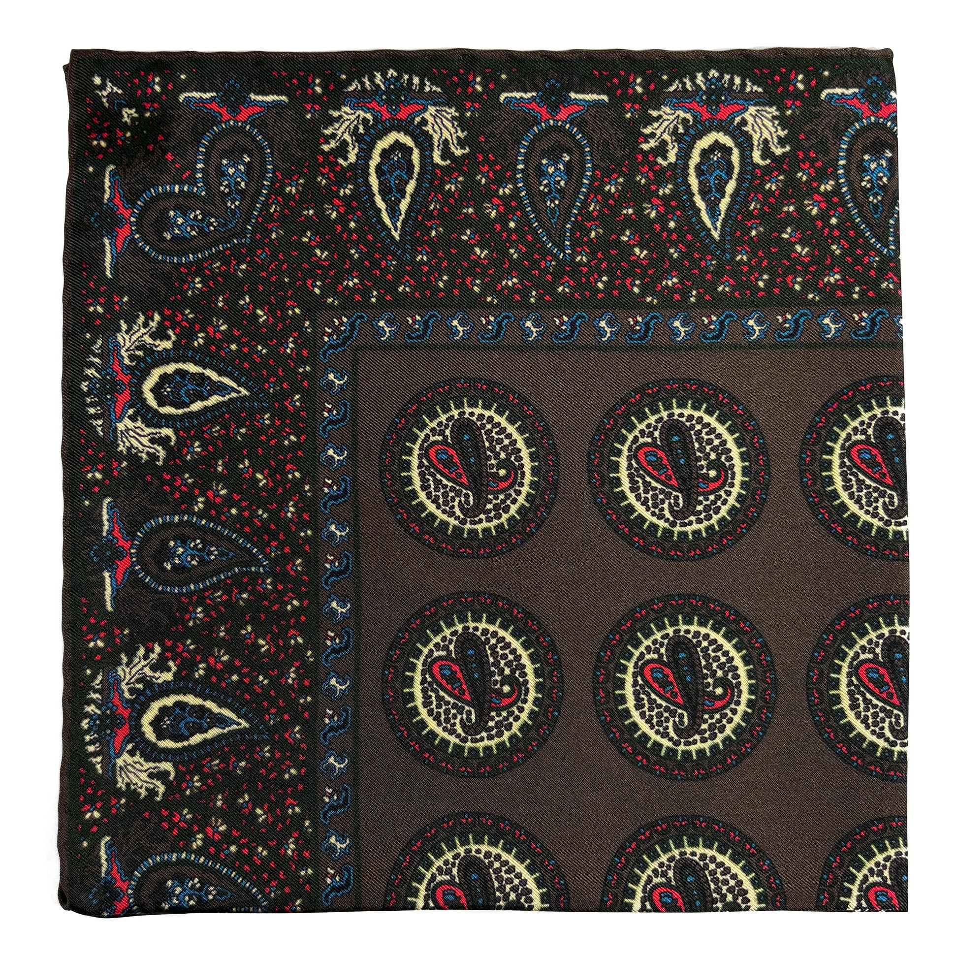 Crafted from madder-dyed 100% silk twill and handmade in England, this pocket square reflects the enduring legacy of British textile excellence. Produced in the historic town of Macclesfield—renowned for centuries of silk craftsmanship—each piece is hand-sewn with hand-rolled edges, offering refined structure and depth in every fold.