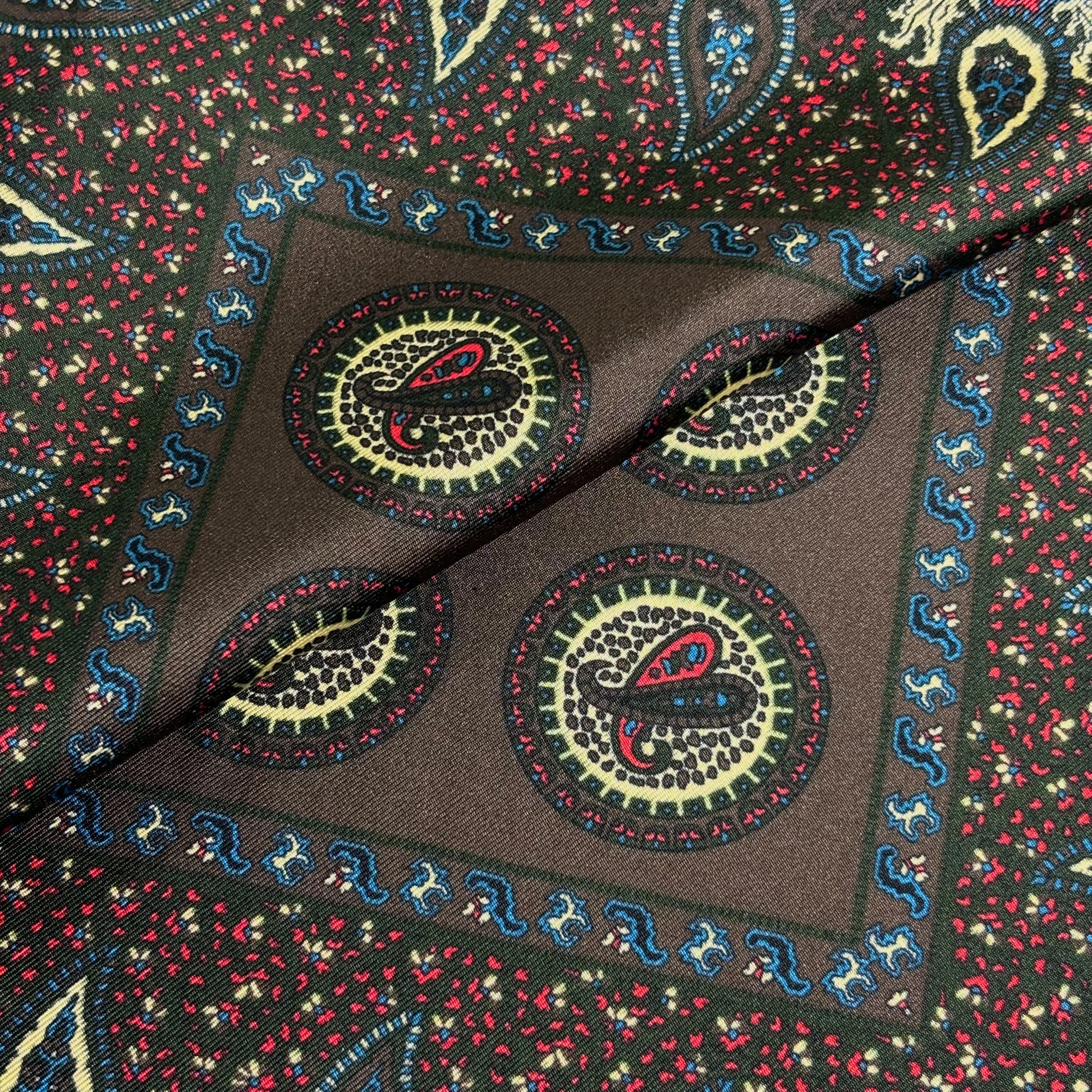 Madder dye is world-renowned due to its vibrant colors and chalky feel. These squares use a digitally printed madder to preserve the intense colors of the dye and retaining the silk's softness.