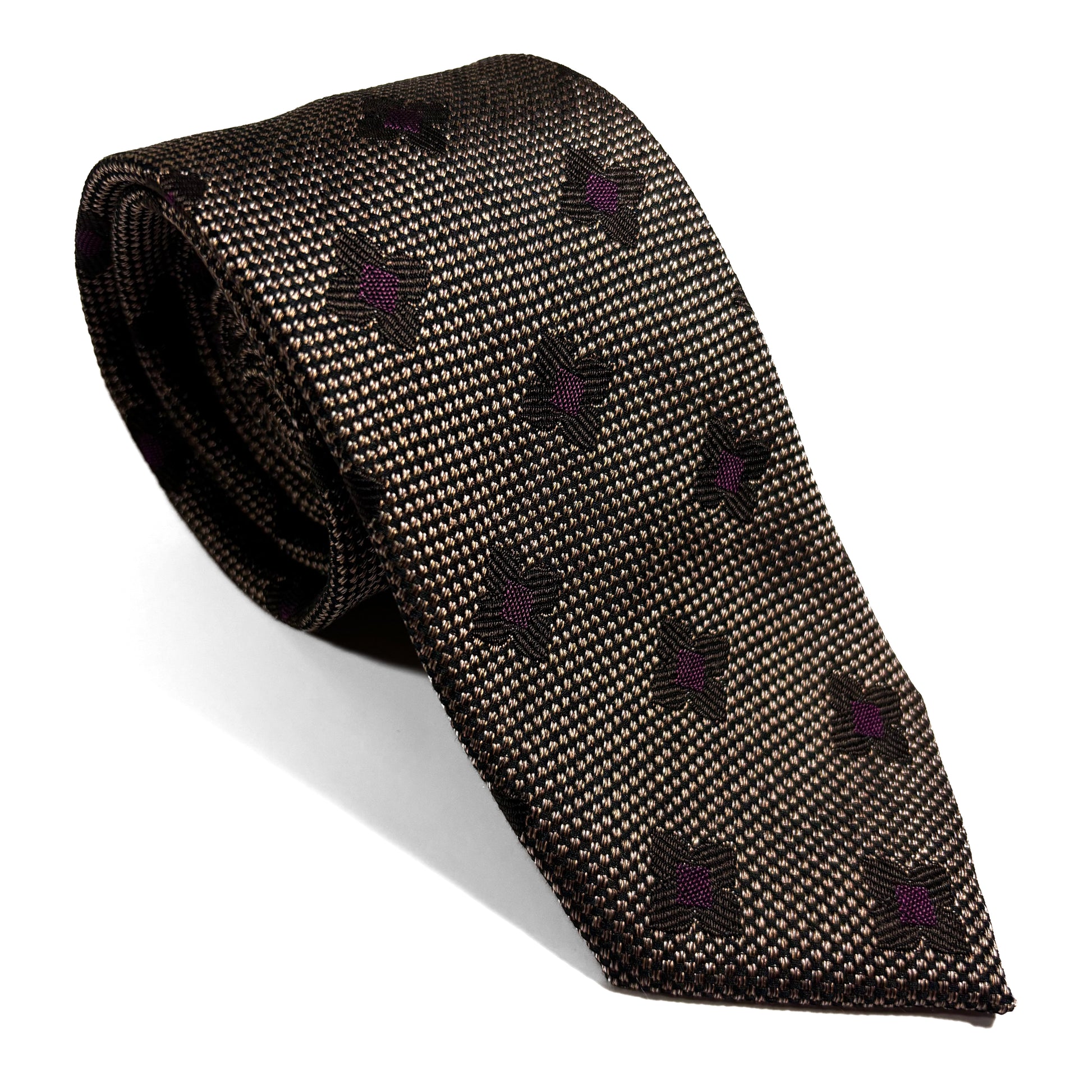 Brown Geometric Jacquard Silk Tie
