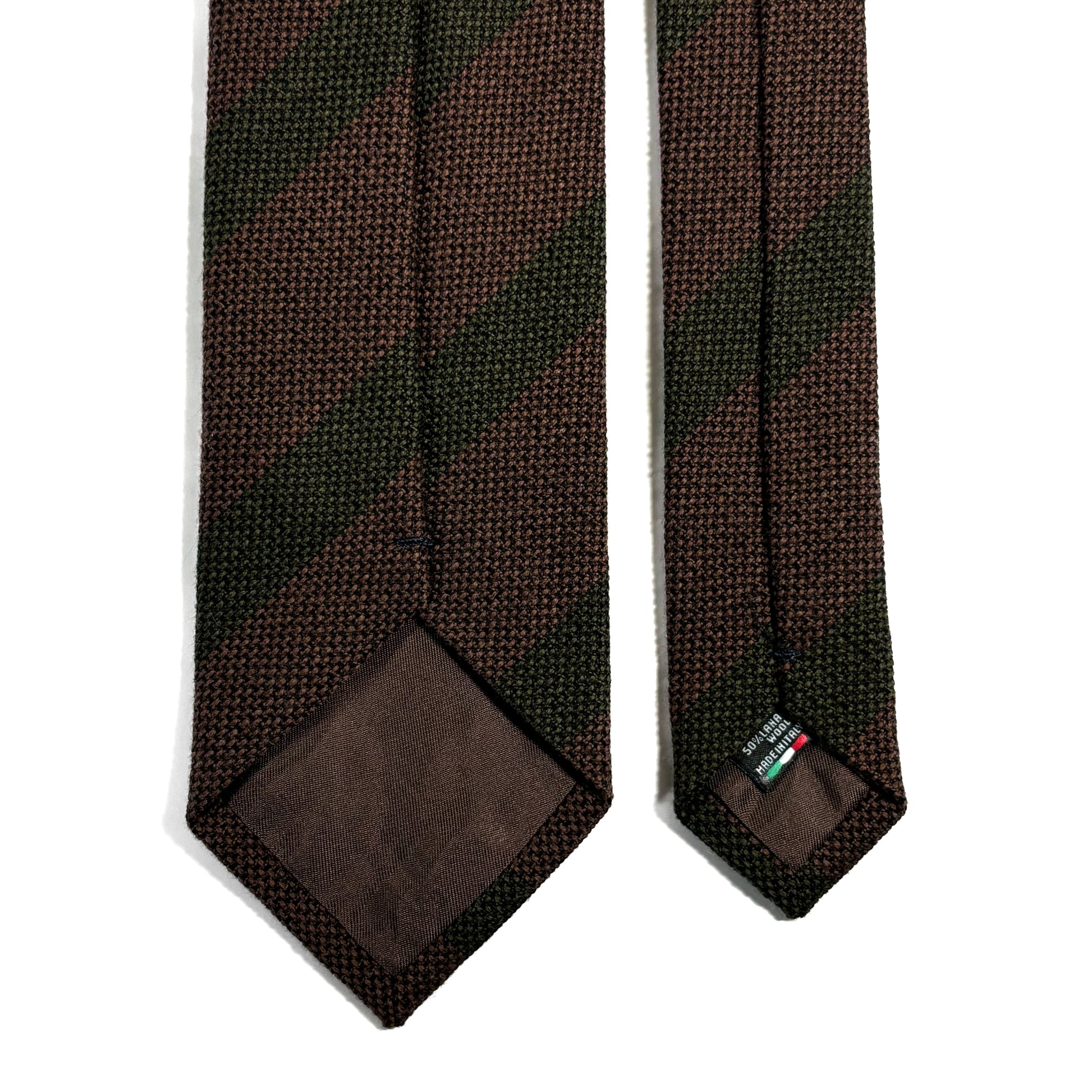 Brown & Green Striped Wool/Silk Grenadine Tie