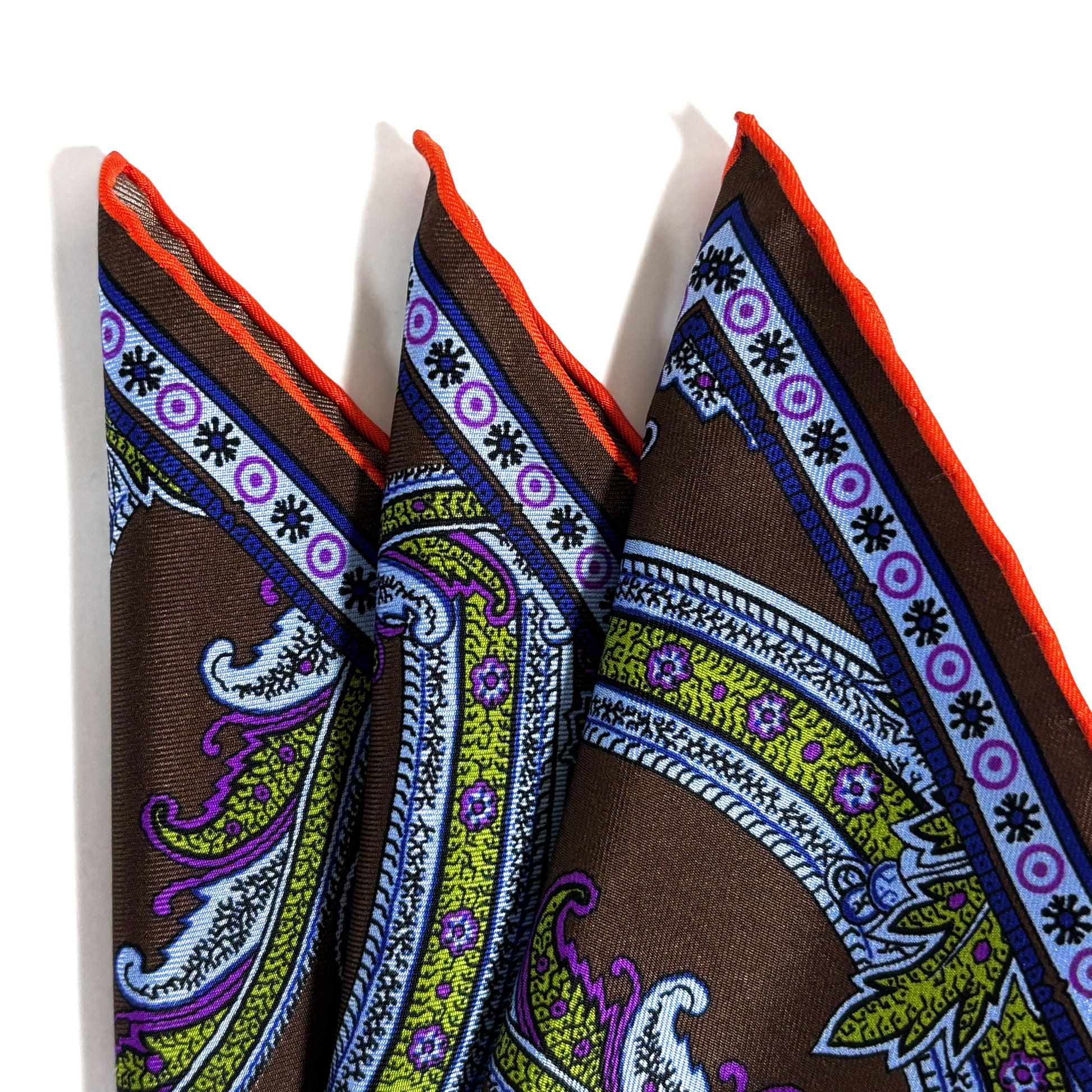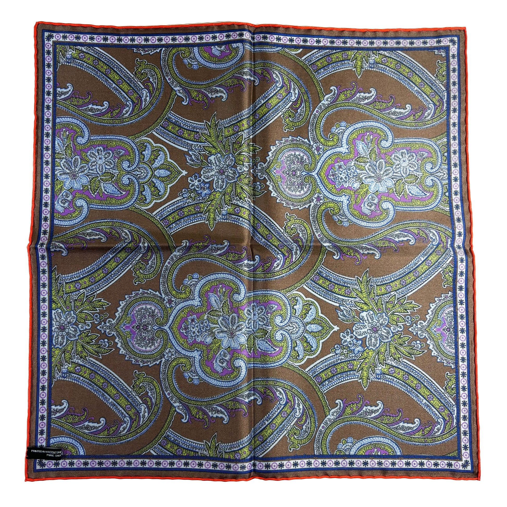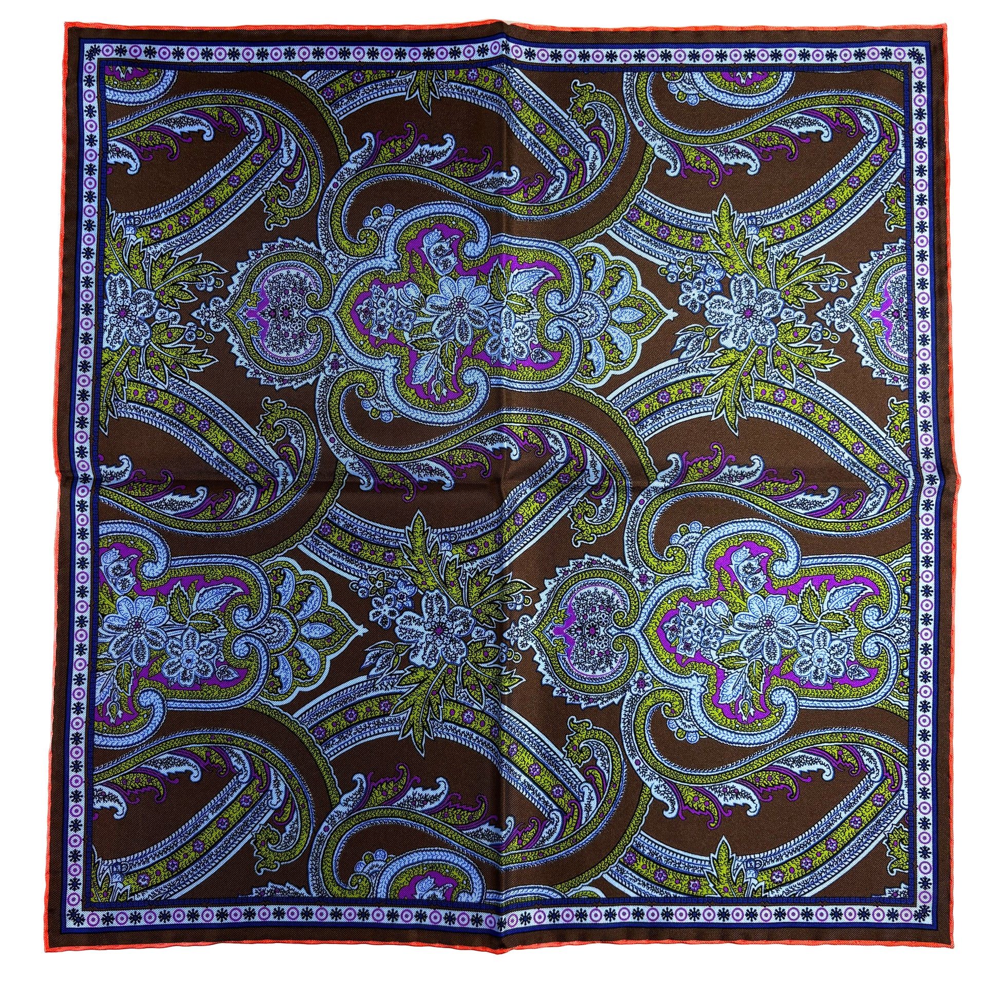 Crafted from 100% silk twill and handmade in England, this pocket square reflects the enduring legacy of British textile excellence. Produced in the historic town of Macclesfield—renowned for centuries of silk craftsmanship—each piece is hand-sewn with hand-rolled edges, offering refined structure and depth in every fold. Silk twill remains the gold standard for pocket squares, prized for its lightweight feel, rich dye absorption, and elegant sheen. The fabric is printed using a modern, eco-conscious method that delivers vibrant, double-sided color while minimizing waste. Measuring 16 inches across, this square is carefully sized to stay in place throughout the day, no matter how it's folded. An understated staple of timeless menswear, made with precision and purpose. |