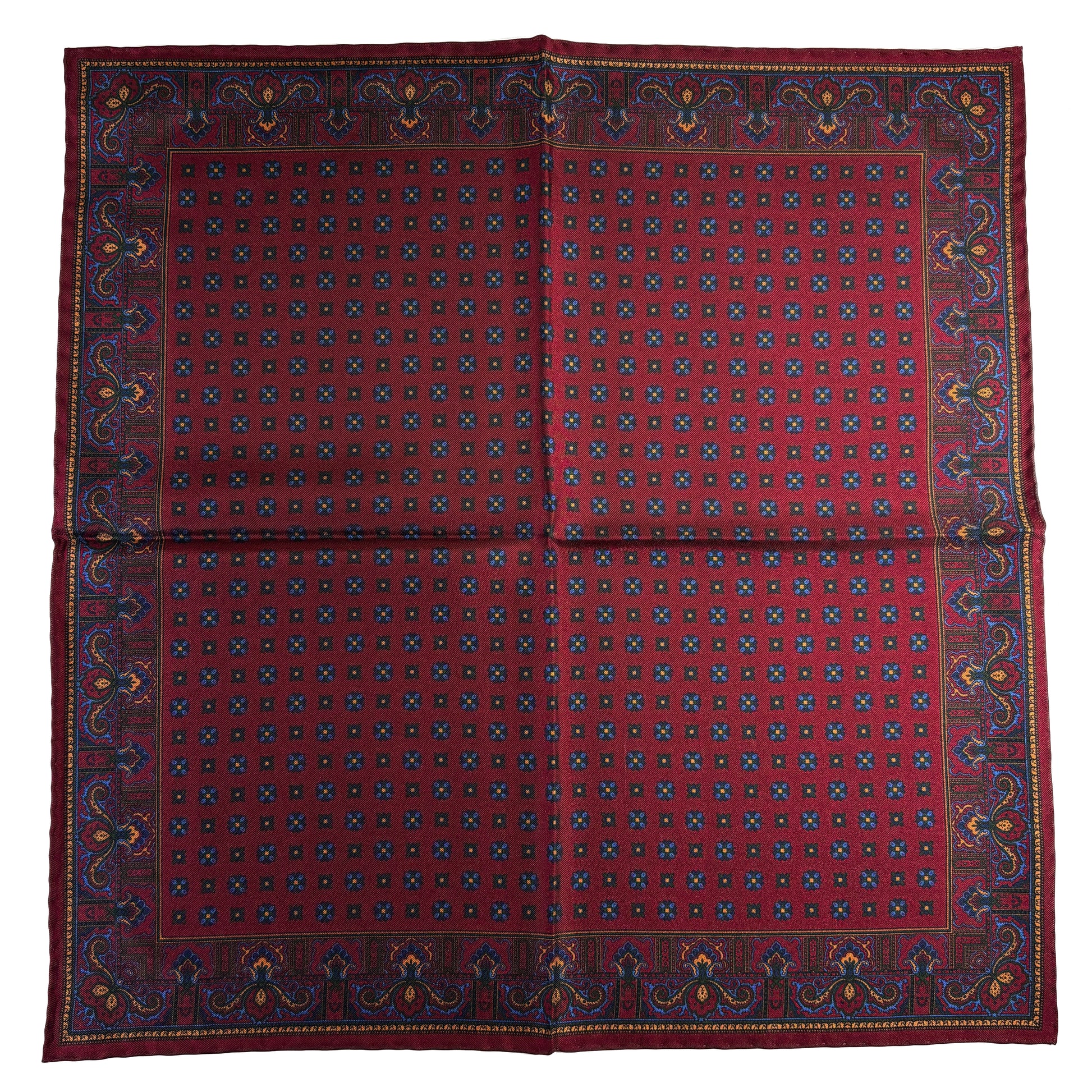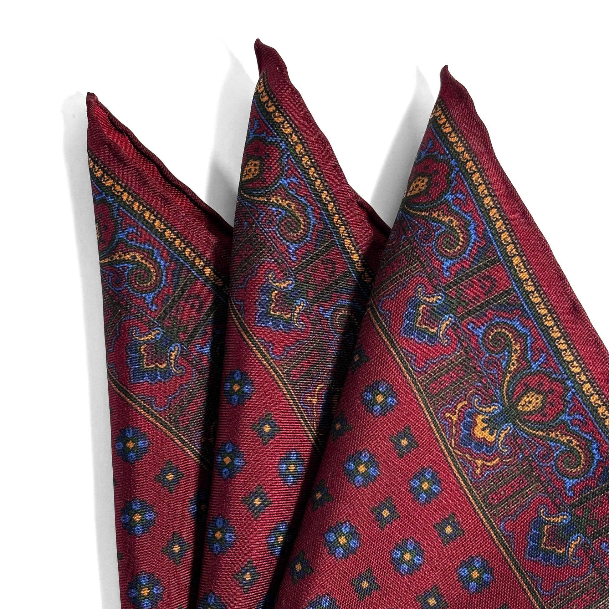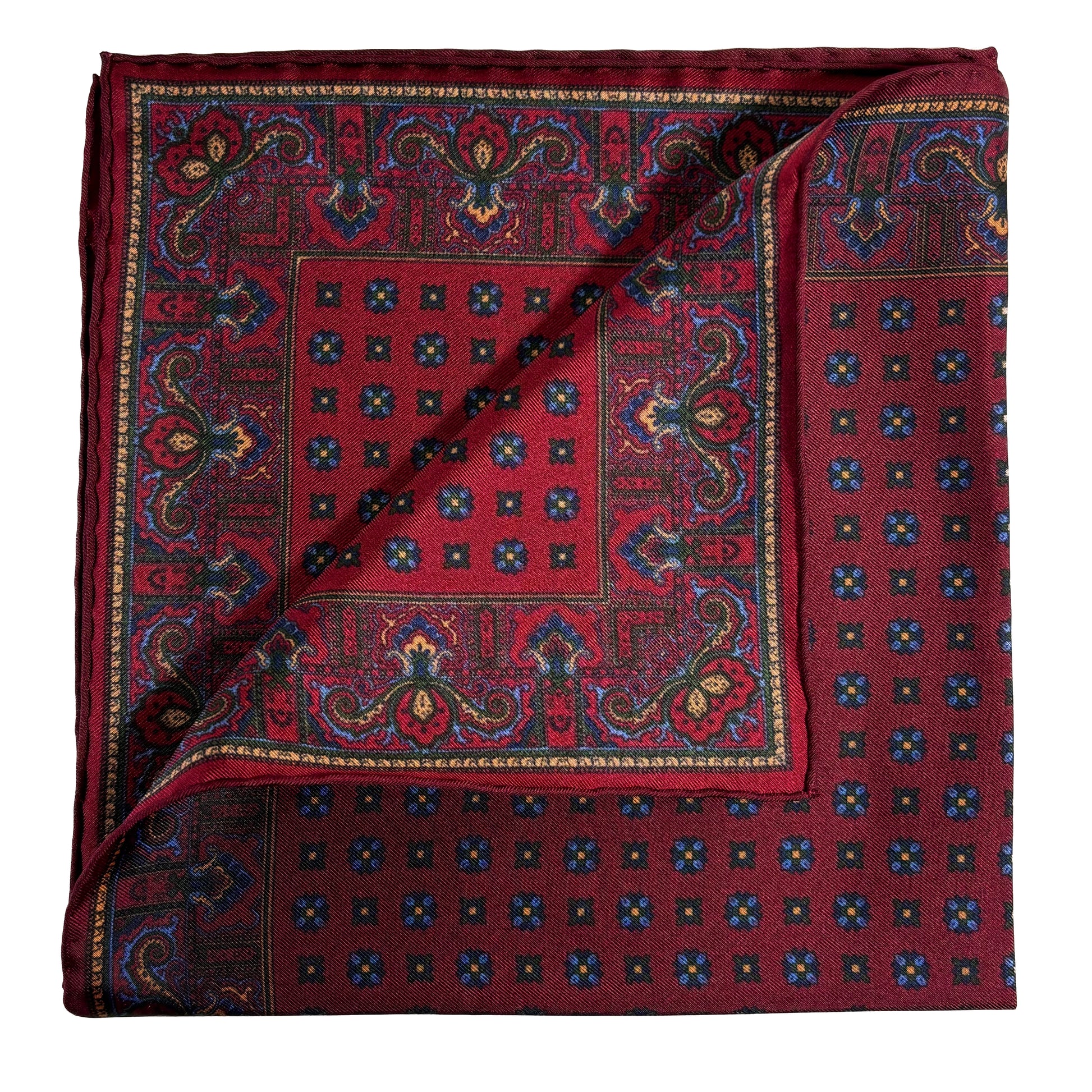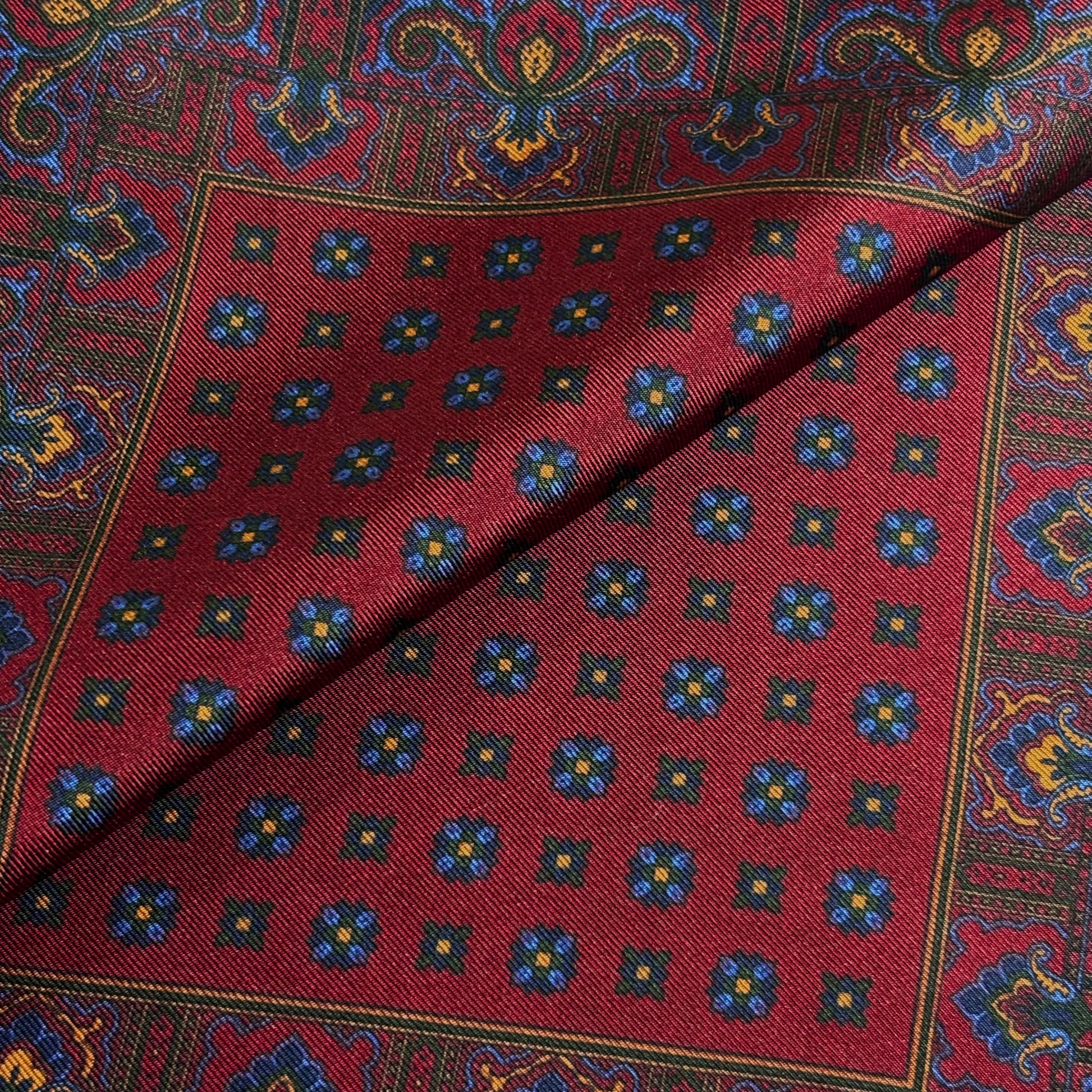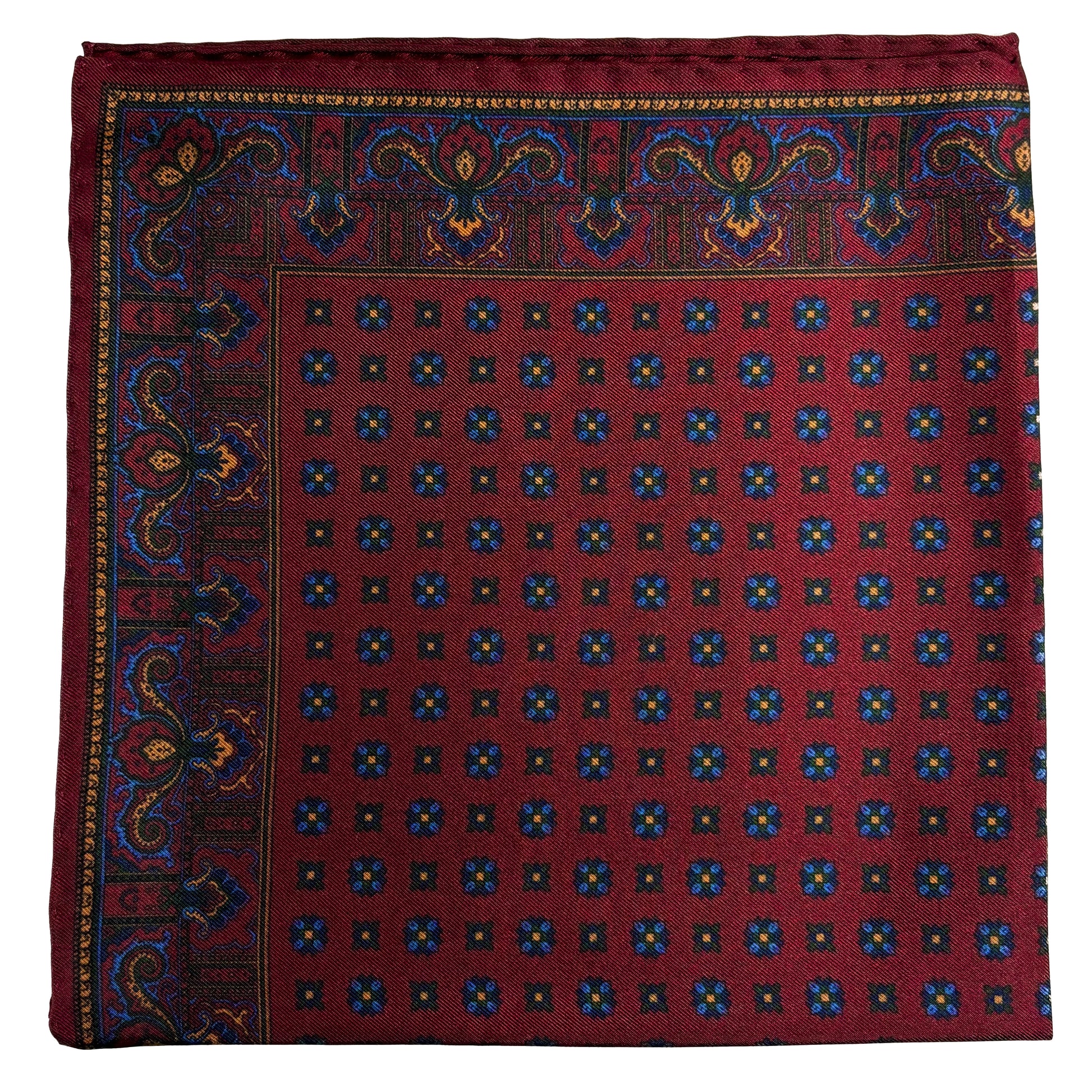 Burgundy Floral Ancient Madder Silk Pocket Square