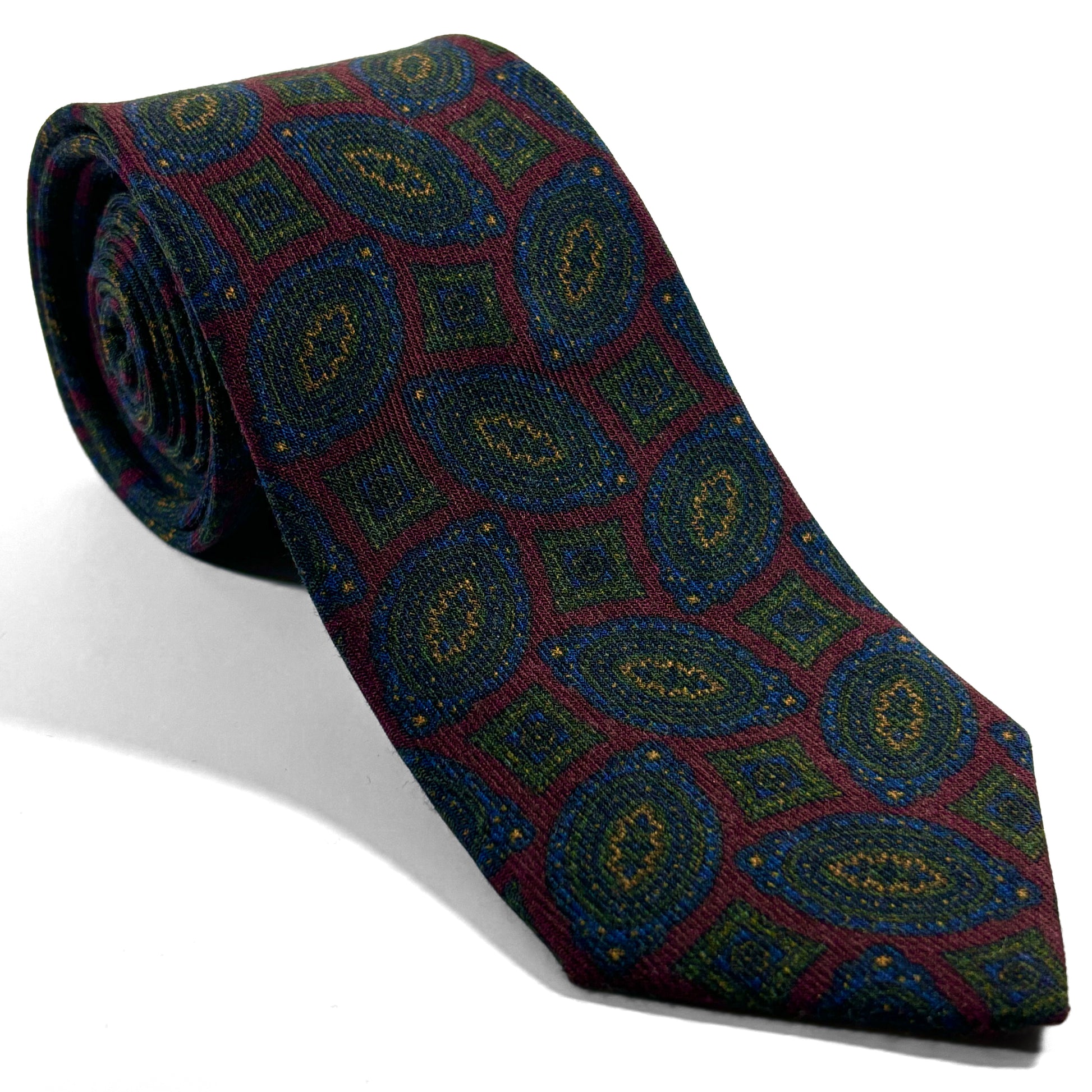 This tie is crafted from a luxurious 70% Wool / 30% Silk cloth woven in Como, Italy, a region celebrated for producing some of the world’s finest printed textiles. The blend offers a naturally soft hand, a muted color palette, and richly detailed patterns that are ideal for the colder months.