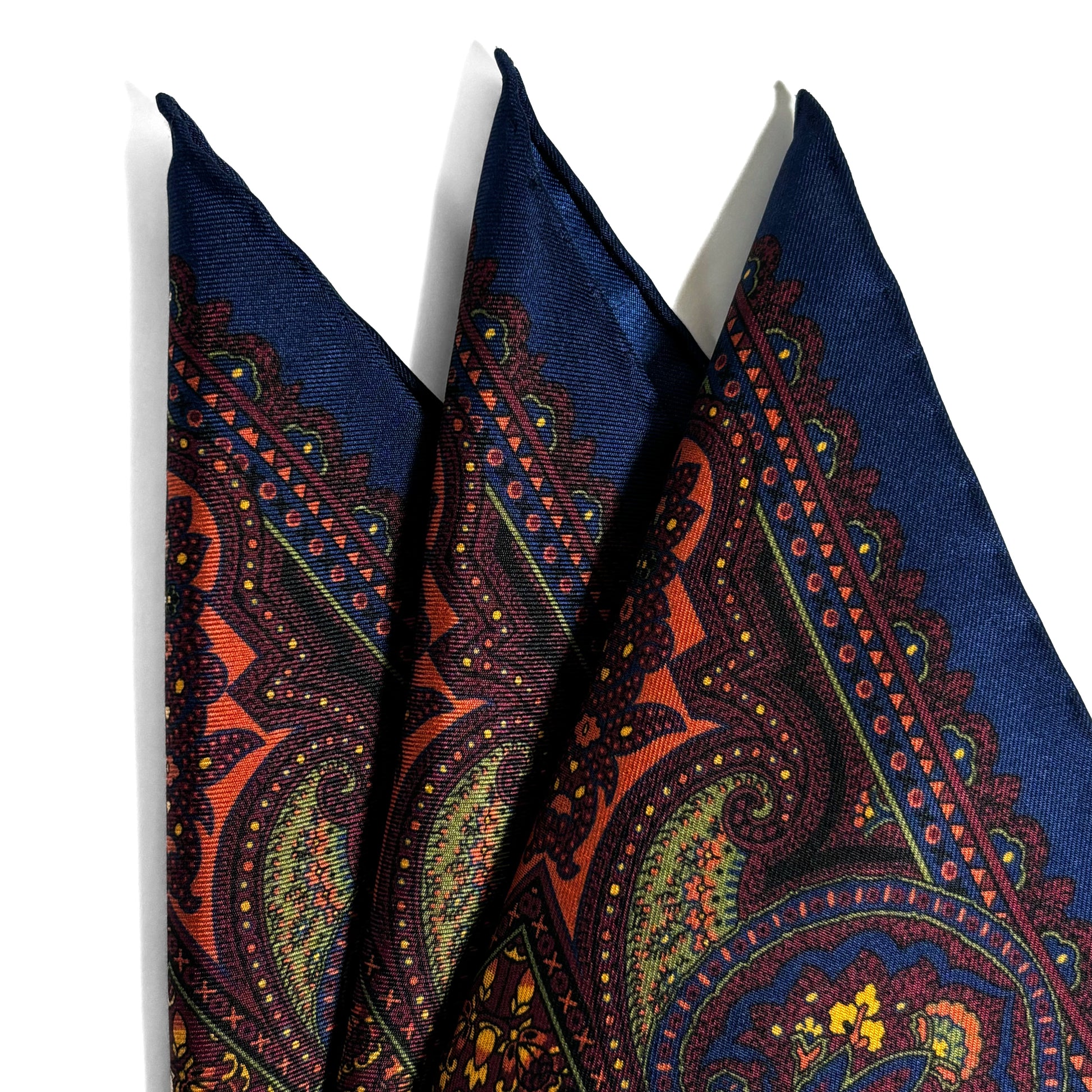 Silk twill pocket squares are the golden standard due to their lightweight, absorption of dyes, and luxurious sheen.