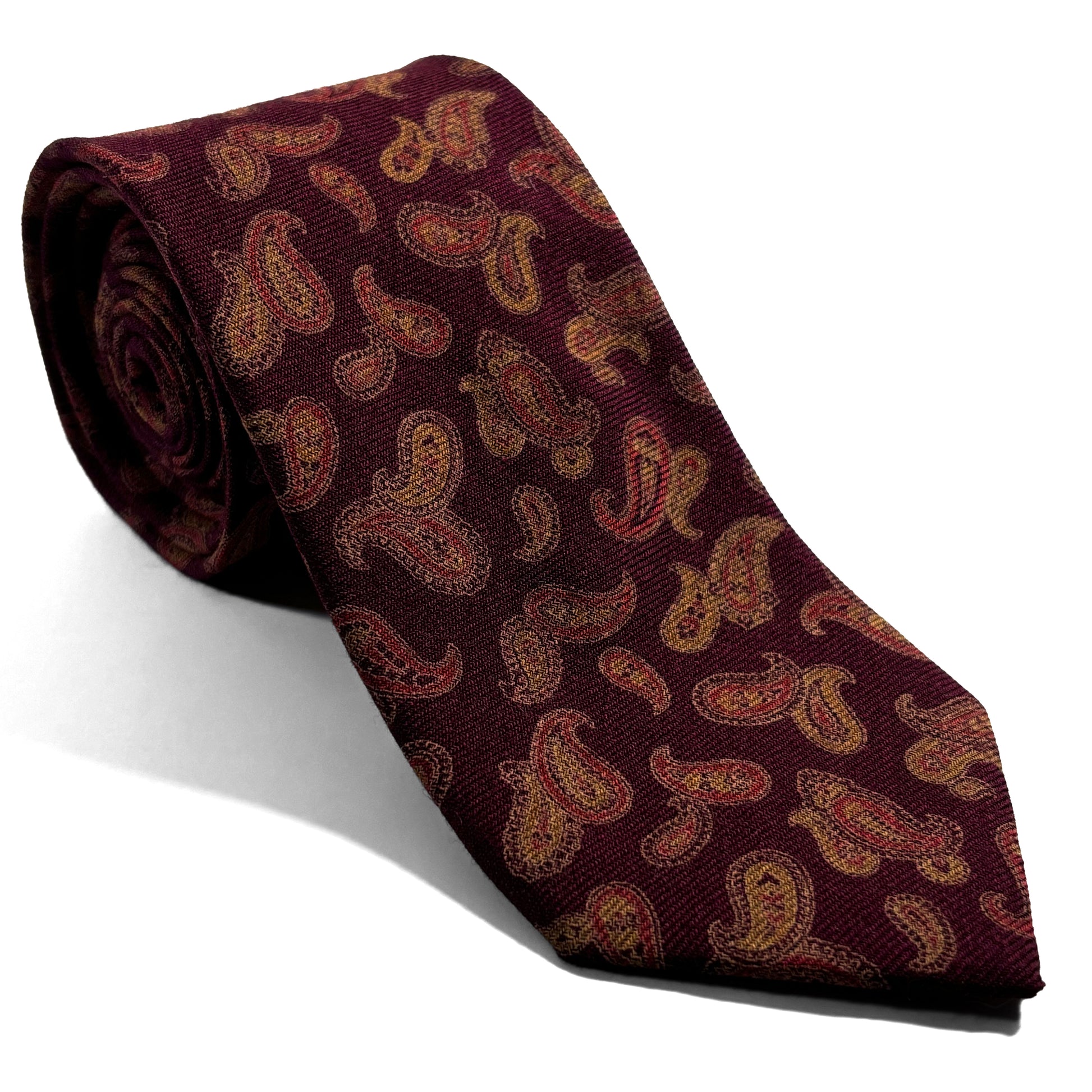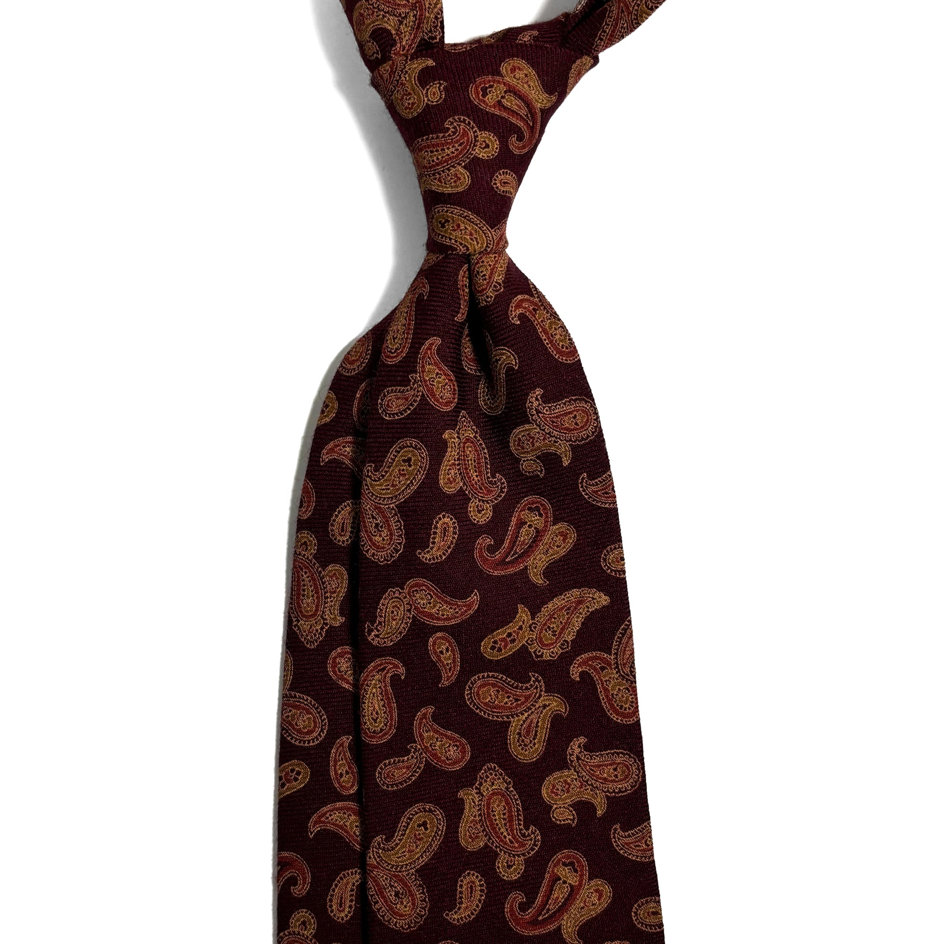 Burgundy & Gold Paisley Wool Challis Tie
