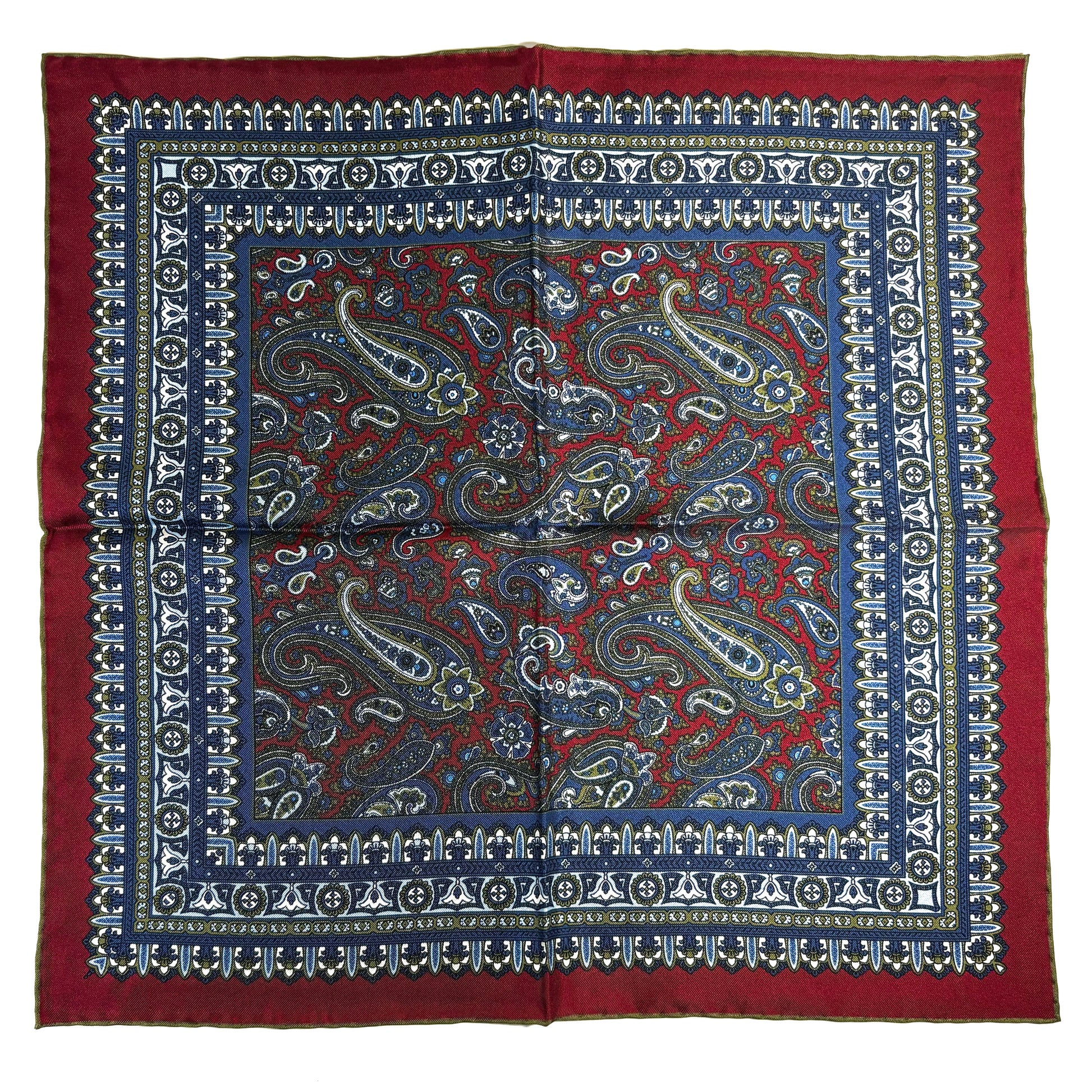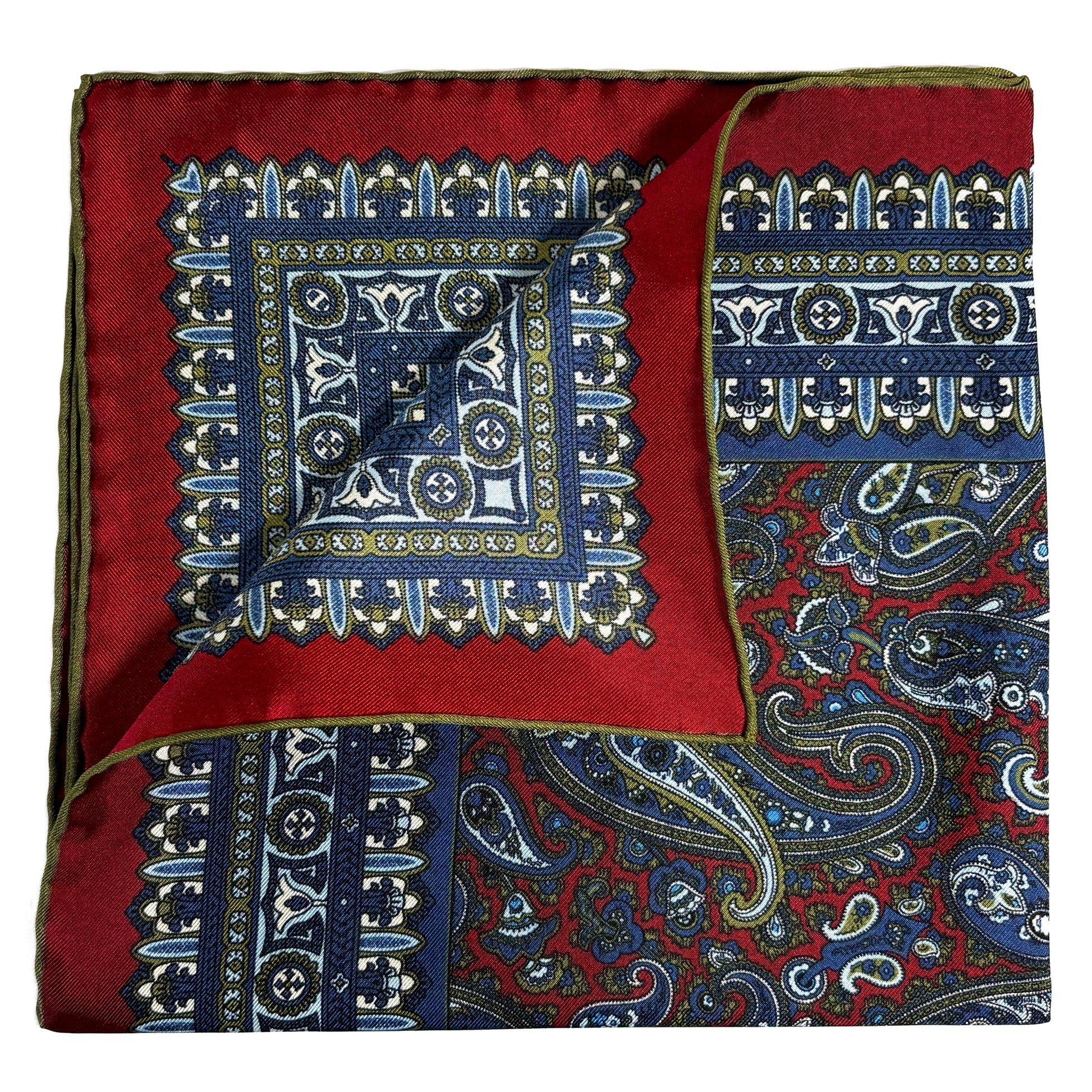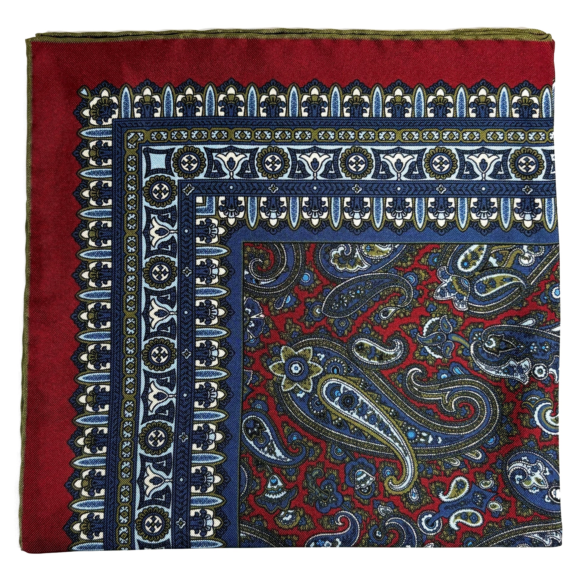 Burgundy & Olive Green Paisley Silk Pocket Square