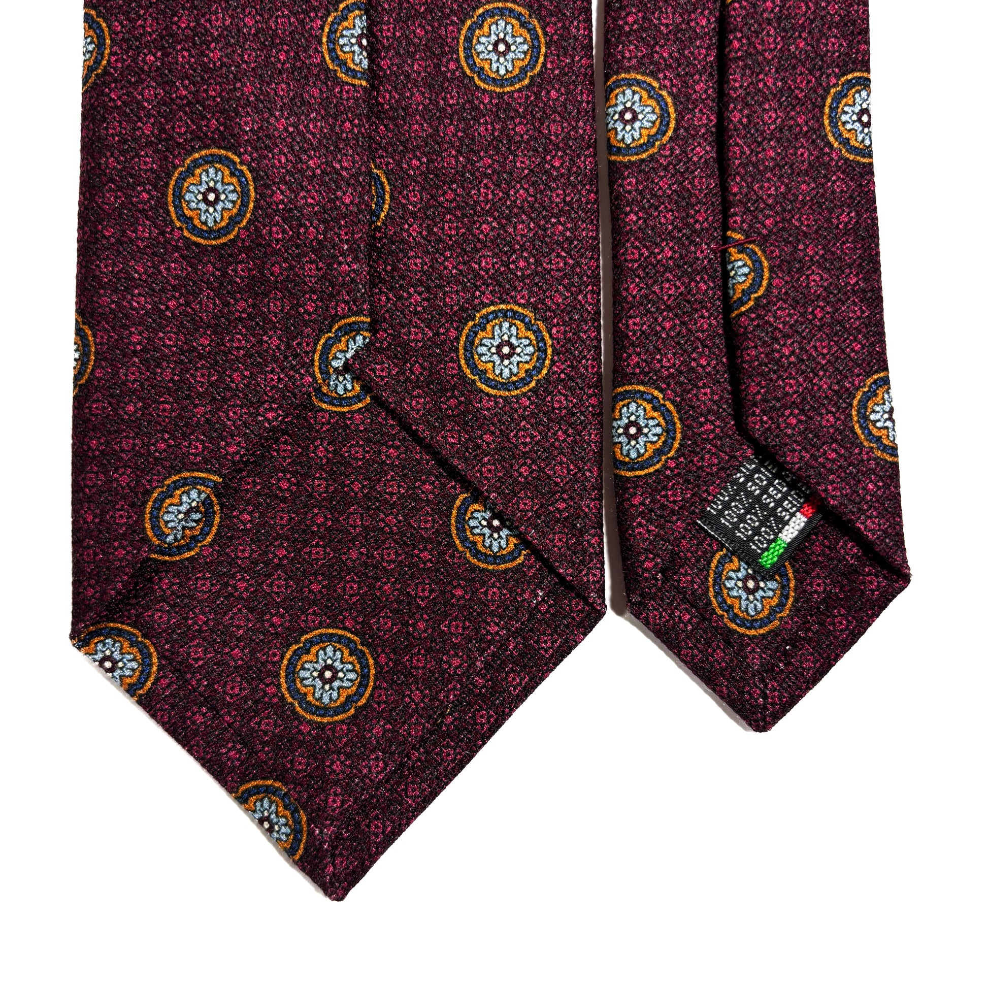 A Beautiful Burgundy Foulard Micro-Grenadine Tie, Handmade in Italy.