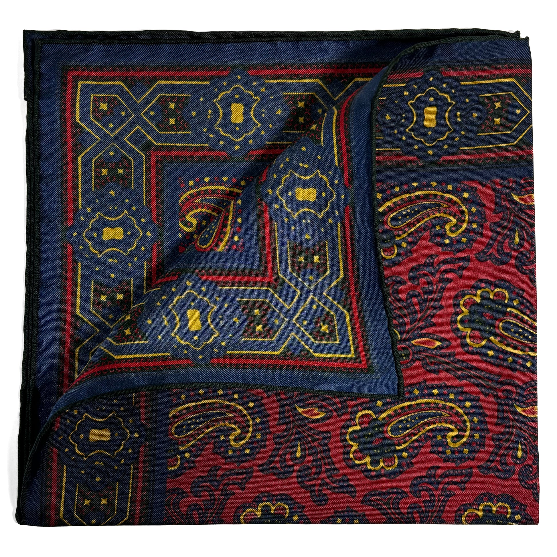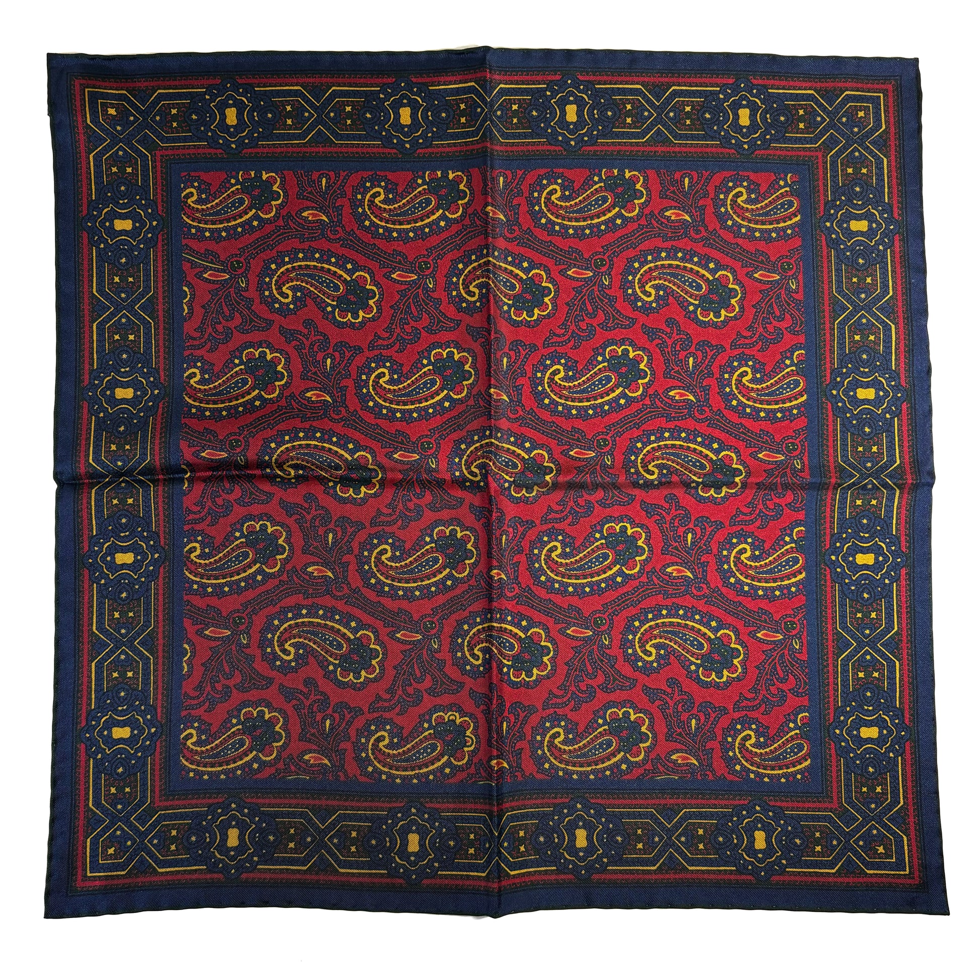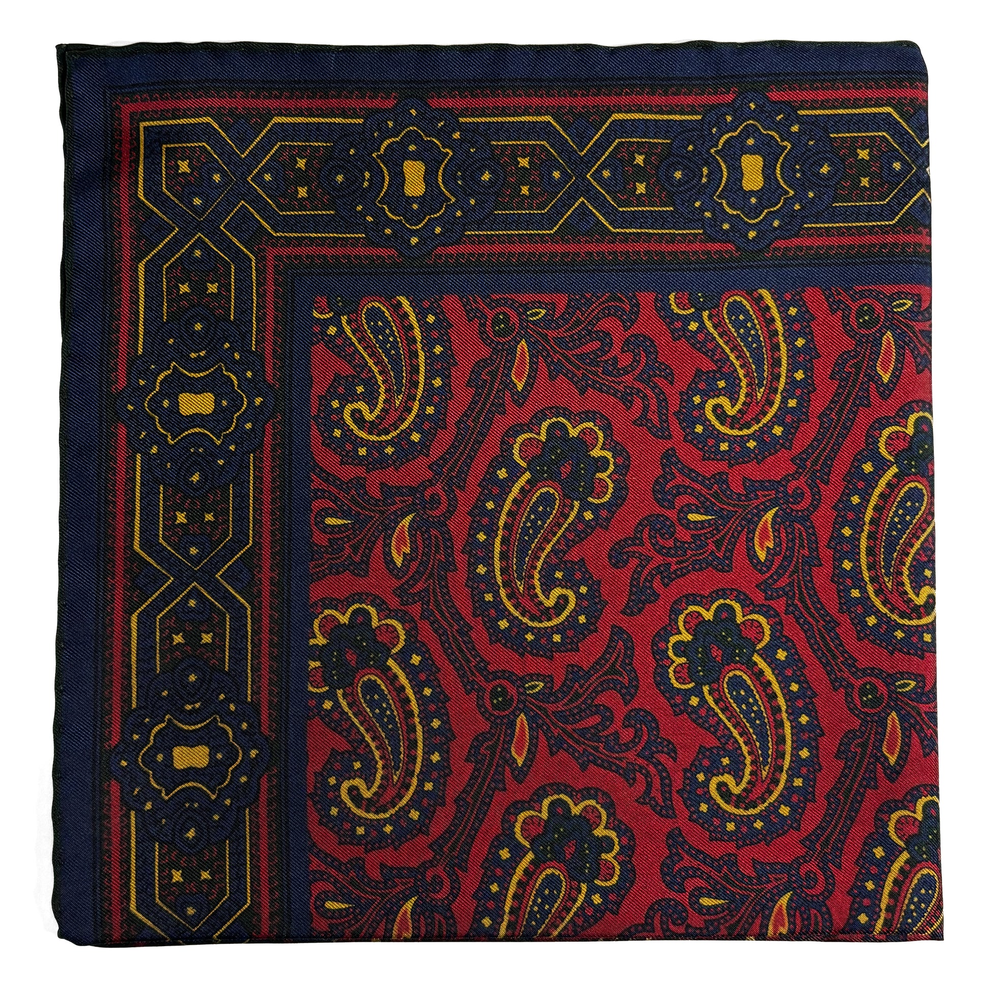 Burgundy & Yellow Paisley Ancient Madder Silk Pocket Square