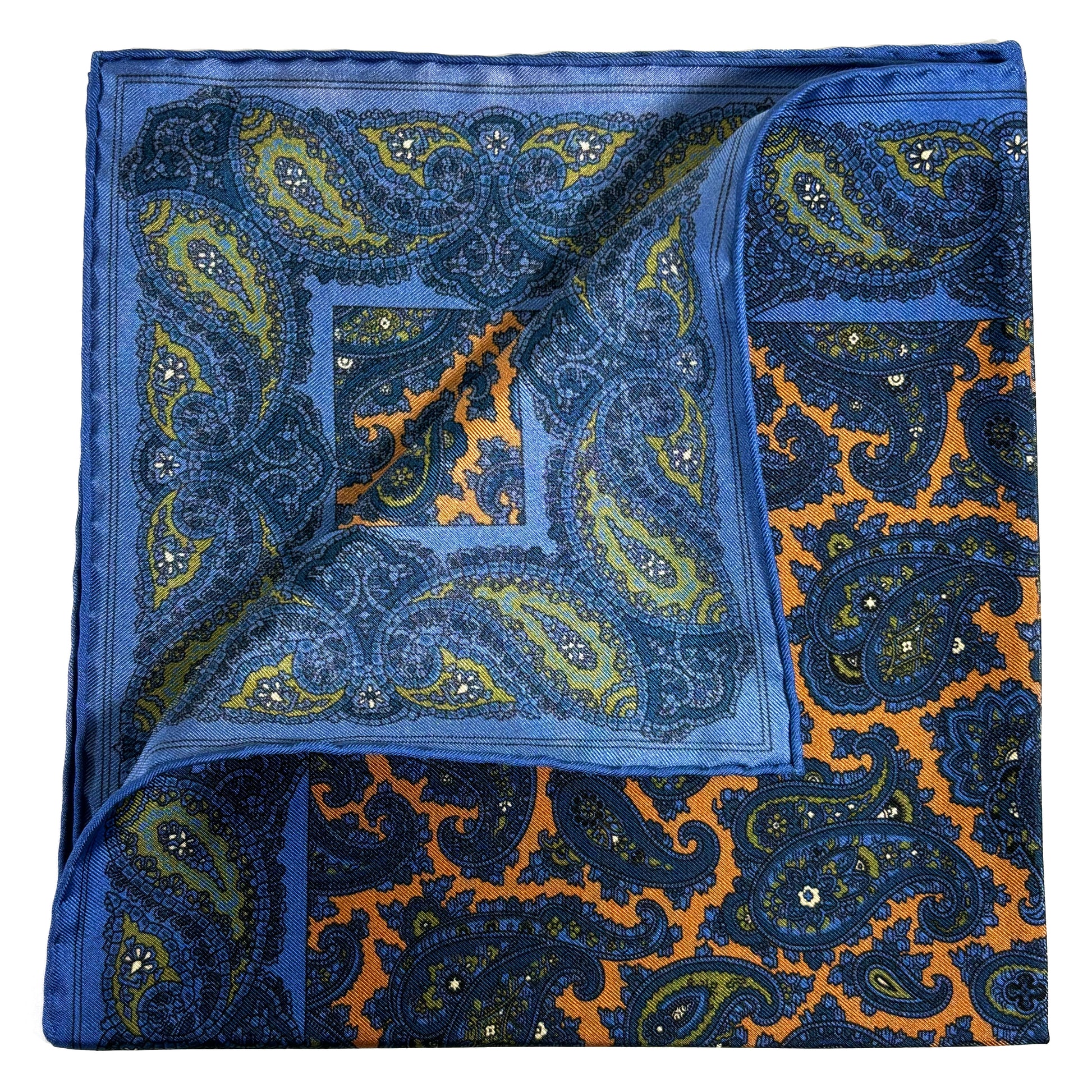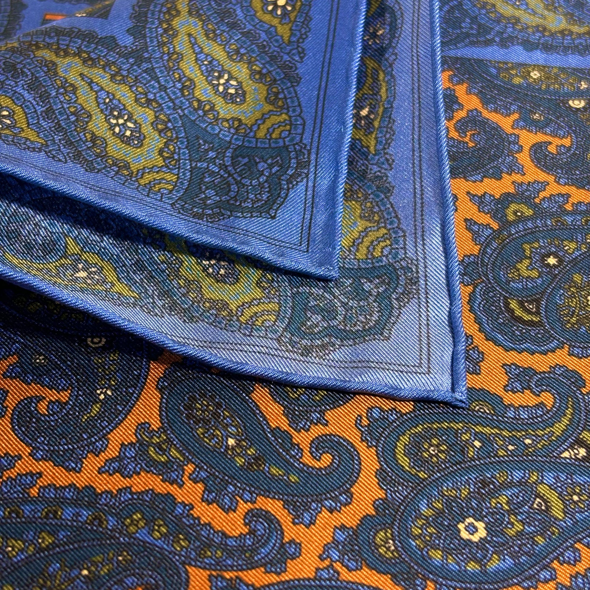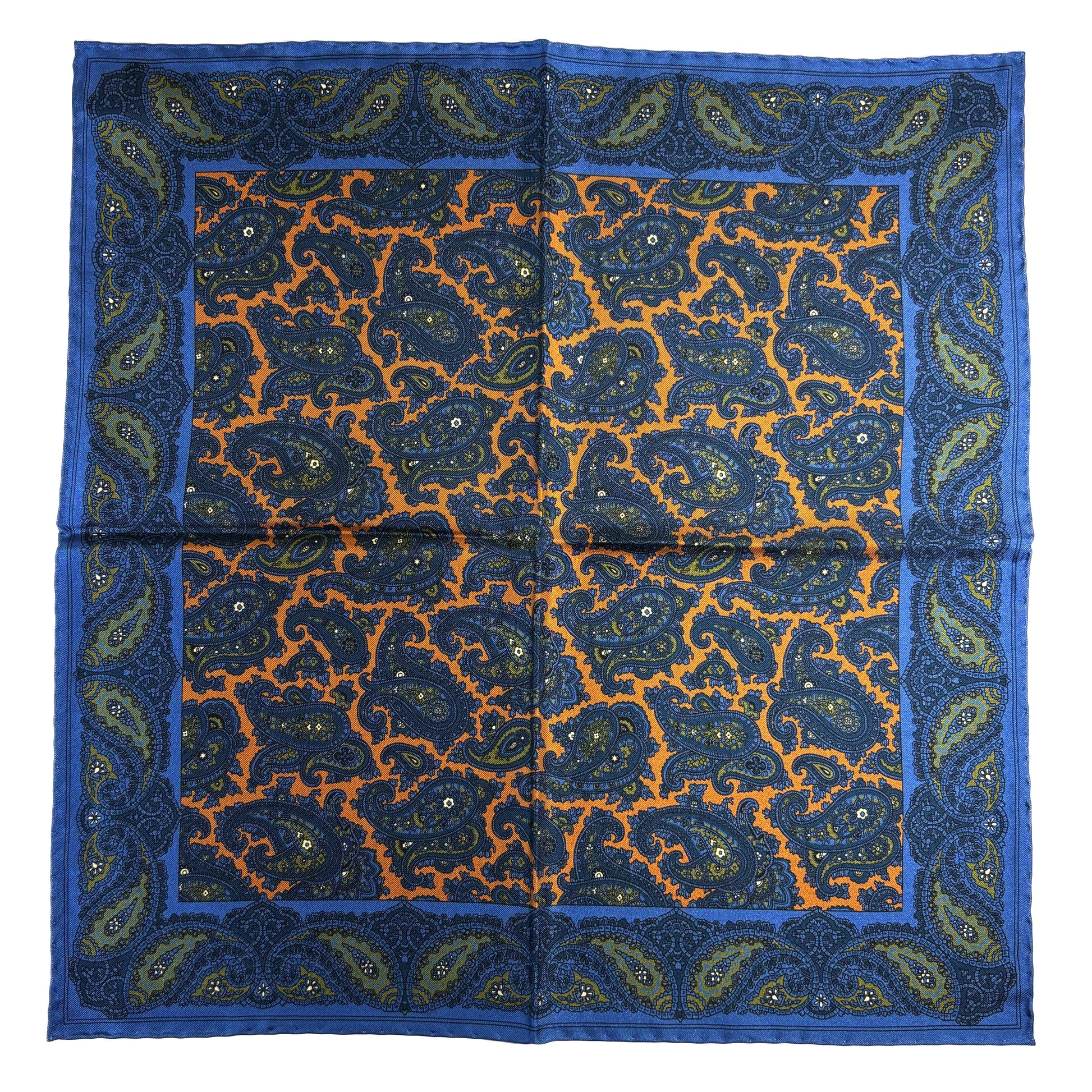 Burnt Orange & Blue Paisley Ancient Madder Silk Pocket Square