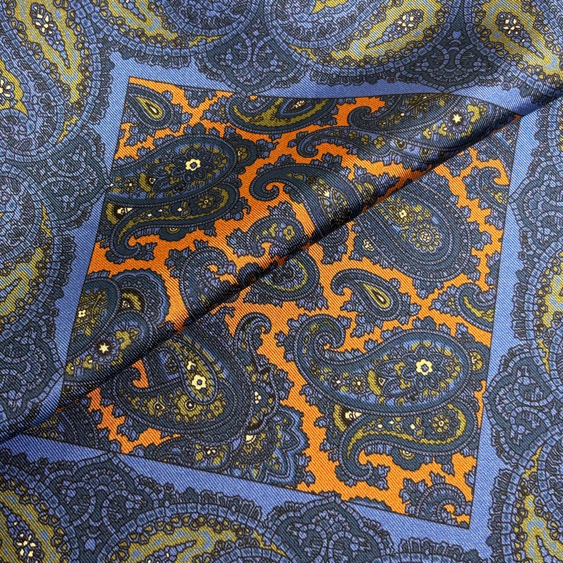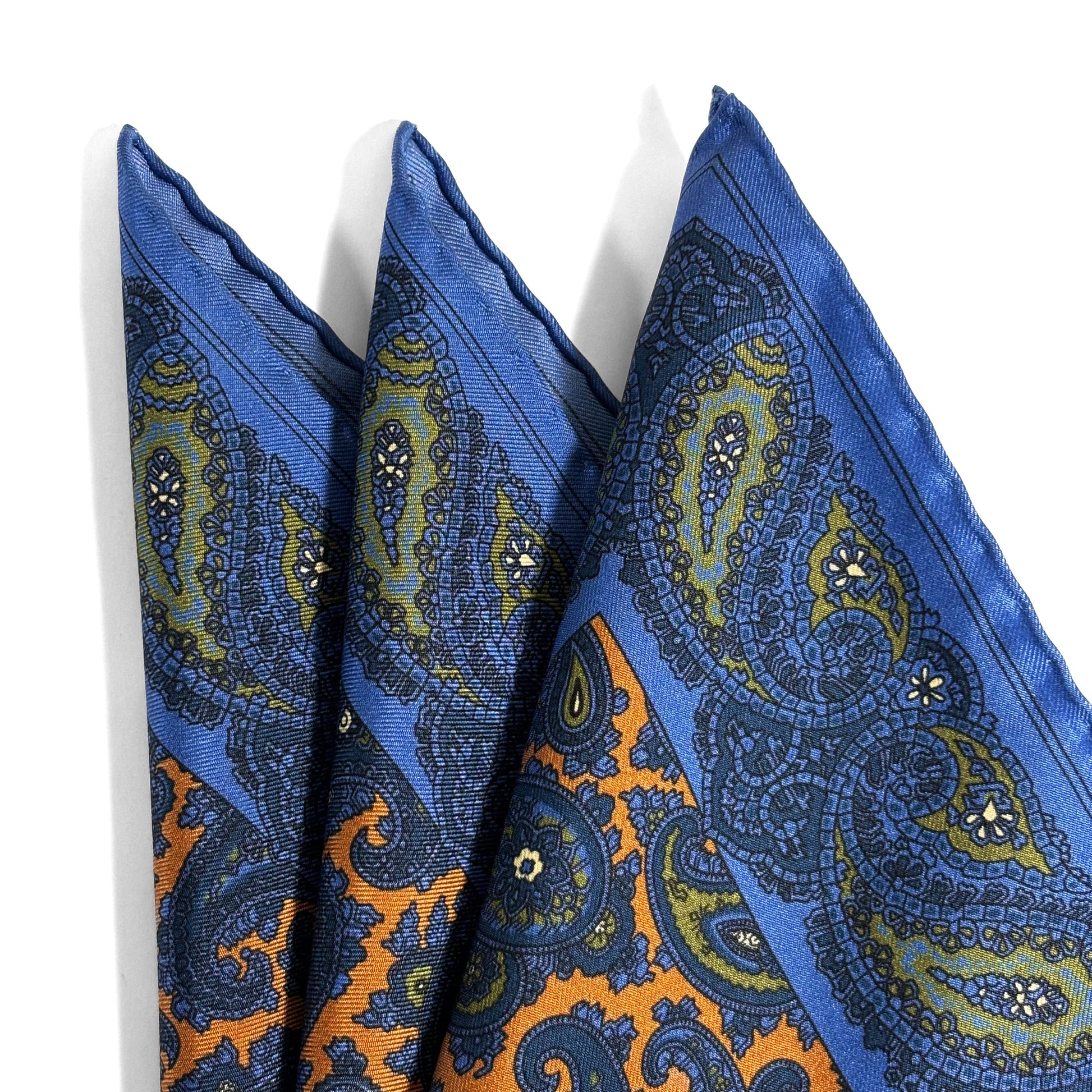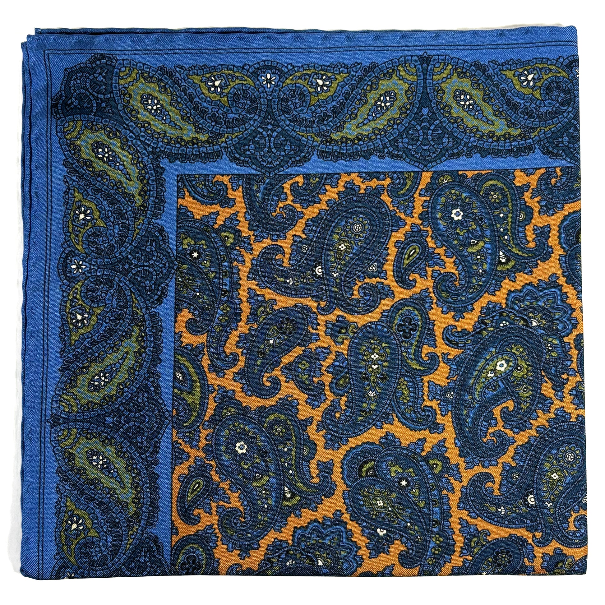 Burnt Orange & Blue Paisley Ancient Madder Silk Pocket Square