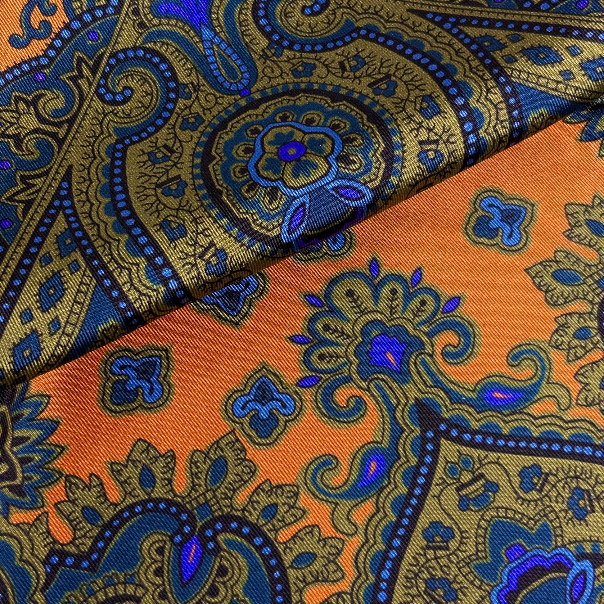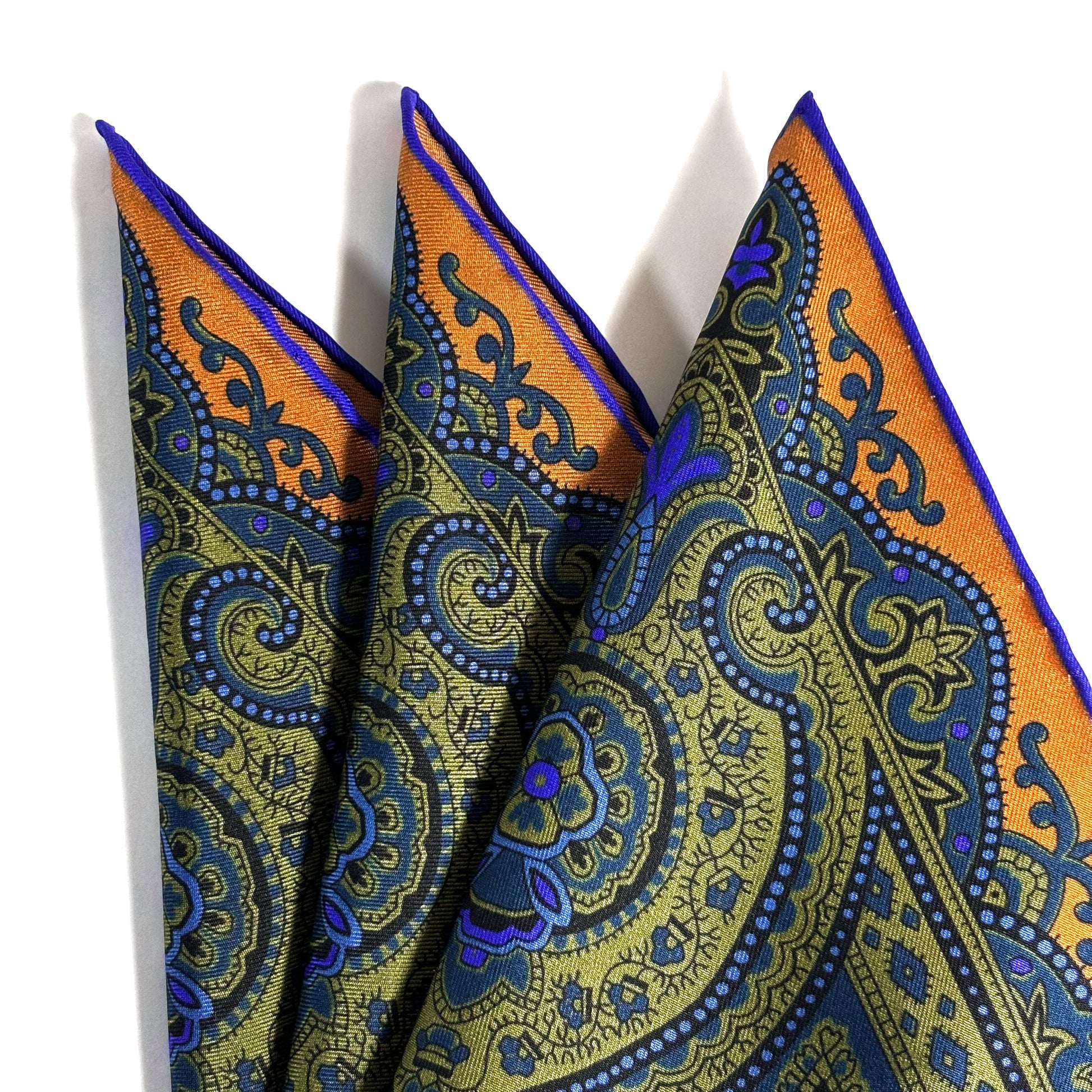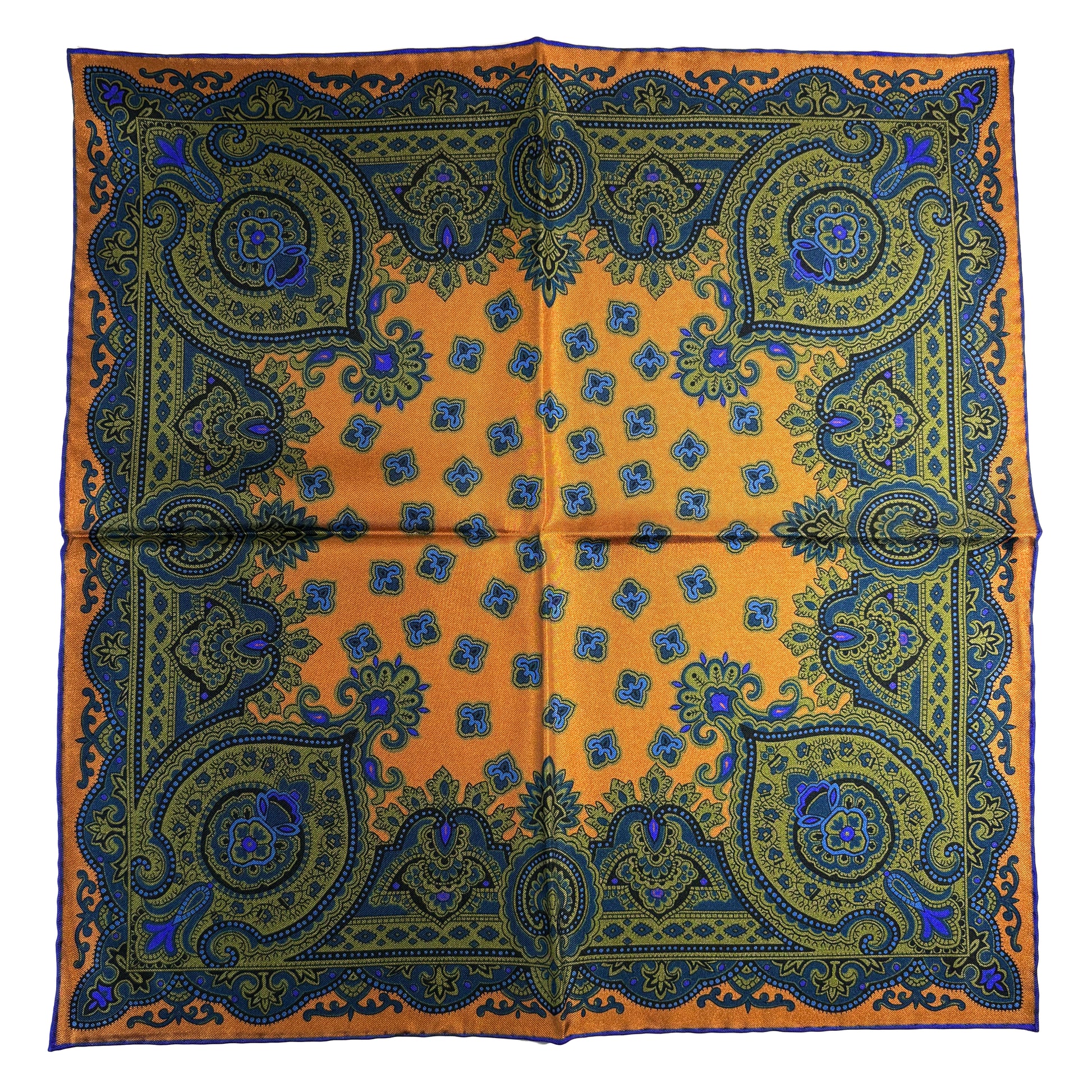 Burnt Orange & Olive Green Medallion Ancient Madder Silk Pocket Square