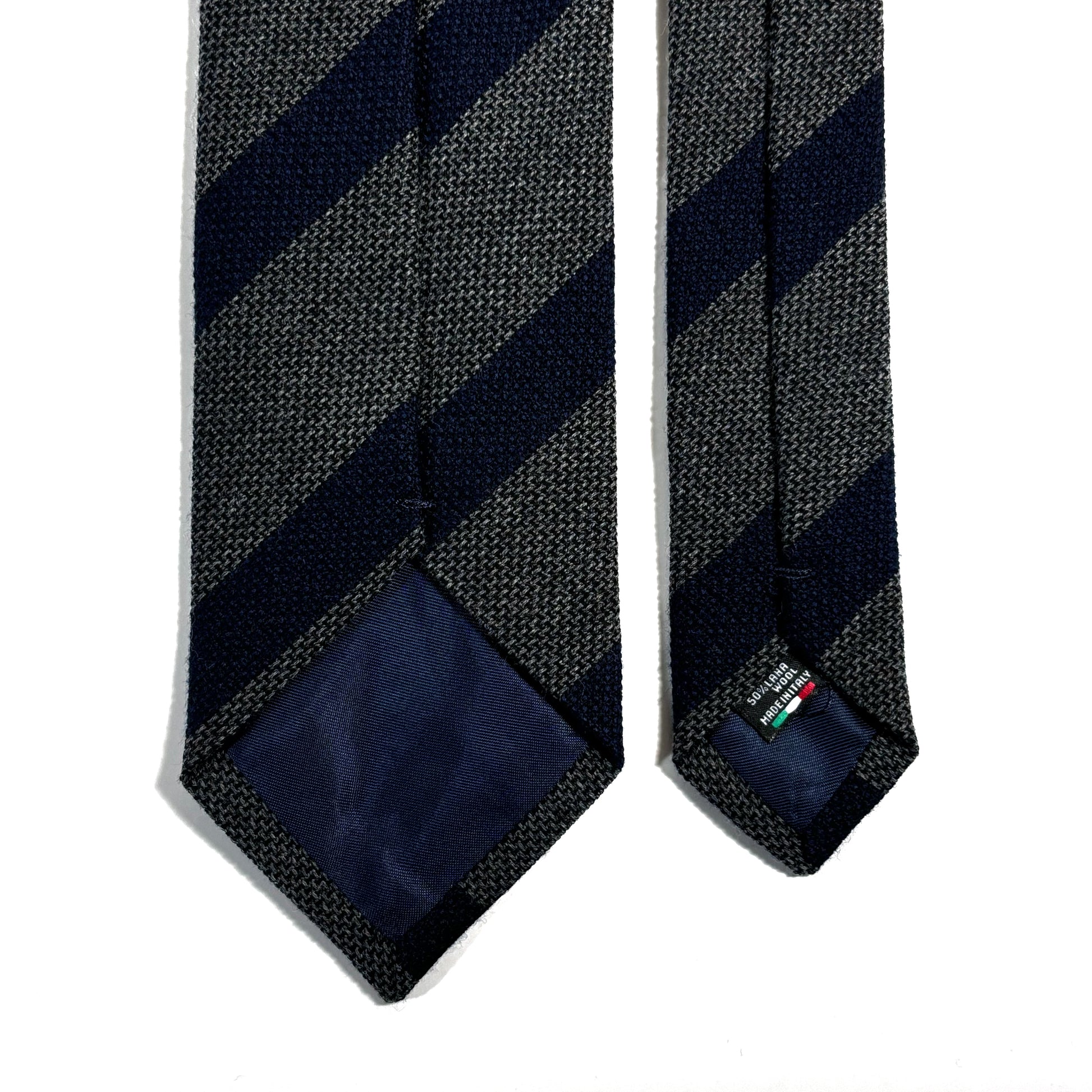 Charcoal Gray & Navy Striped Wool/Silk Grenadine Tie