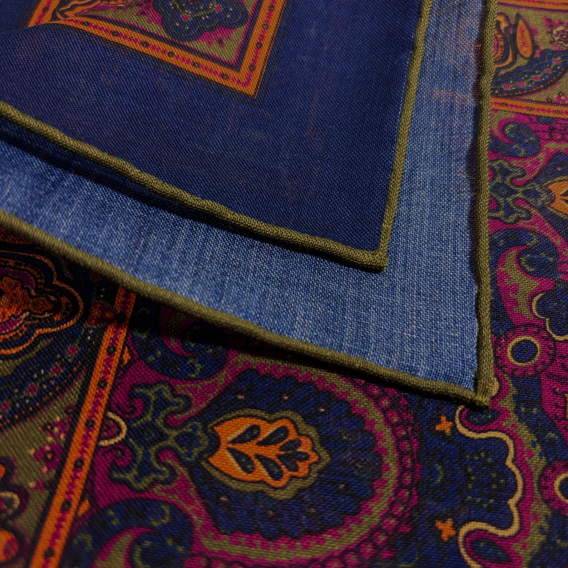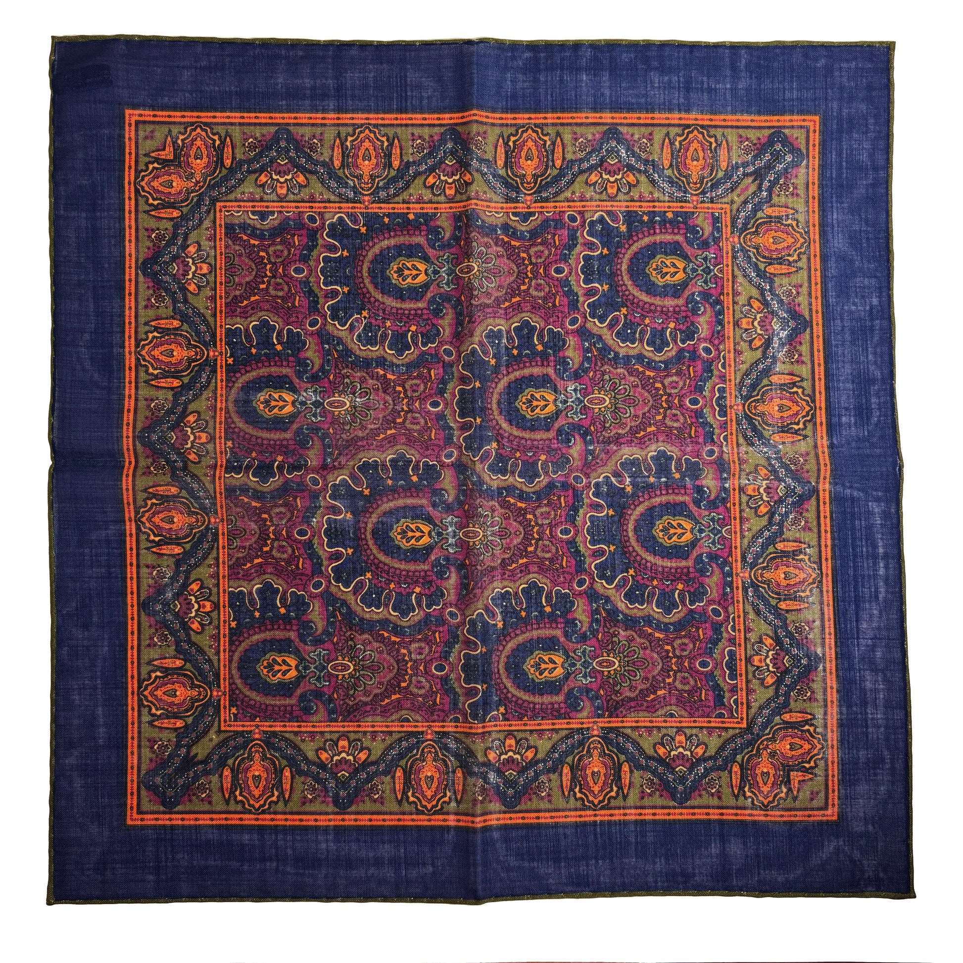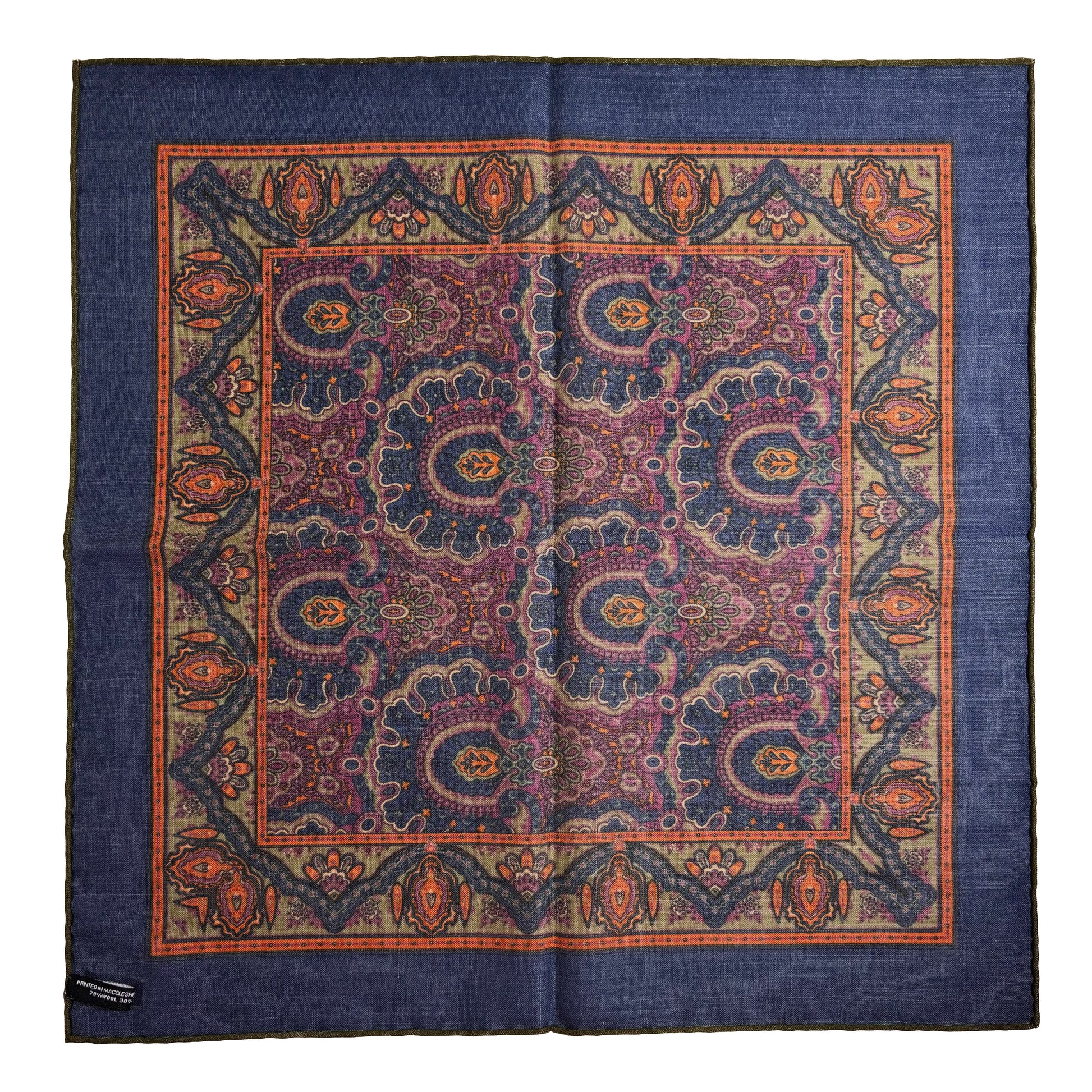 Dominus - Navy Blue & Magenta - Wool/Silk Pocket Square