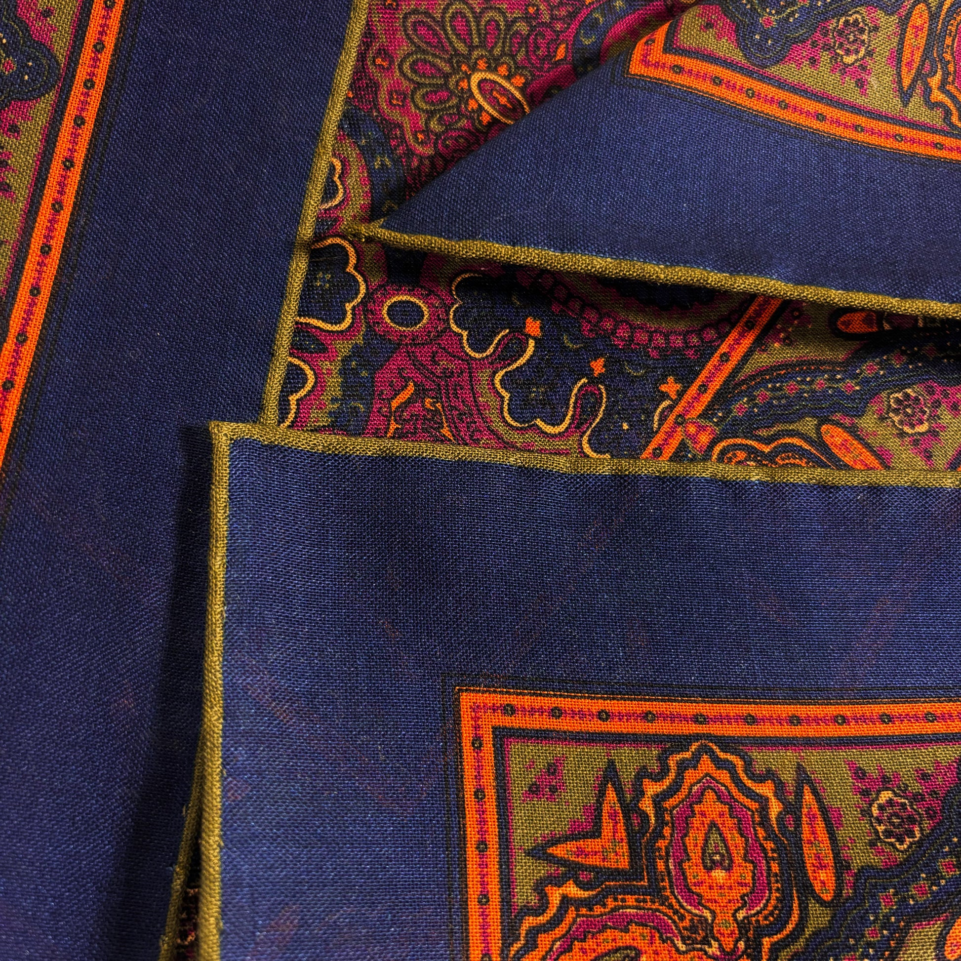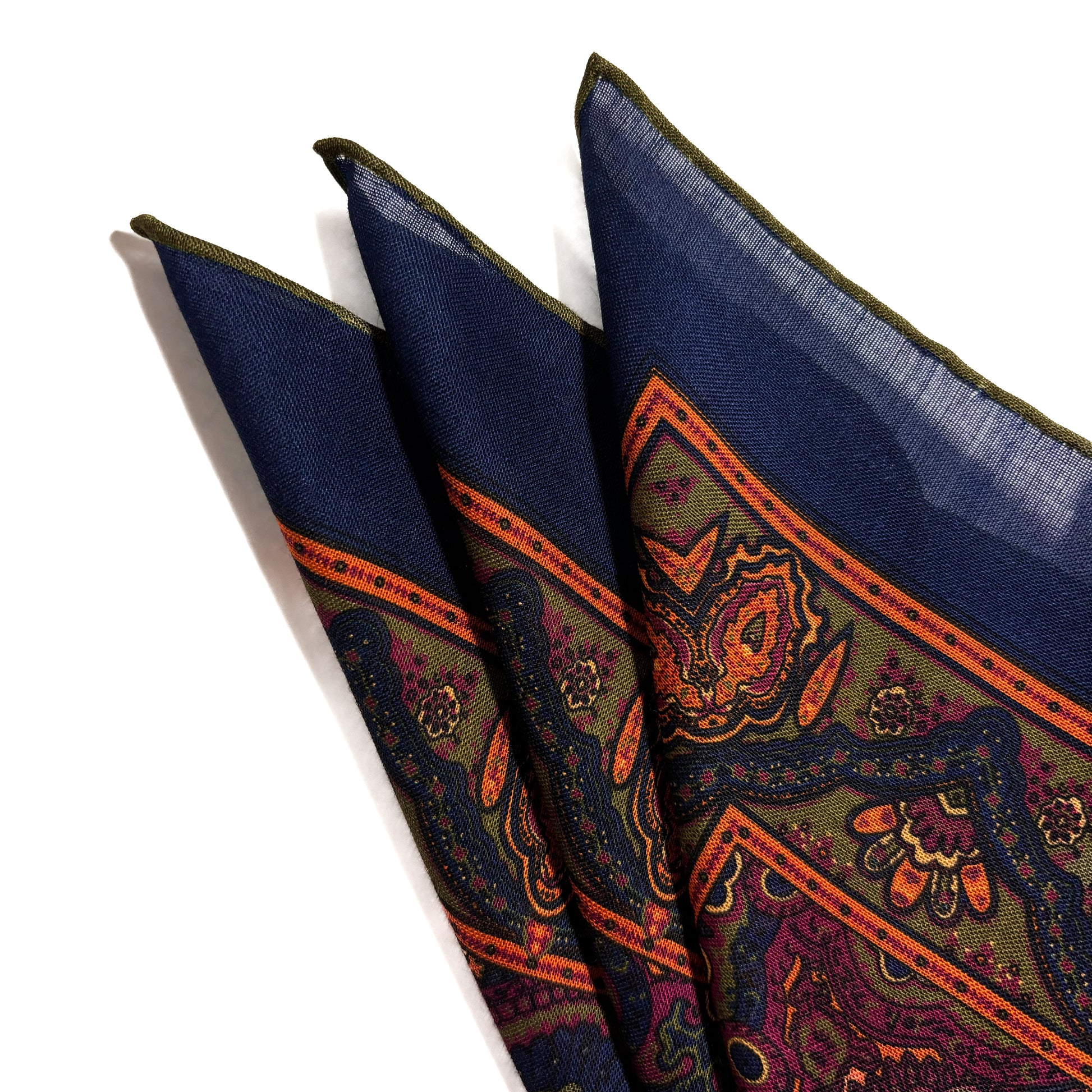 Wool/Silk pocket squares possess unique characteristics, making them one of the best fabrics for squares. They absorb dyes far better than silk, creating deep and saturated prints. The fabric features a lightweight open weave that is somewhat translucent. The wool mix gives the square its matte appearance and soft feel, while the silk adds a mild sheen and better drape.