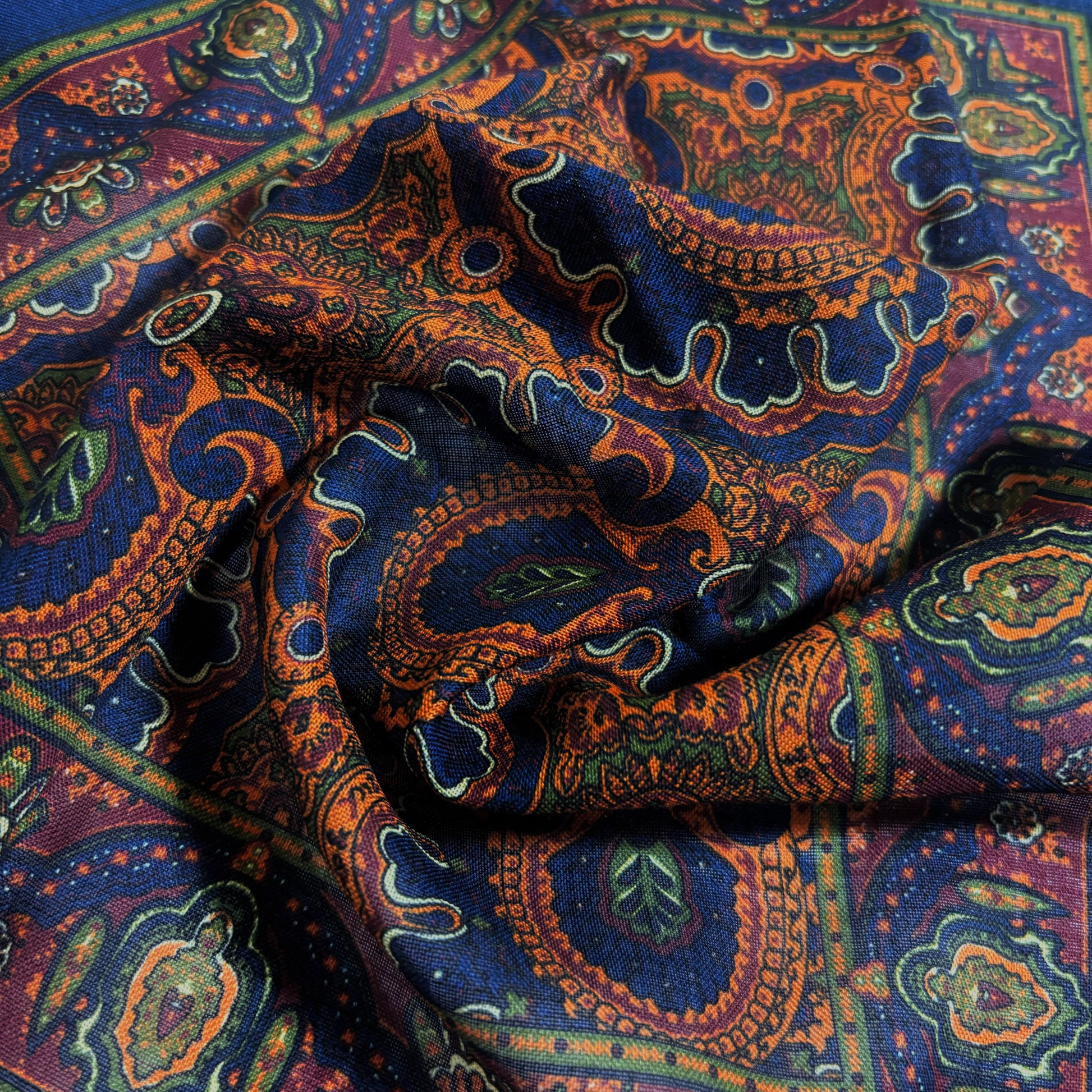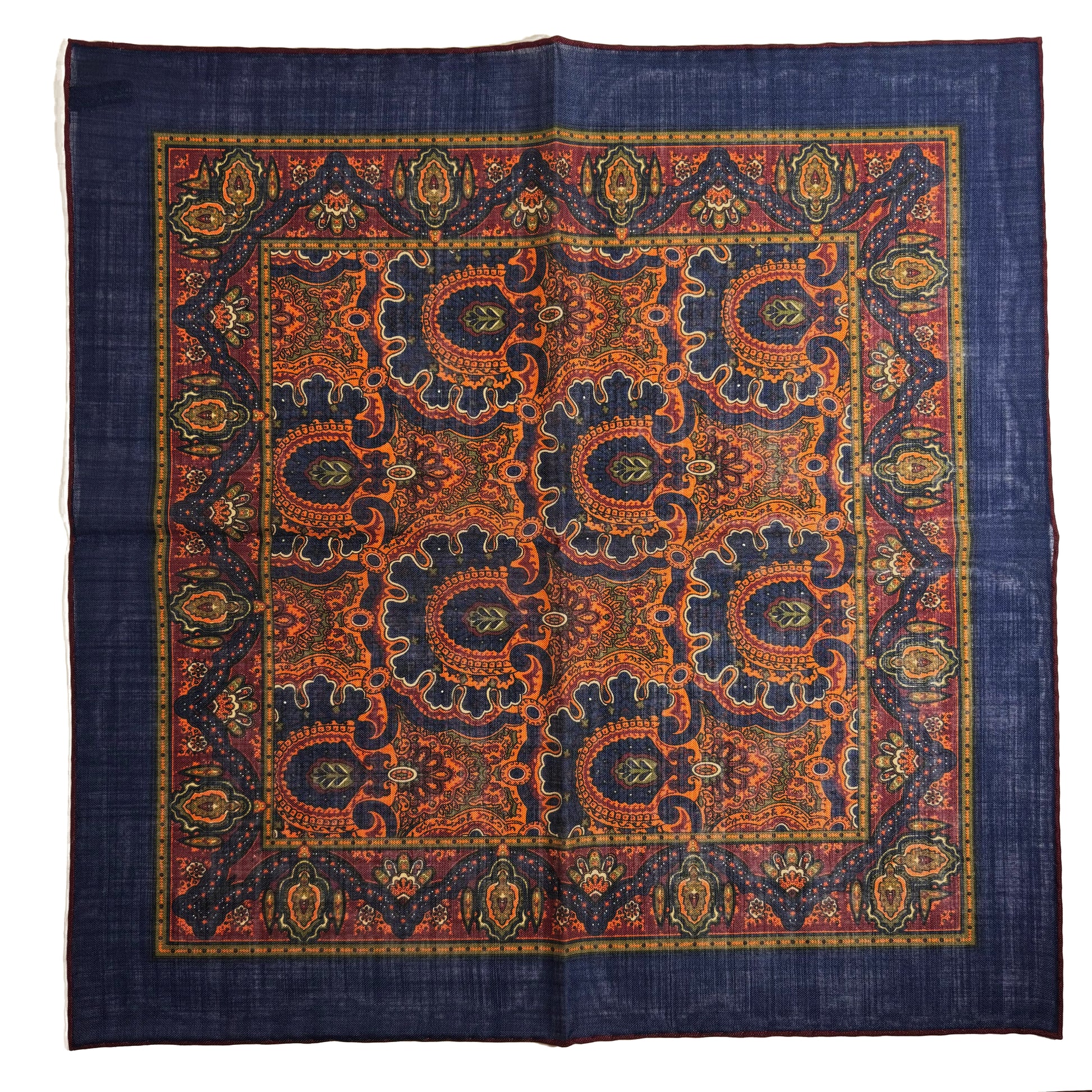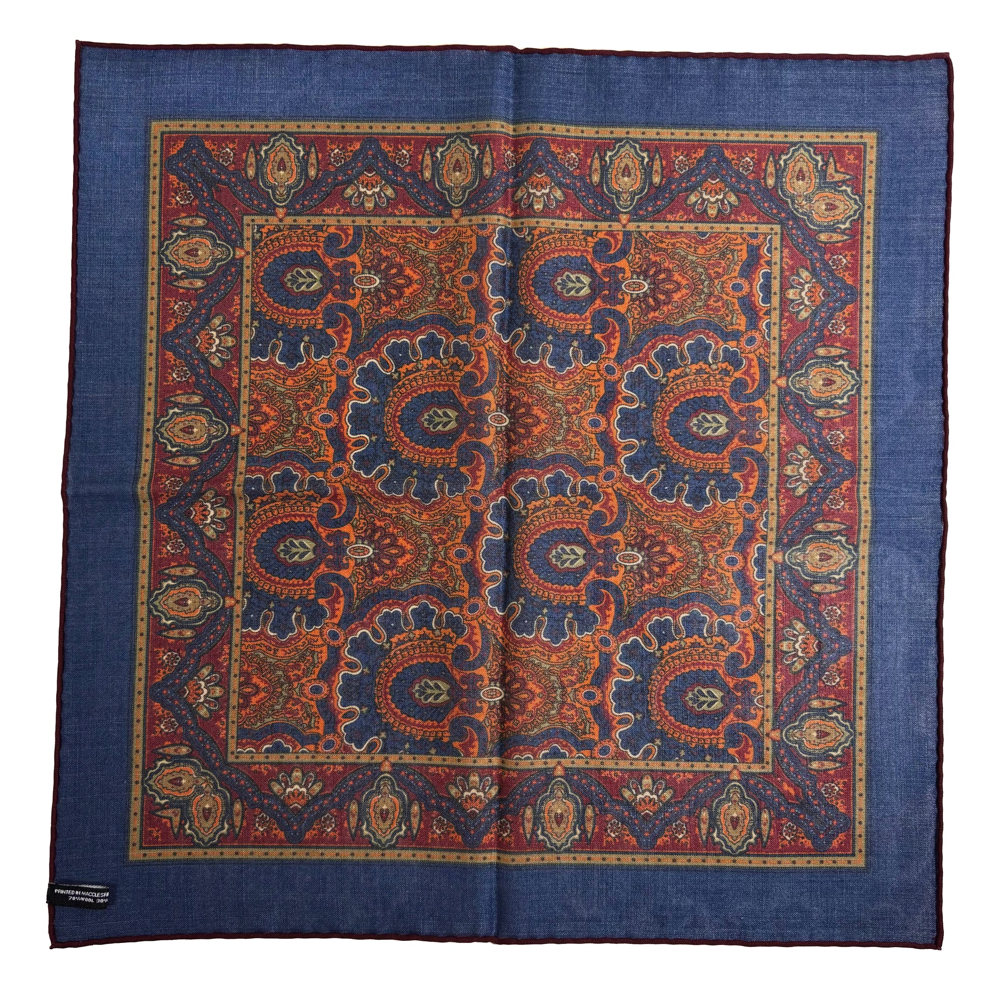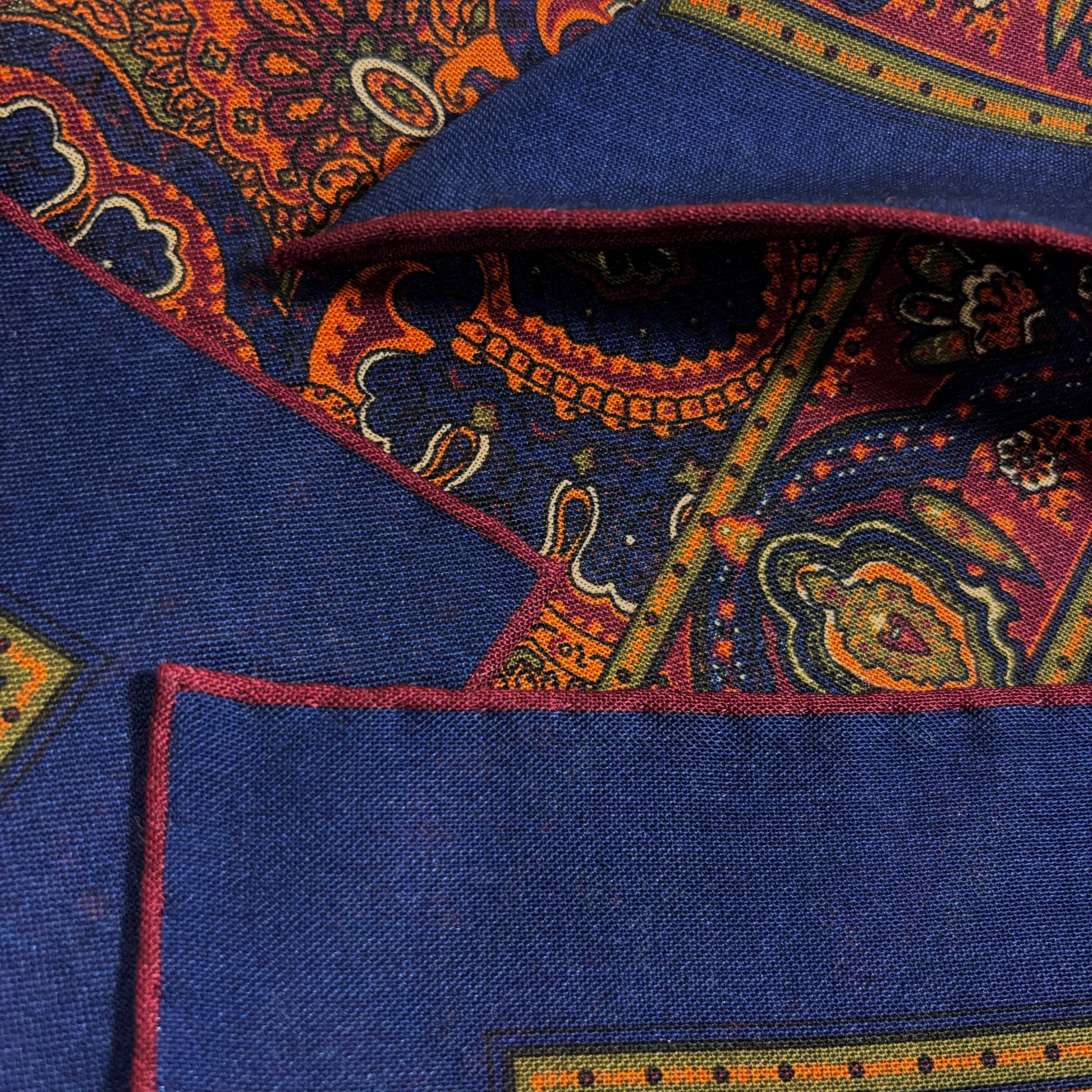 The designs were selected from a historic archive in Macclesfield, England with designs dating back hundreds of years. Each square was hand-sewn and printed in Macclesfield, ensuring a true British luxury product.