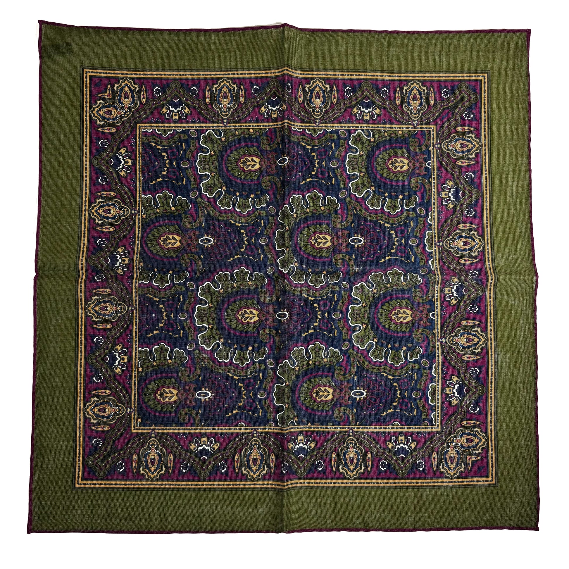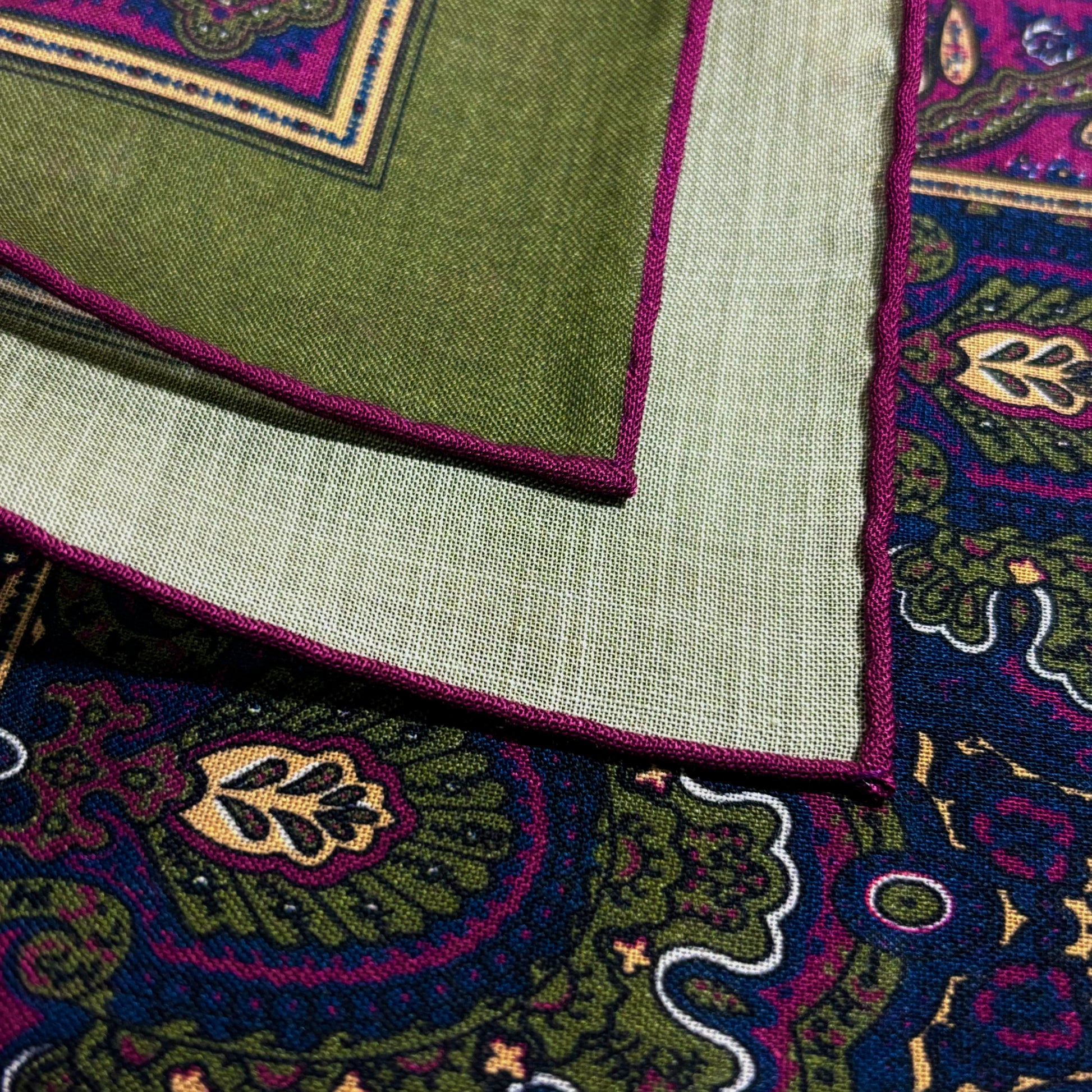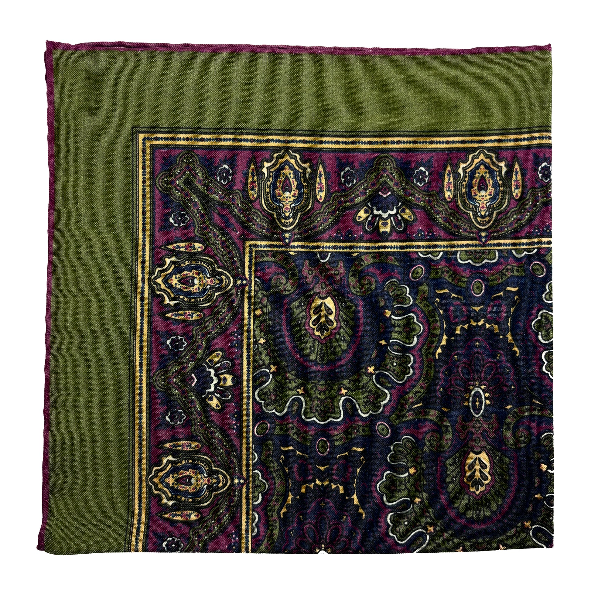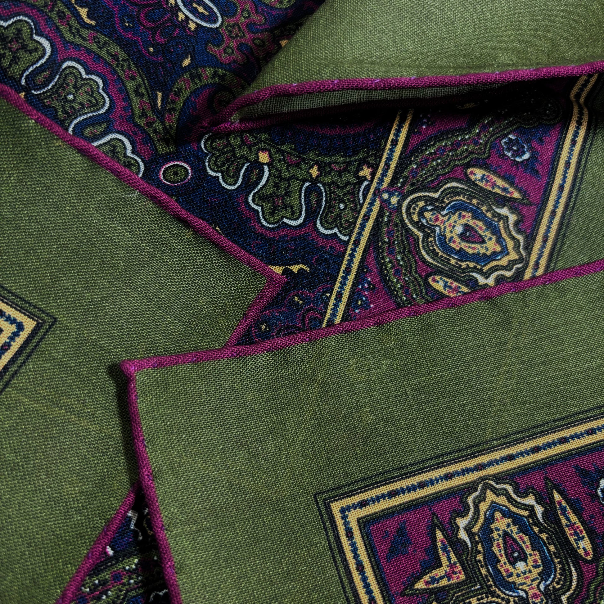 Dominus - Olive Green & Magenta - Wool/Silk Pocket Square