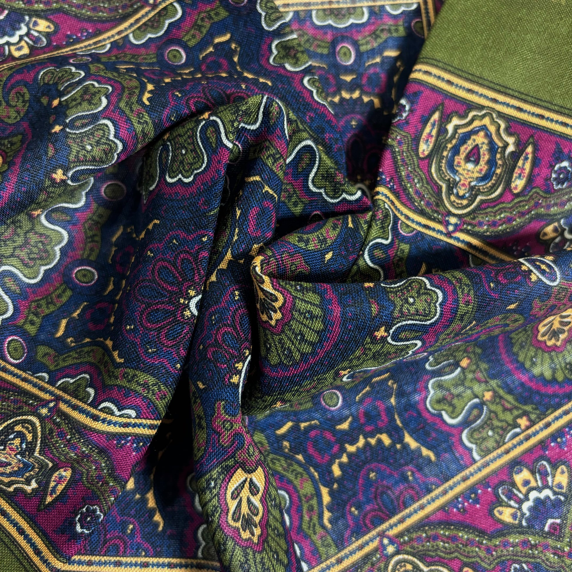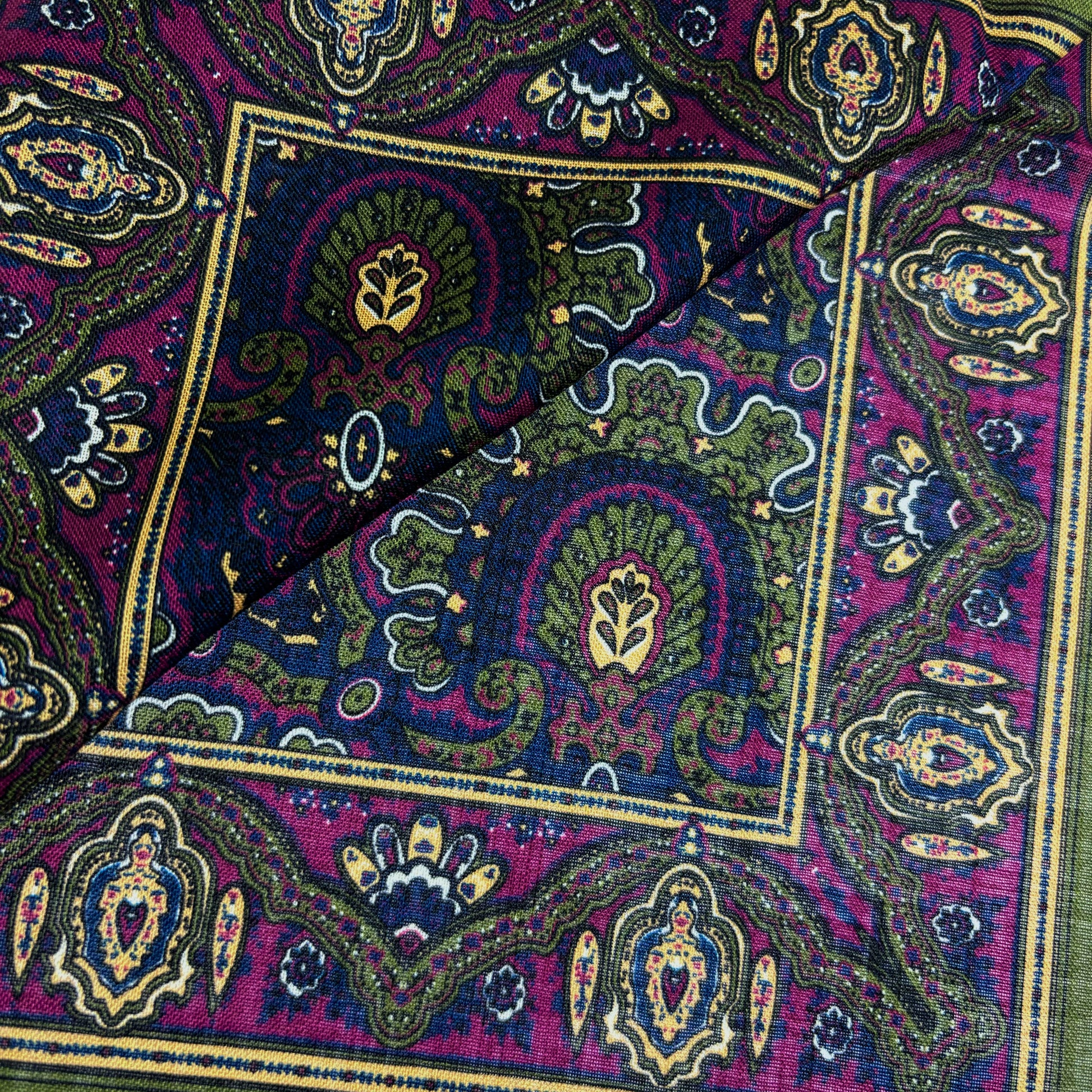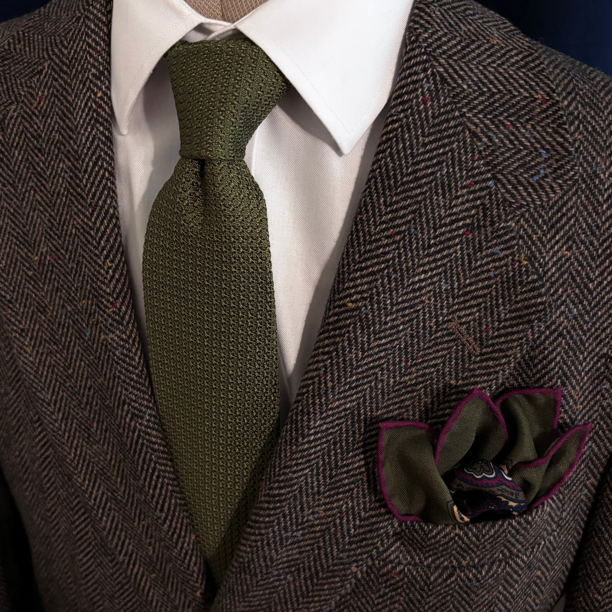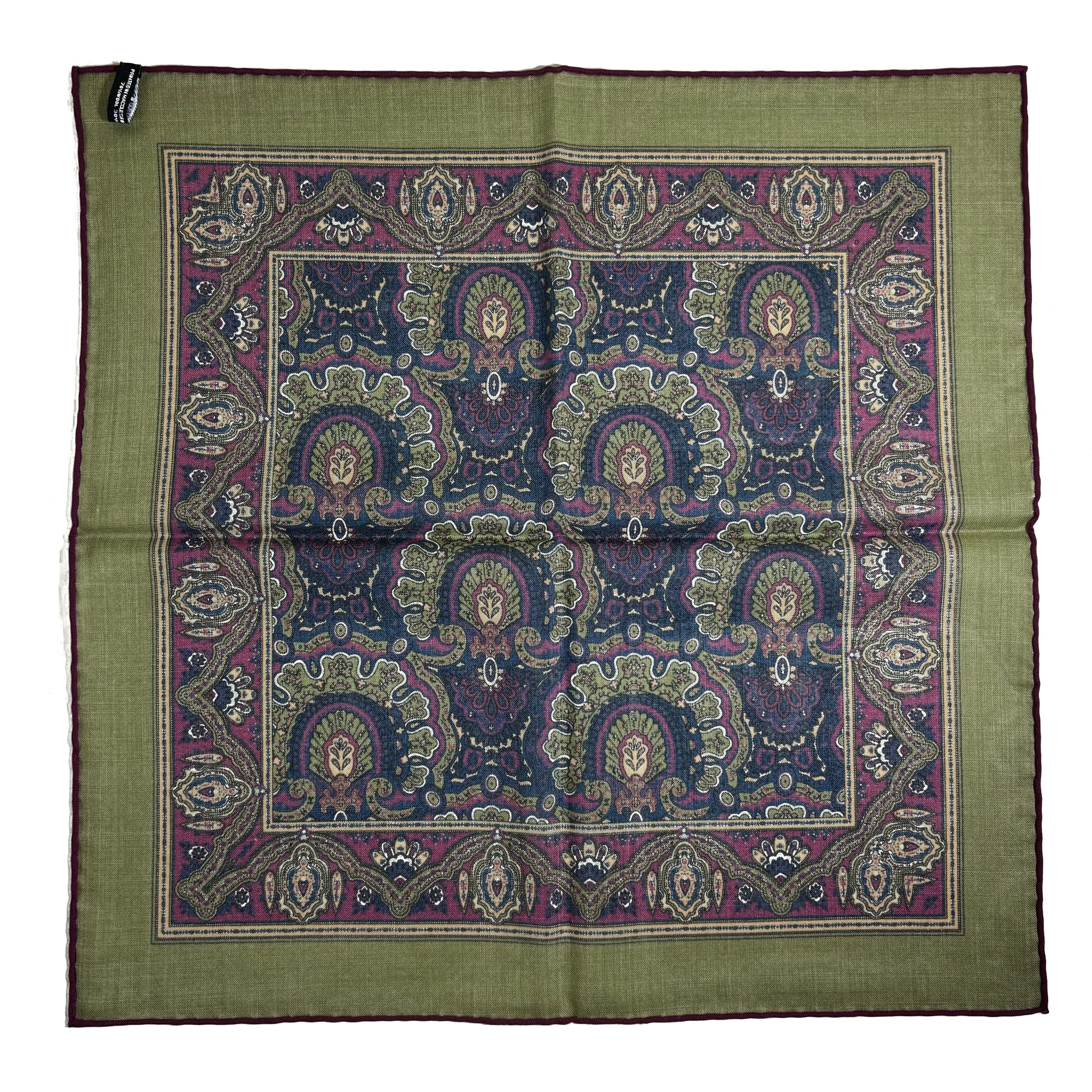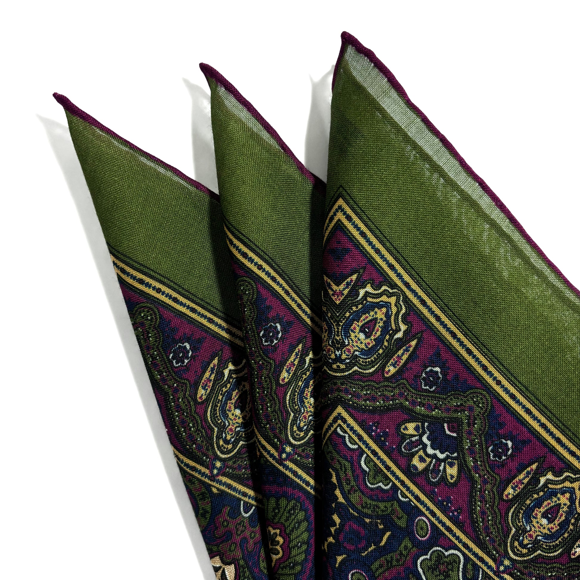Dominus - Olive Green & Magenta - Wool/Silk Pocket Square