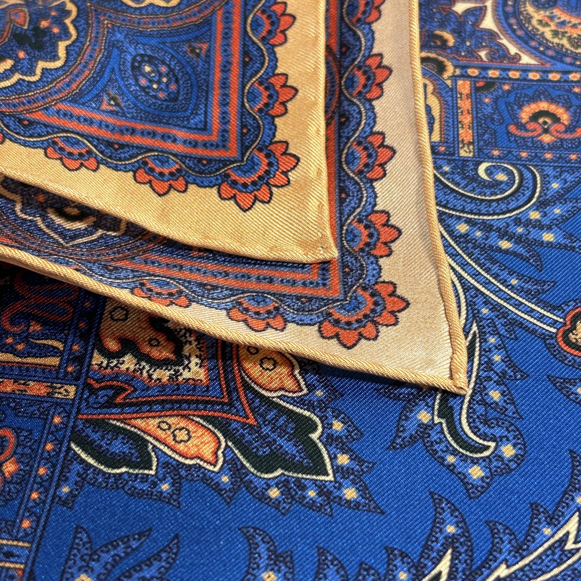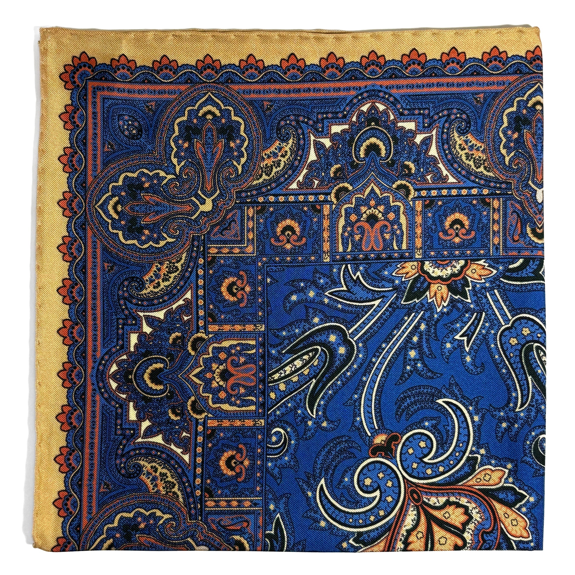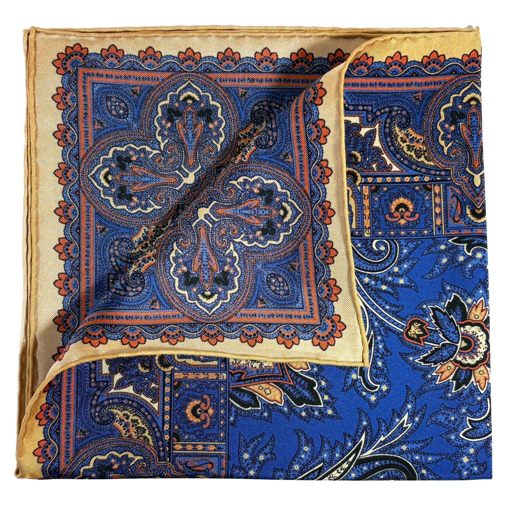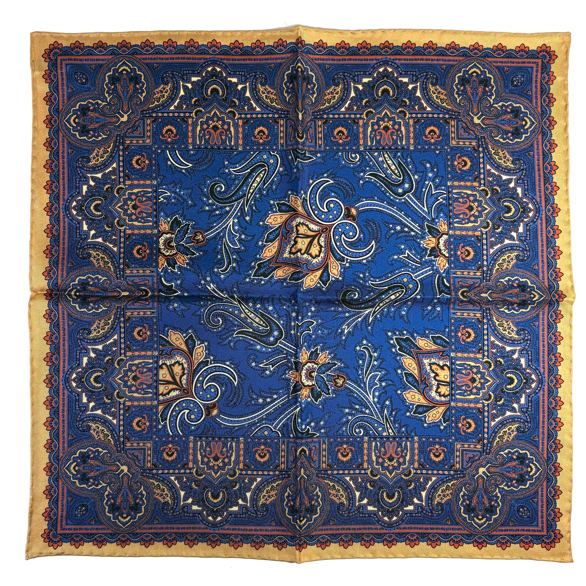 Egyptian Blue & Cream Floral Motif Ancient Madder Silk Pocket Square