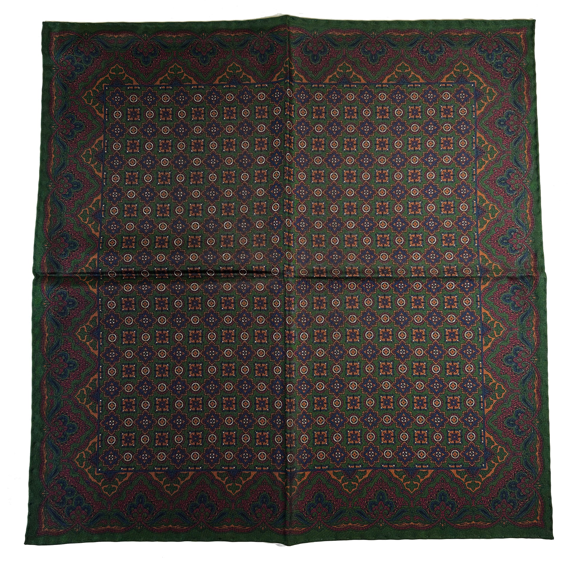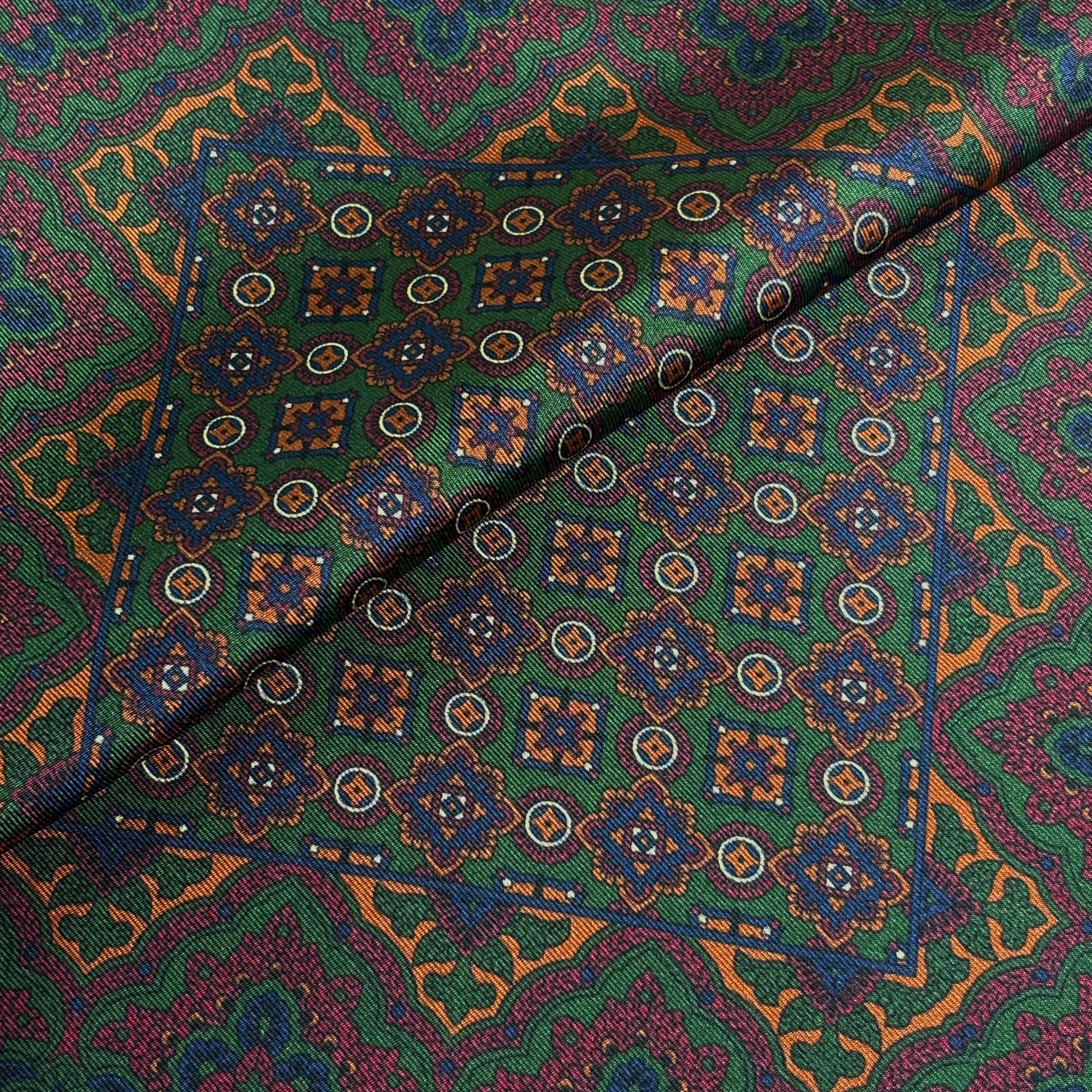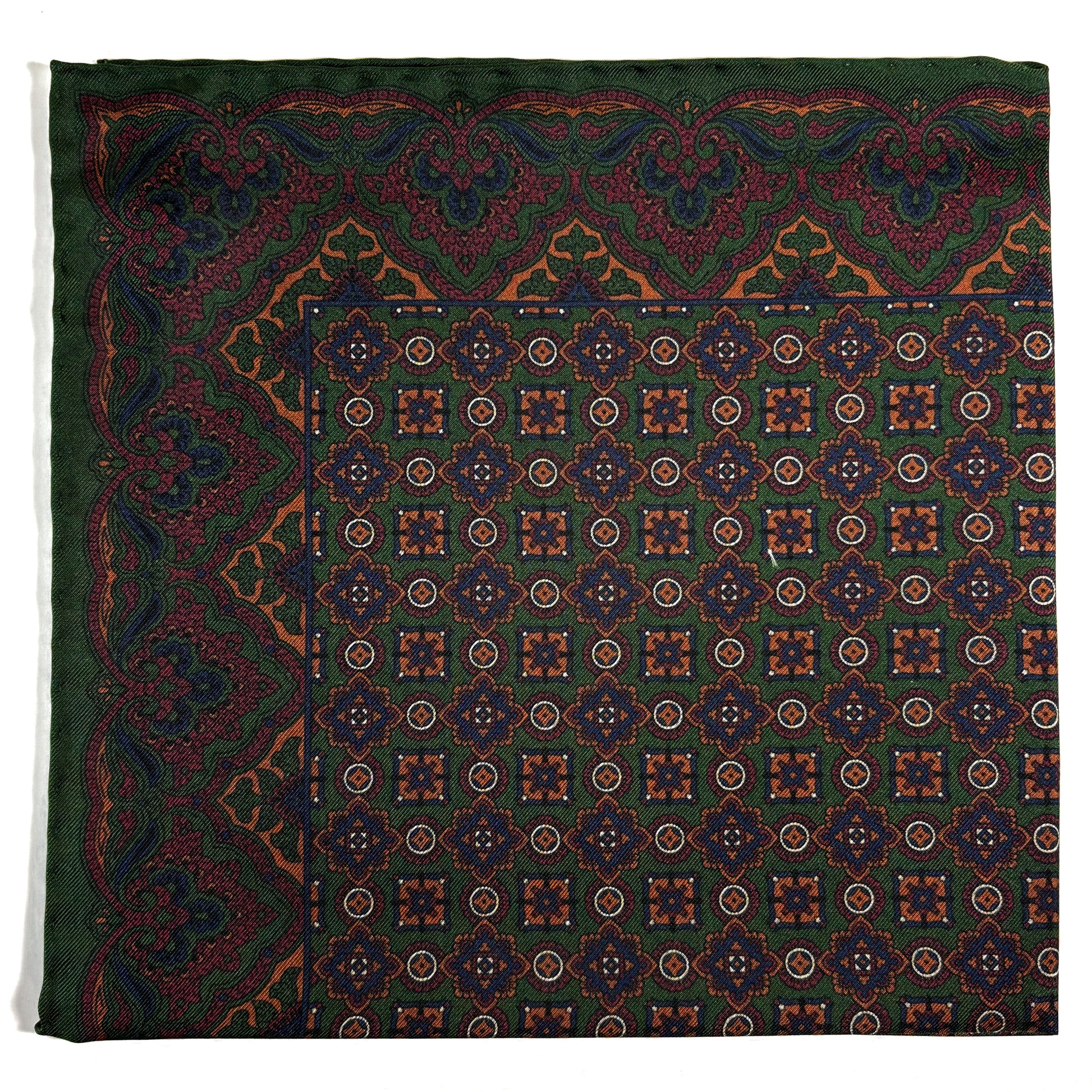 Forest Green & Bronze Geometric Ancient Madder Silk Pocket Square