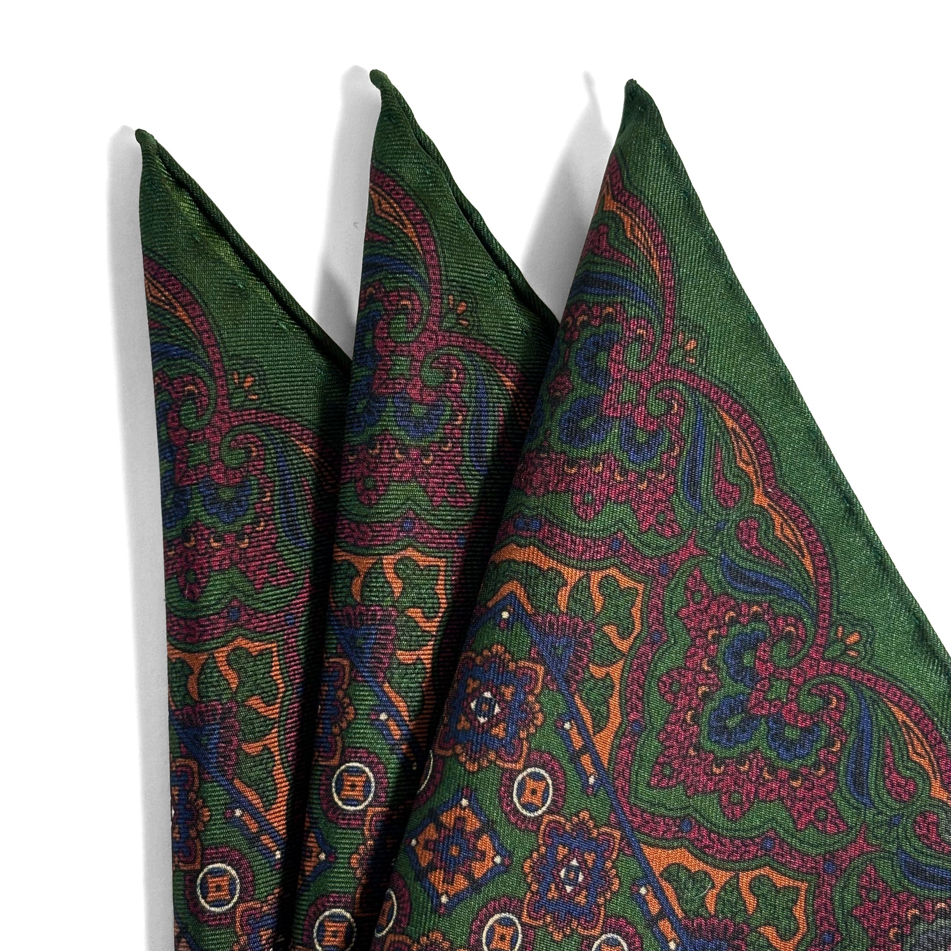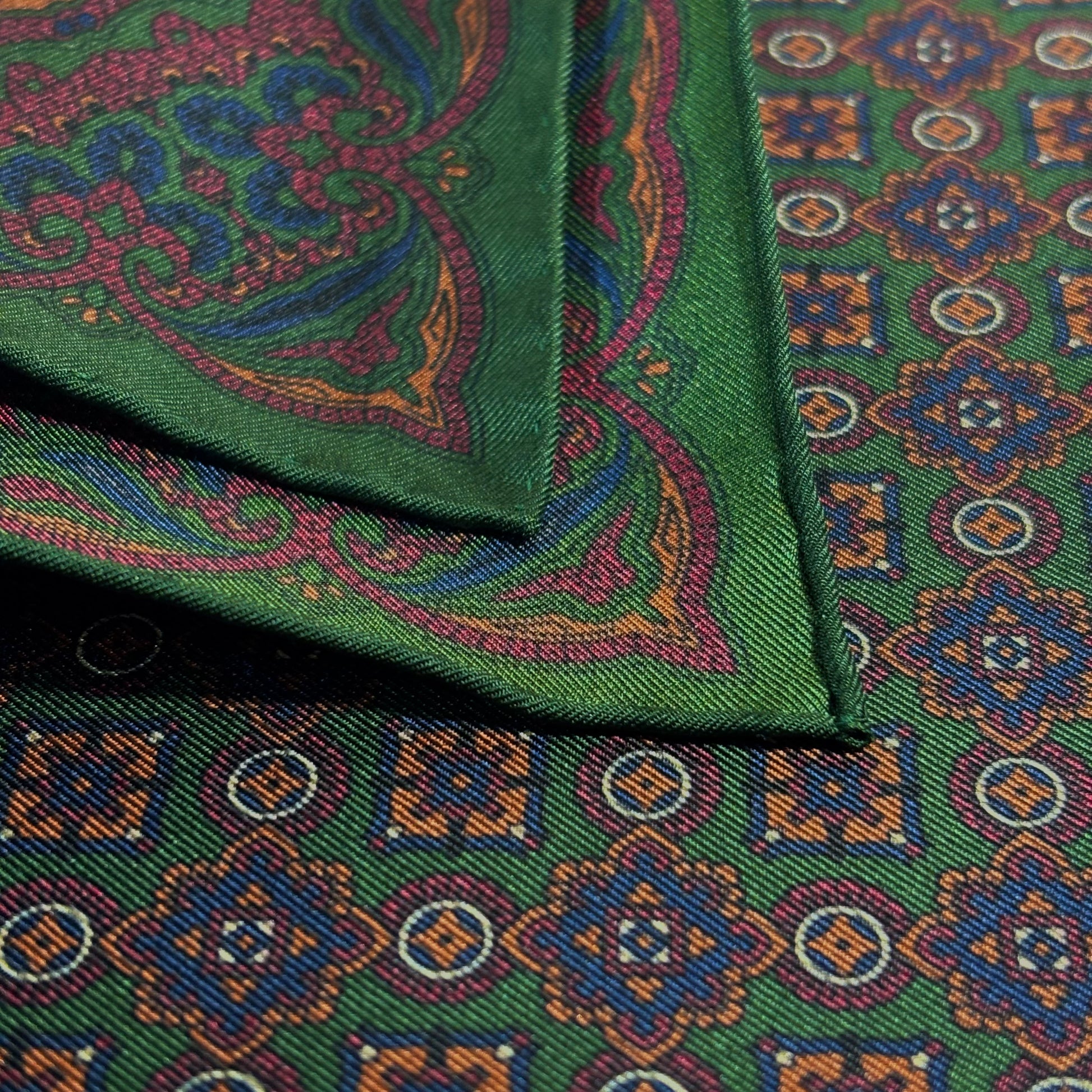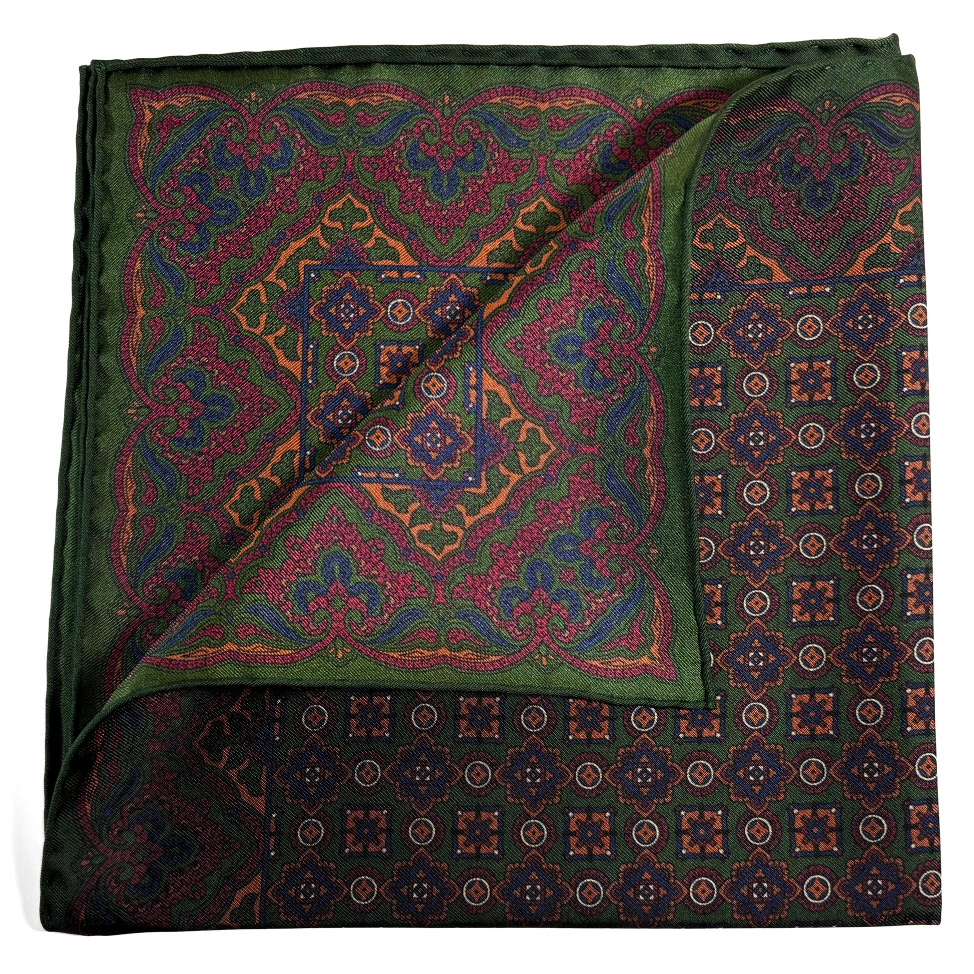 Forest Green & Bronze Geometric Ancient Madder Silk Pocket Square