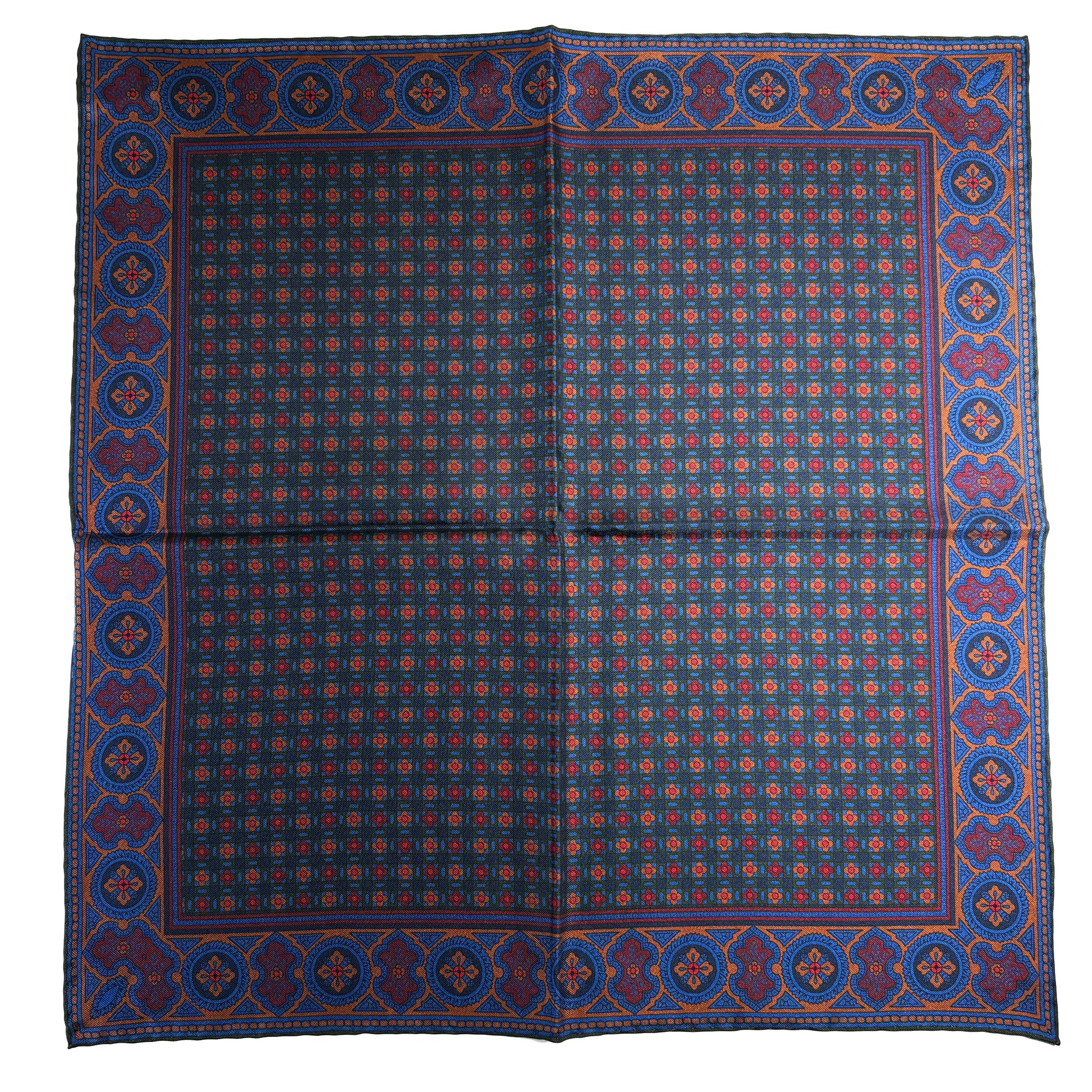 Forest Green & Bronze Small Geometric Ancient Madder Silk Pocket Square