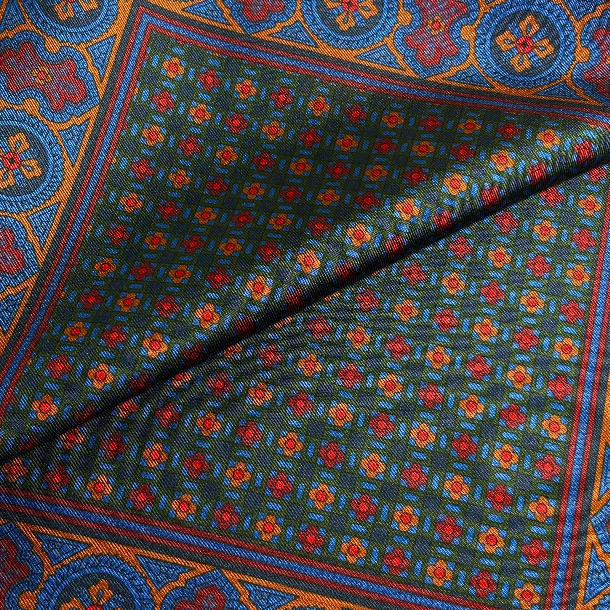 Silk twill remains the gold standard for pocket squares, prized for its lightweight feel, rich dye absorption, and elegant sheen. The fabric is printed using a modern, eco-conscious method that delivers vibrant, double-sided color while minimizing waste.