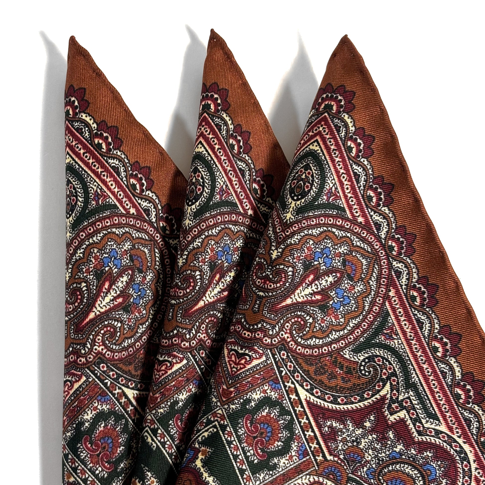 Crafted from madder-dyed 100% silk twill and handmade in England, this pocket square reflects the enduring legacy of British textile excellence. Produced in the historic town of Macclesfield—renowned for centuries of silk craftsmanship—each piece is hand-sewn with hand-rolled edges, offering refined structure and depth in every fold.
